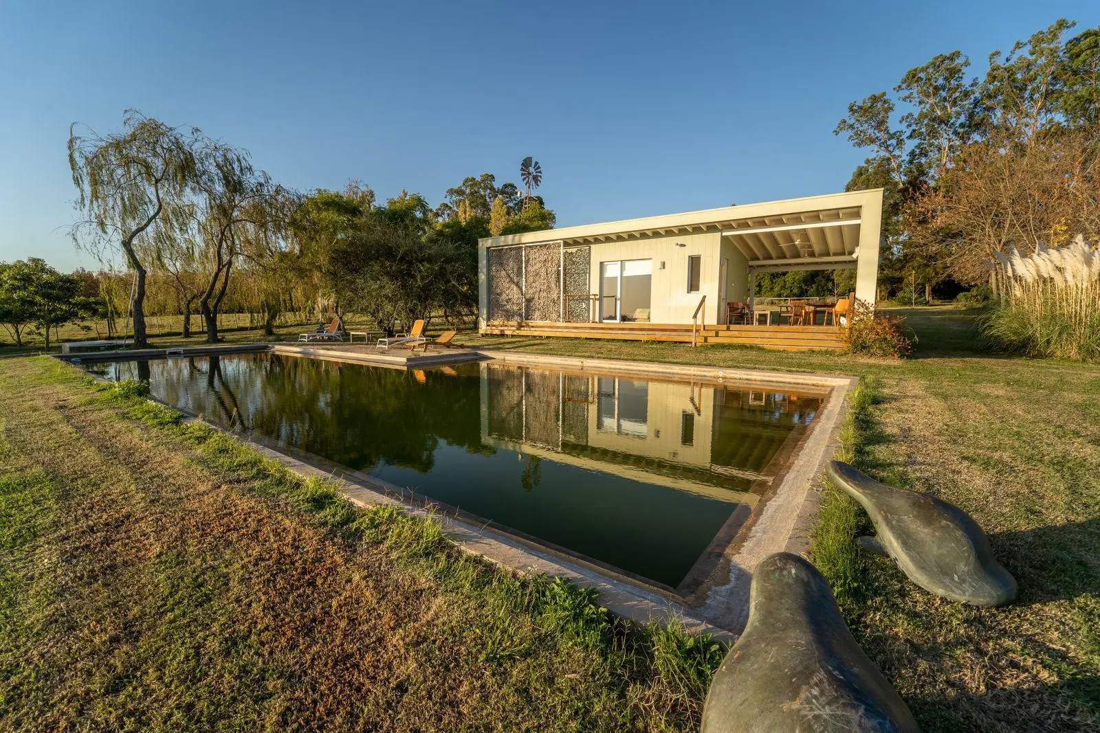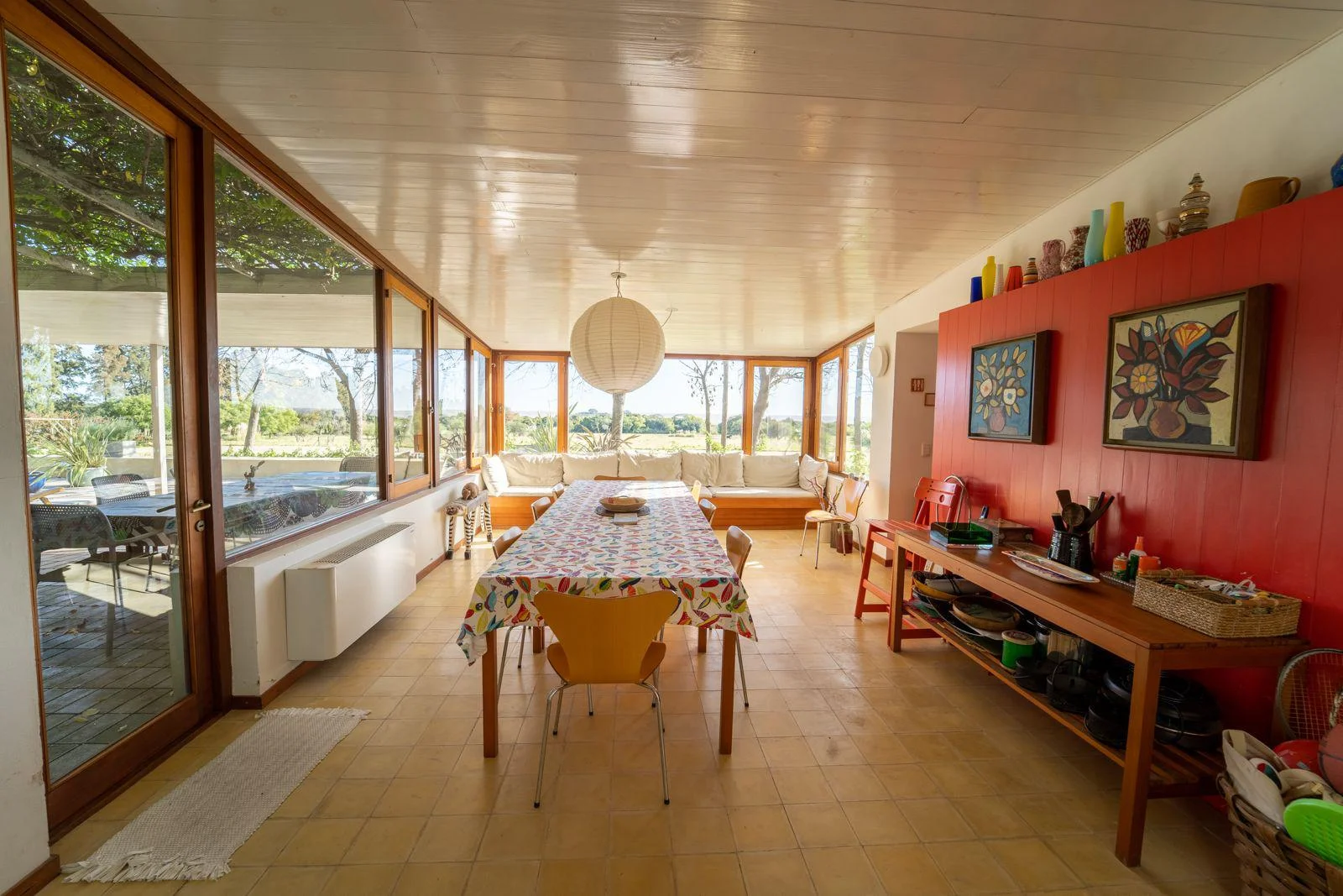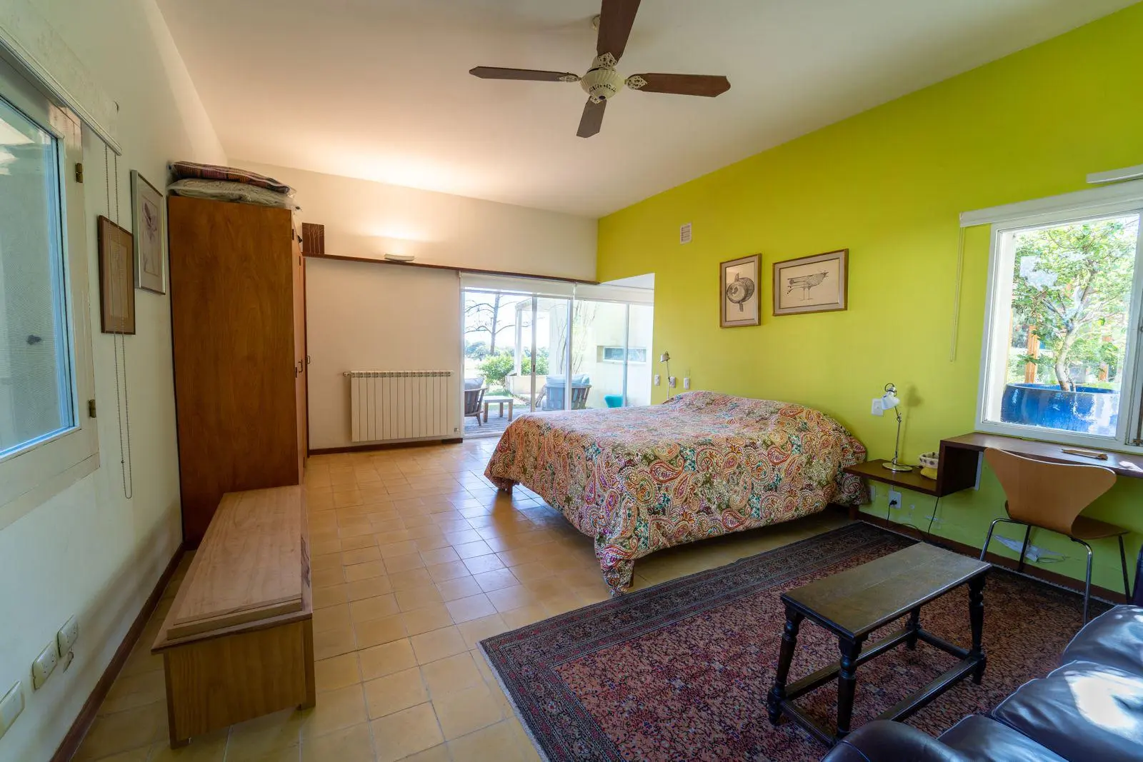 Casa principal: Tres dormitorios, uno en suite, tres baños, amplio living, cocina comedor integrado y una piscina al aire libre con vistas panorámicas al Río de la Plata.