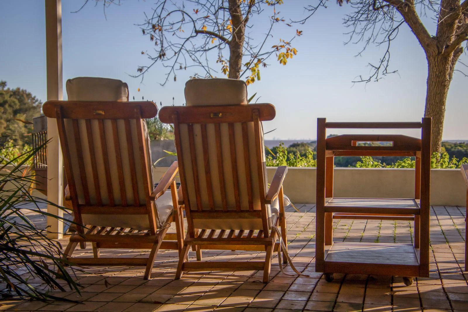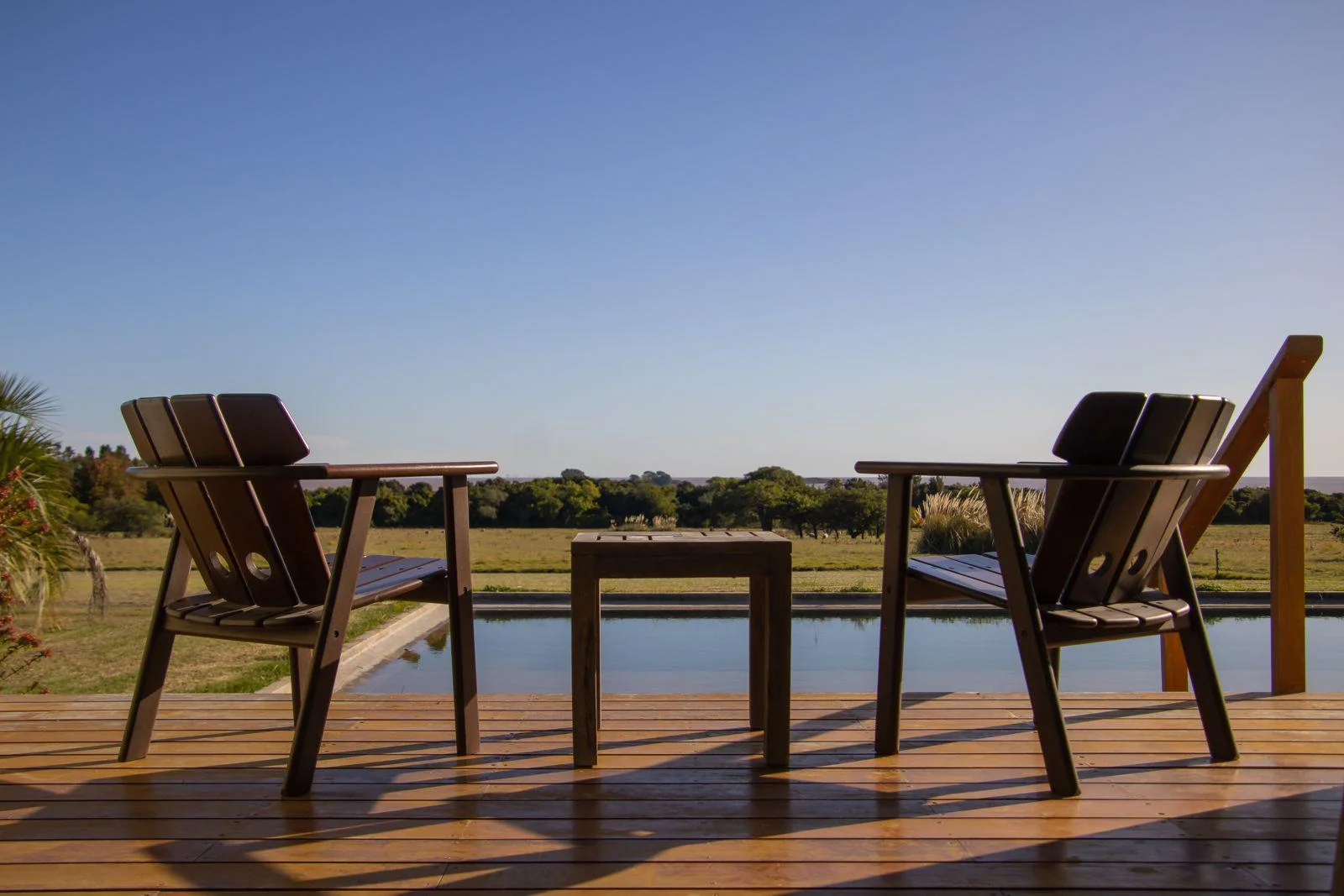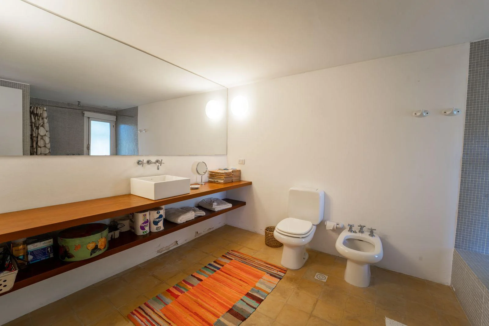 Casa principal: Tres dormitorios, uno en suite, tres baños, amplio living, cocina comedor integrado y una piscina al aire libre con vistas panorámicas al Río de la Plata.