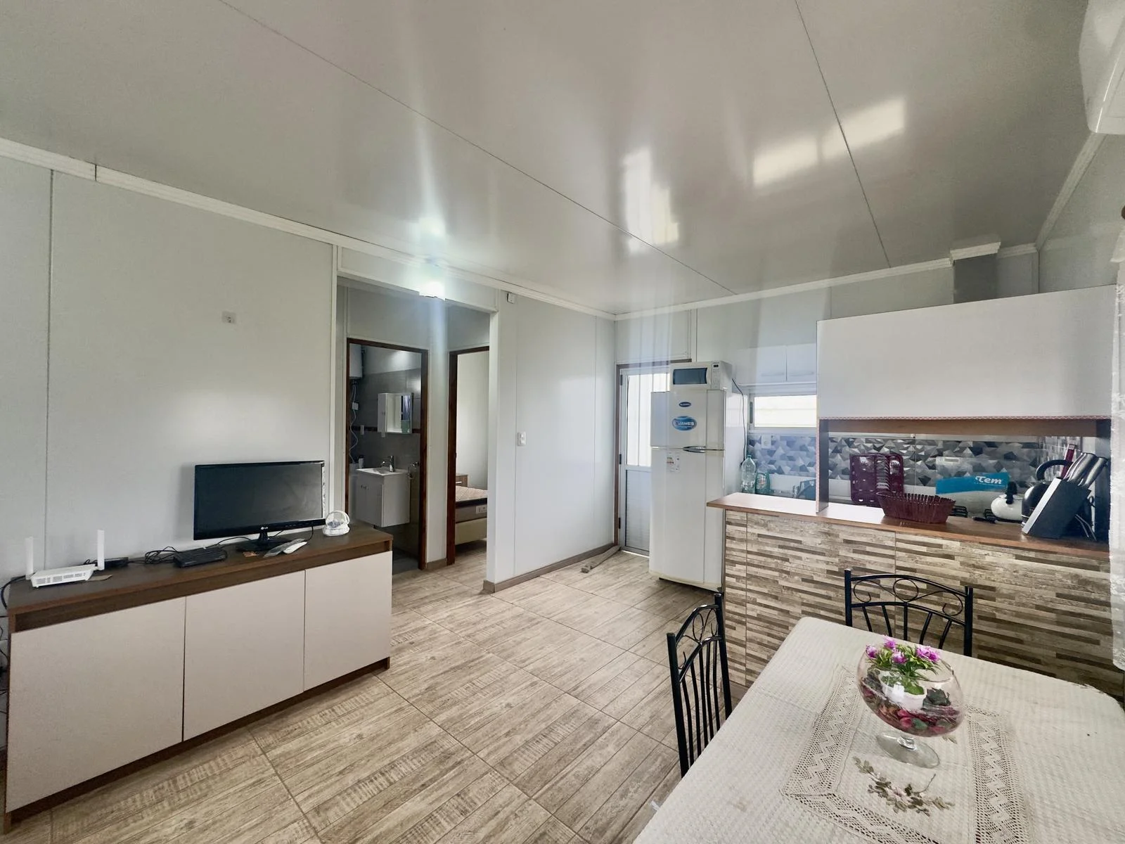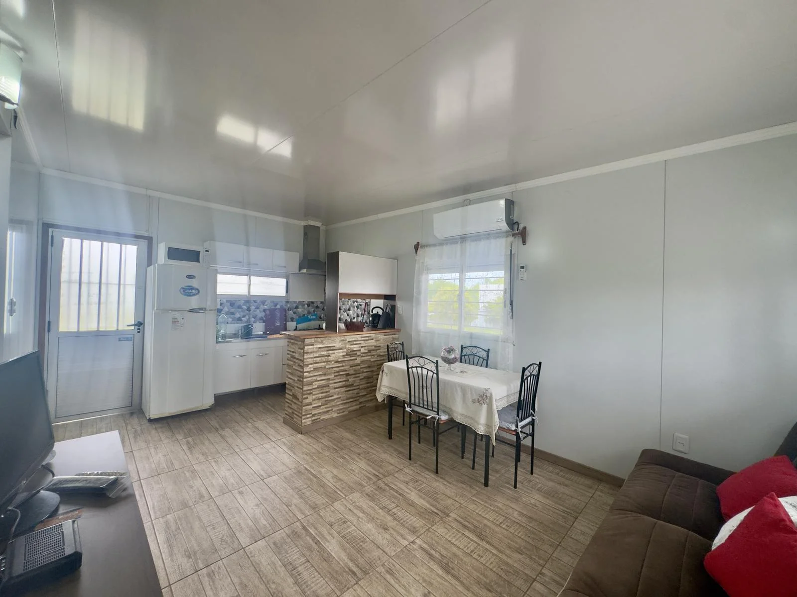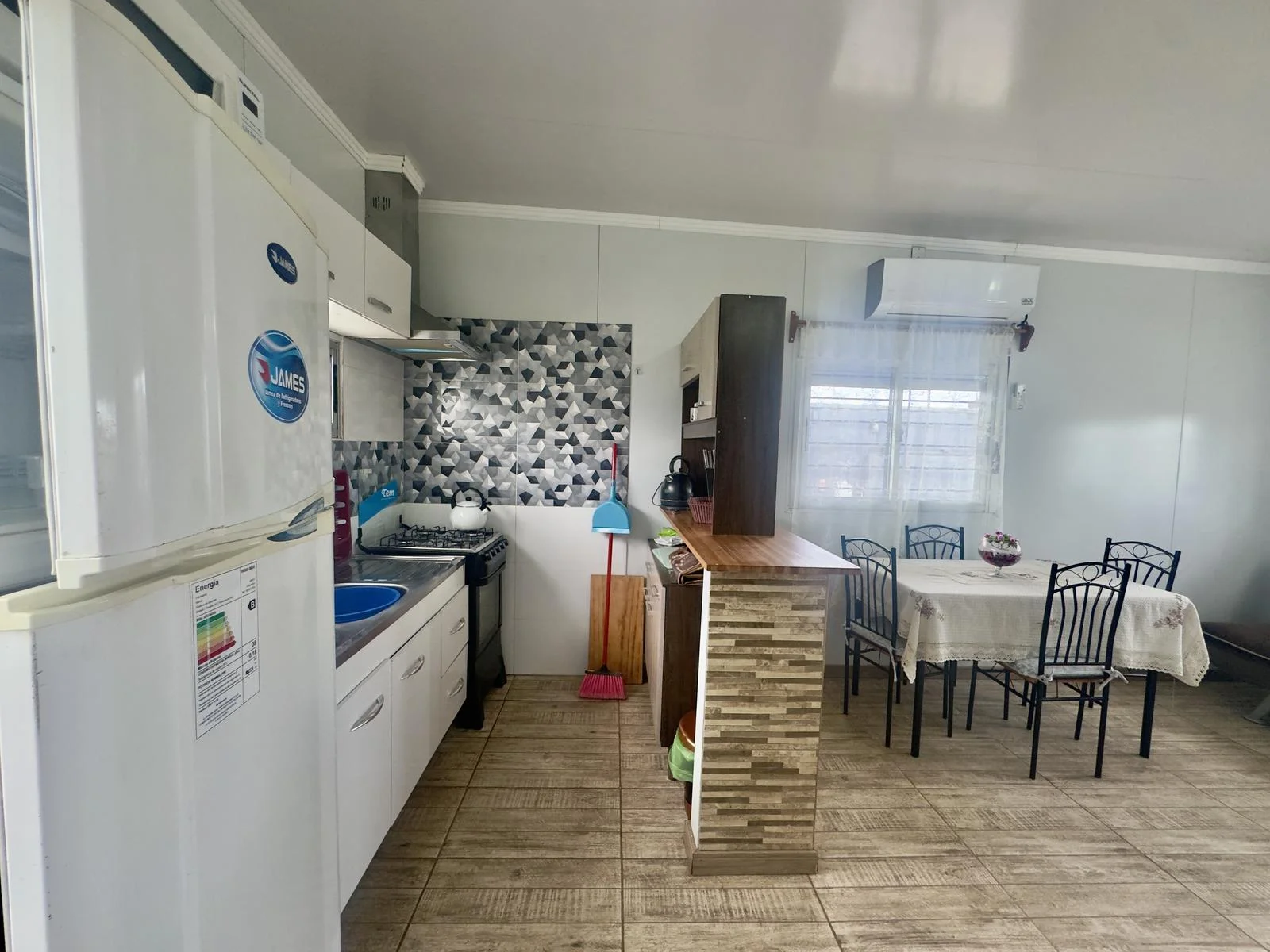 - Cocina integrada con mobiliario bajo mesada o aéreo, barra divisoria