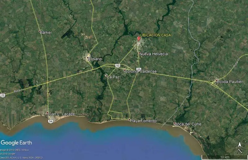 A 60 Km de Colonia del Sacramento y 120 Km de Montevideo.