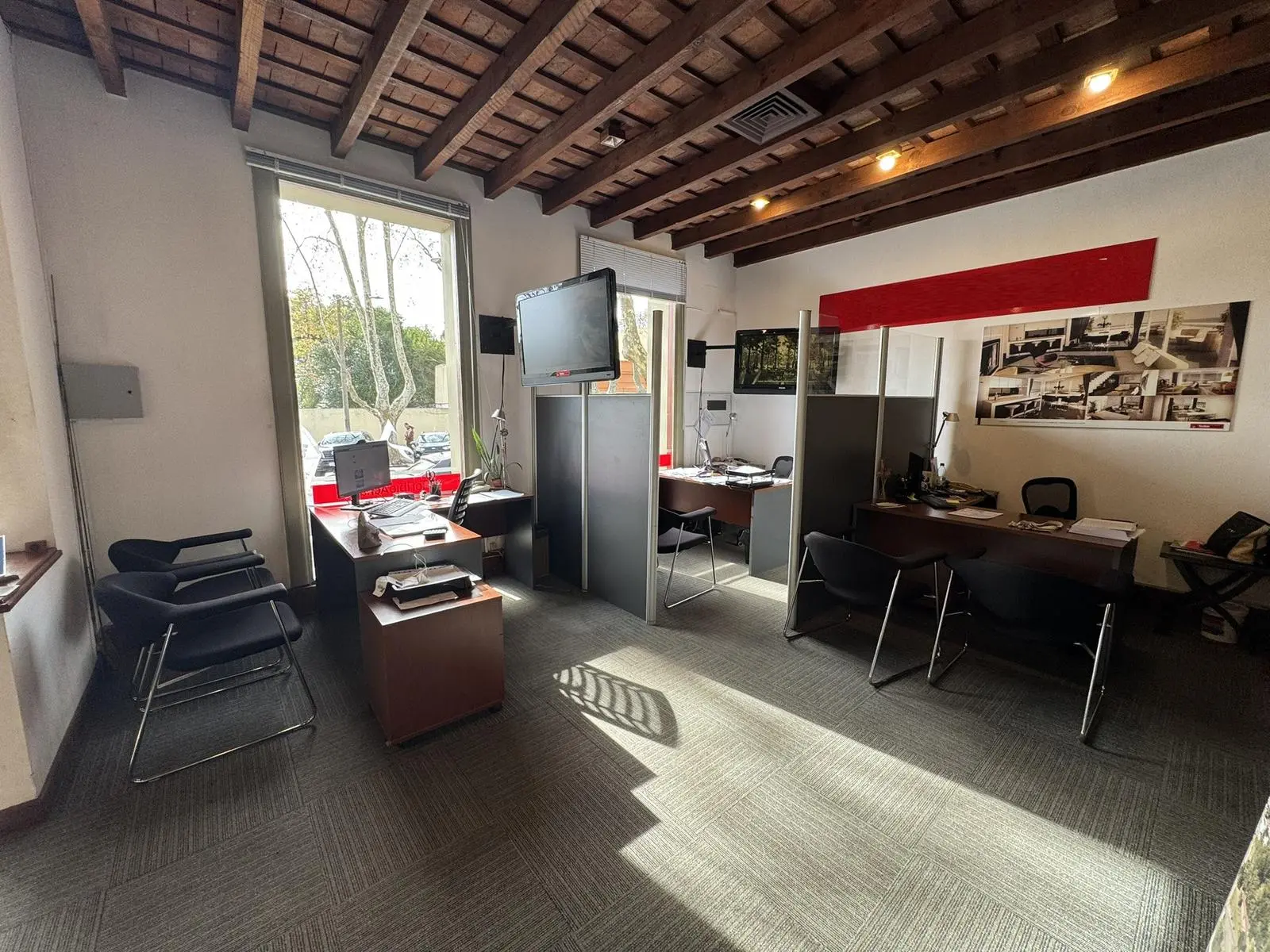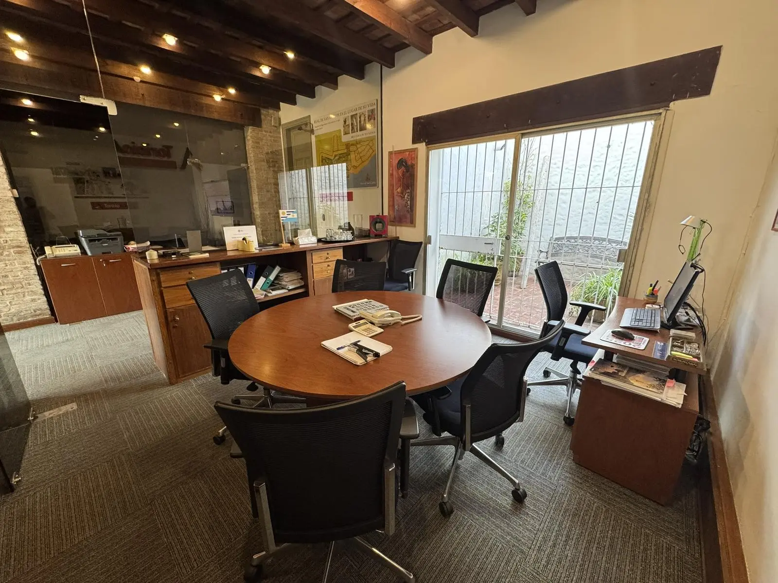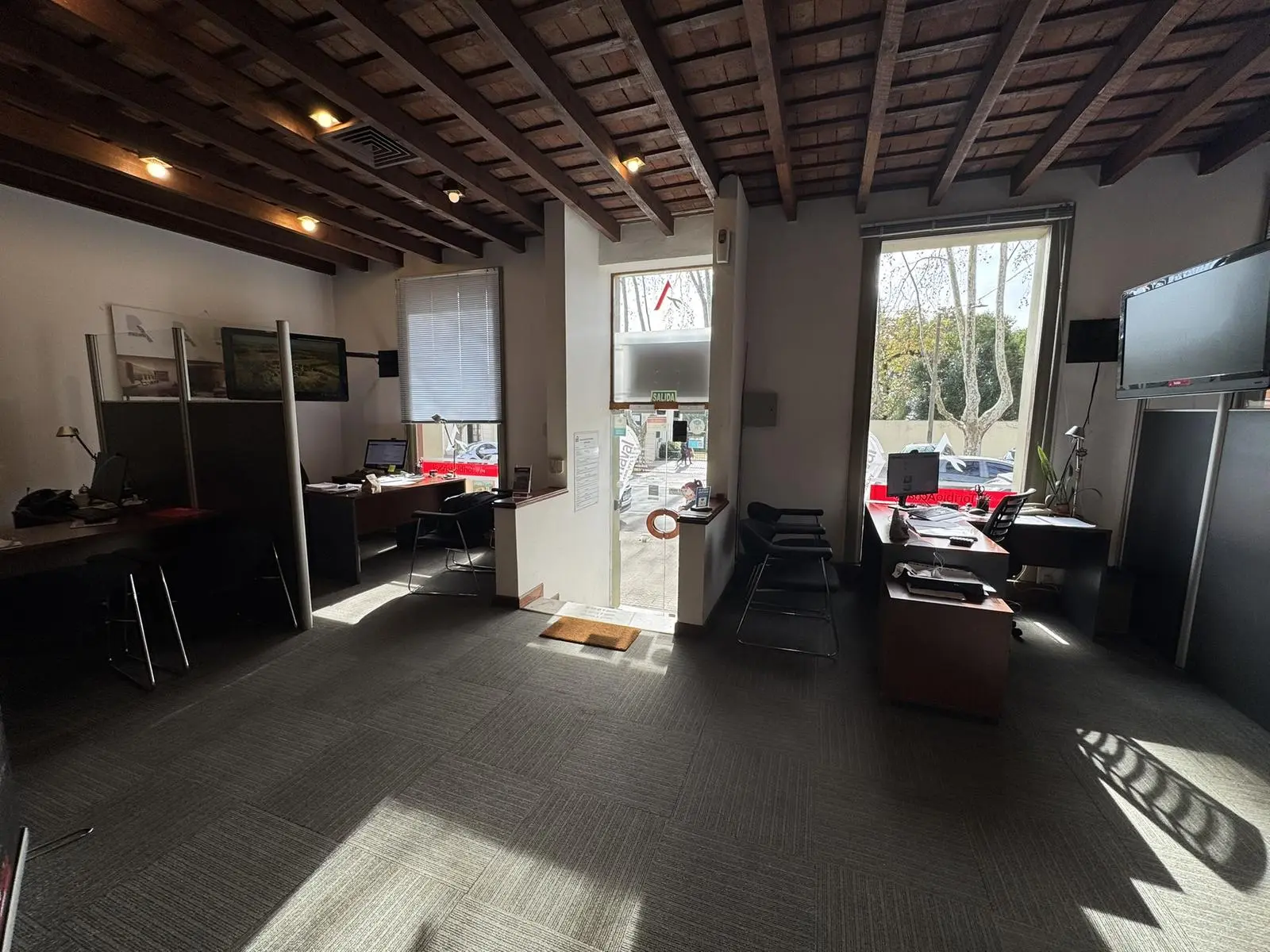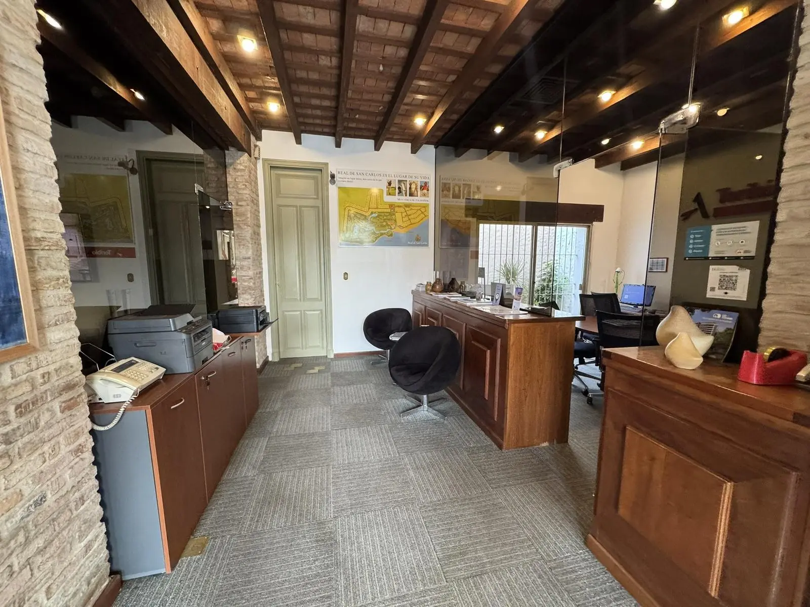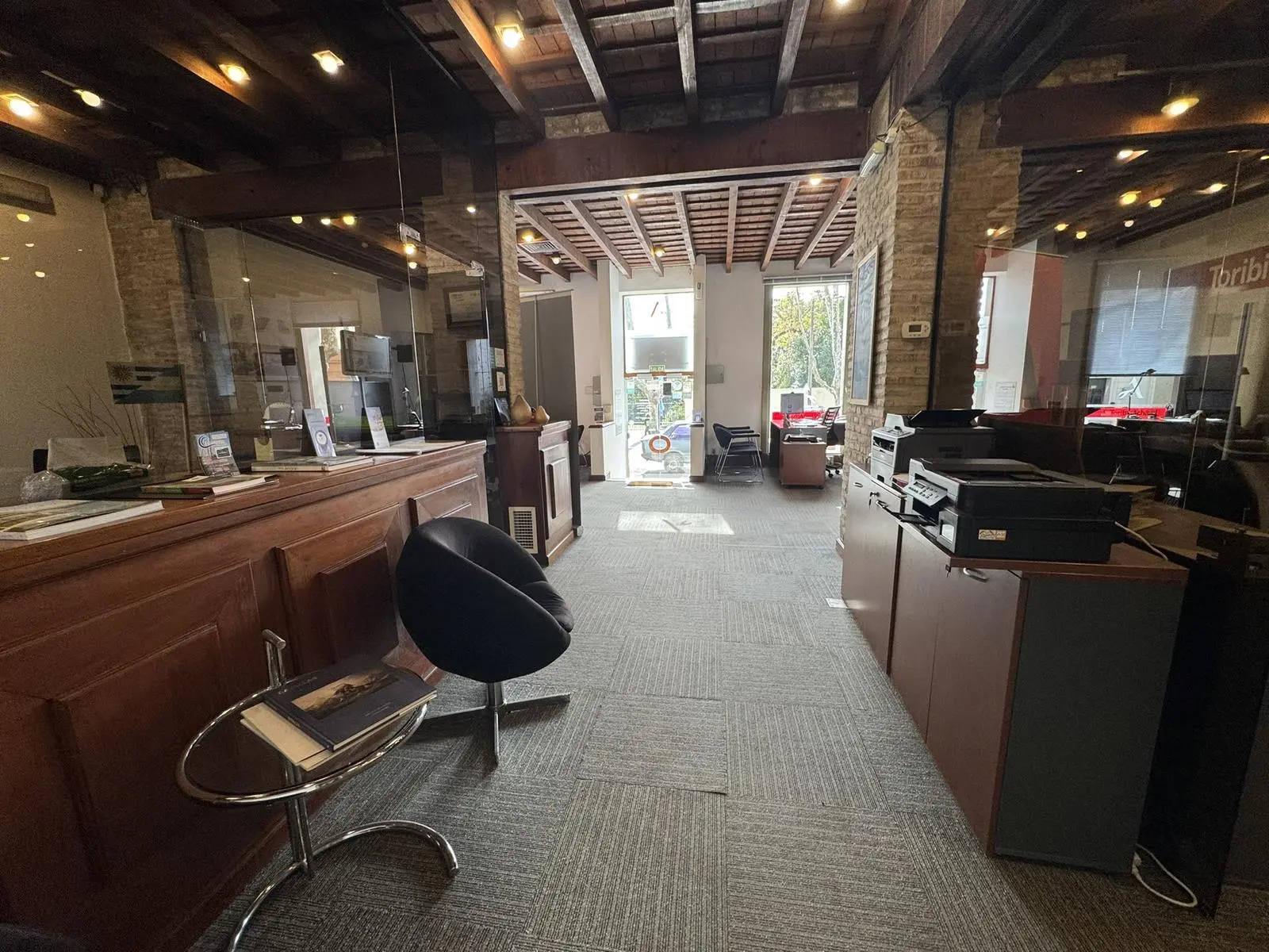 El inmueble, que albergó históricamente distintas entidades bancarias, se encuentra en excelentes condiciones y presenta una distribución funcional: amplio salón principal, cuatro espacios independientes ideales para oficinas o salas de reuniones (dos de ellos vidriados), caseta de seguridad, dos baños, cocina, patios internos y áreas de depósito.