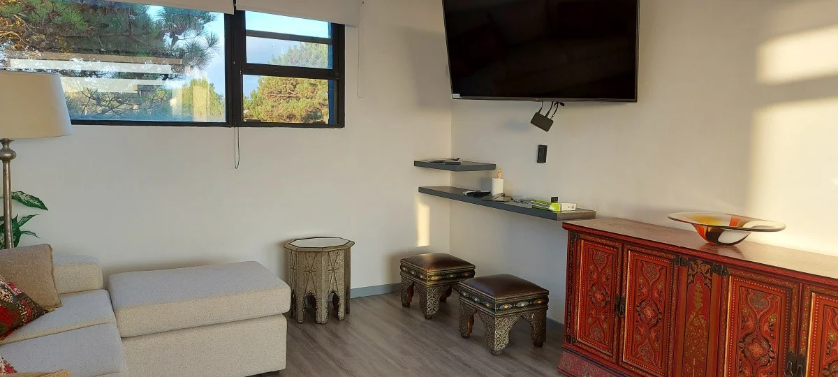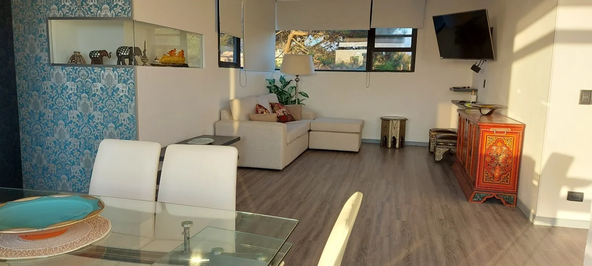 La distribución de los ambientes es perfecta: un amplio living-comedor se integra con la cocina, creando un espacio ideal para compartir. Además, disfrutarás de comodidades modernas como microondas, TV satelital, lavarropas y heladera con freezer, que harán tu estancia aún más placentera.