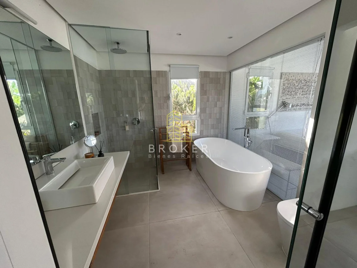 La casa cuenta con 4 dormitorios, de los cuales 2 son suites, brindando privacidad y comodidad para hasta 8 personas. Su diseño inteligente incluye una amplia cocina, un acogedor living y un luminoso living comedor, perfectos para compartir momentos inolvidables. Cuenta con aire acondicionado en todos los ambientes, piscina climatizada y muy bien equipada