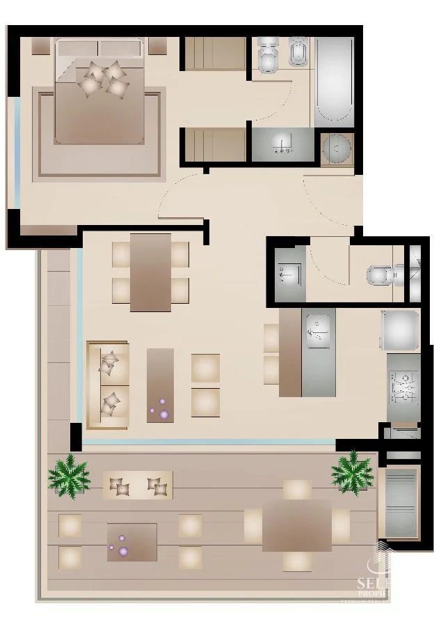El apartamento cuenta con 1 dormitorio en suite.