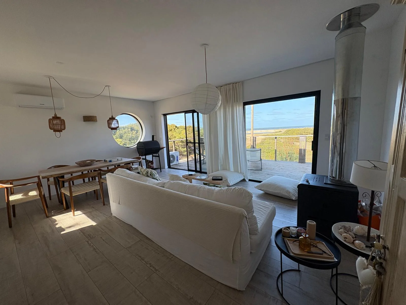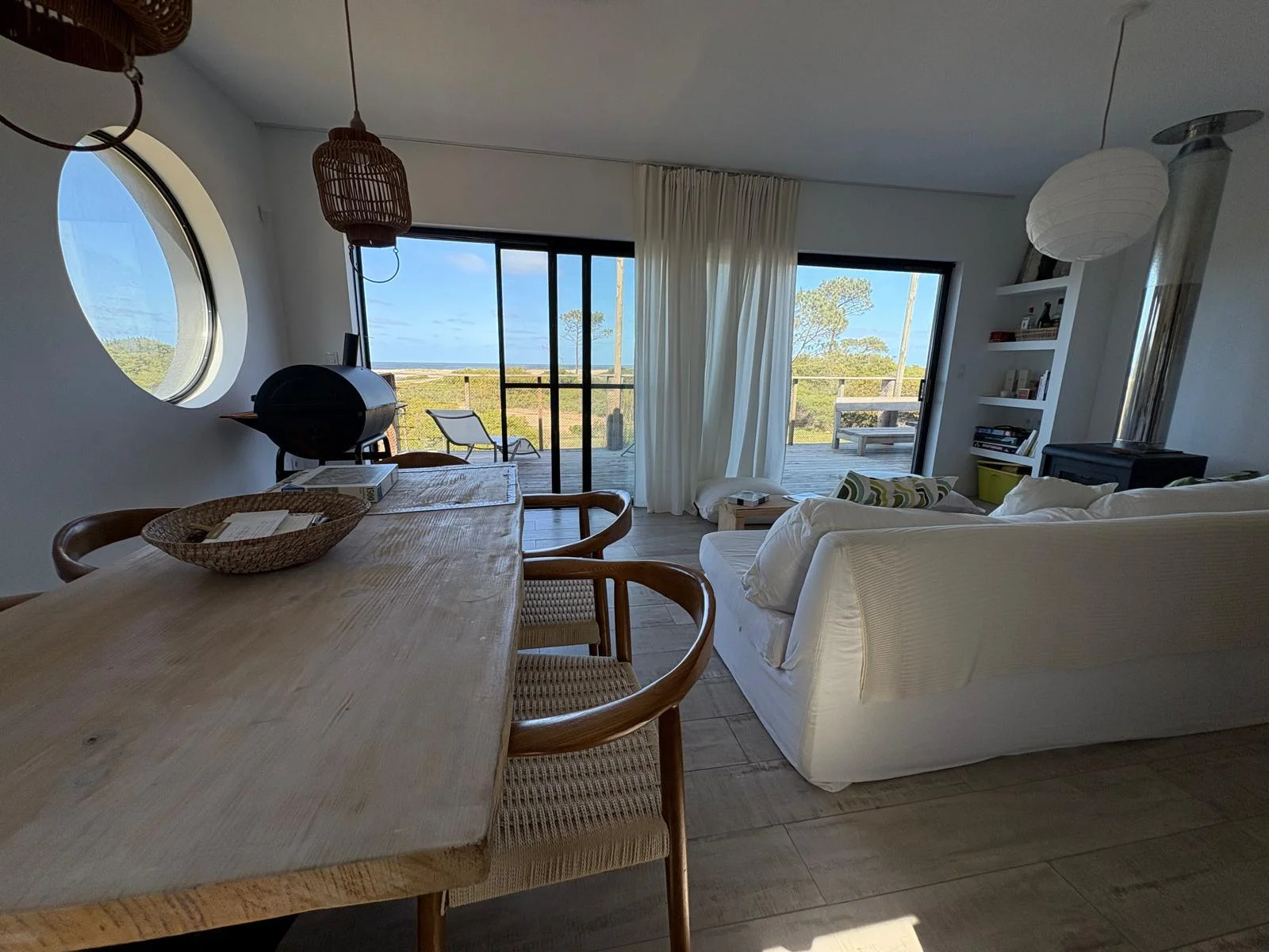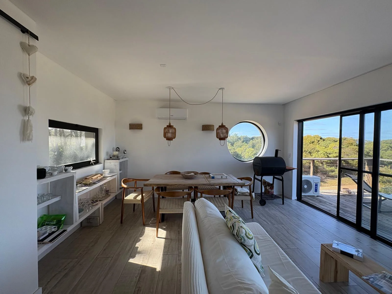 Hermosa casa en Chihuahua con vista al mar, cuenta con un estar intimo en planta baja, lavadero y dos dormitorios en suite (uno con cama Queen y el otro con dos camas individuales).
