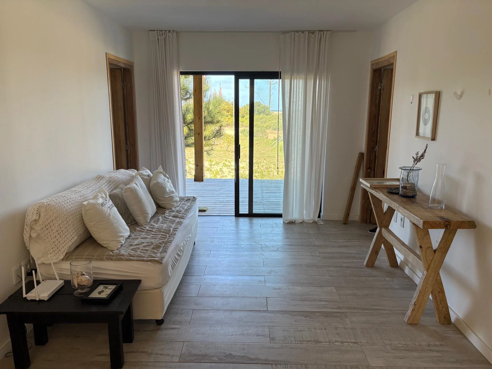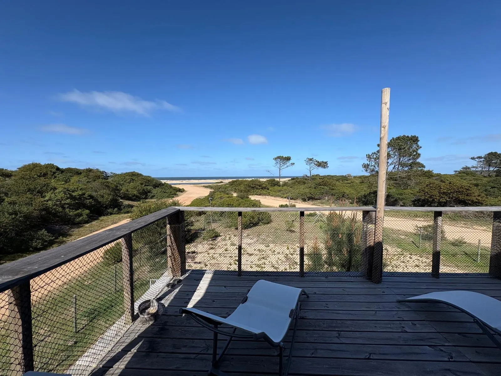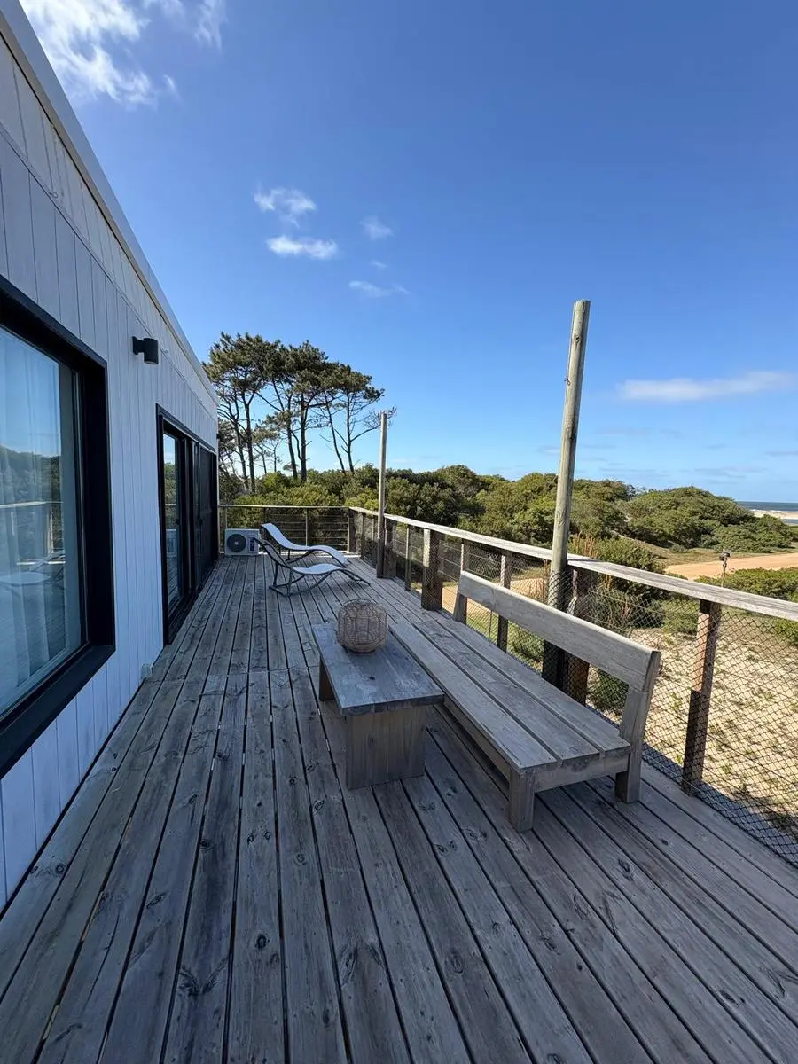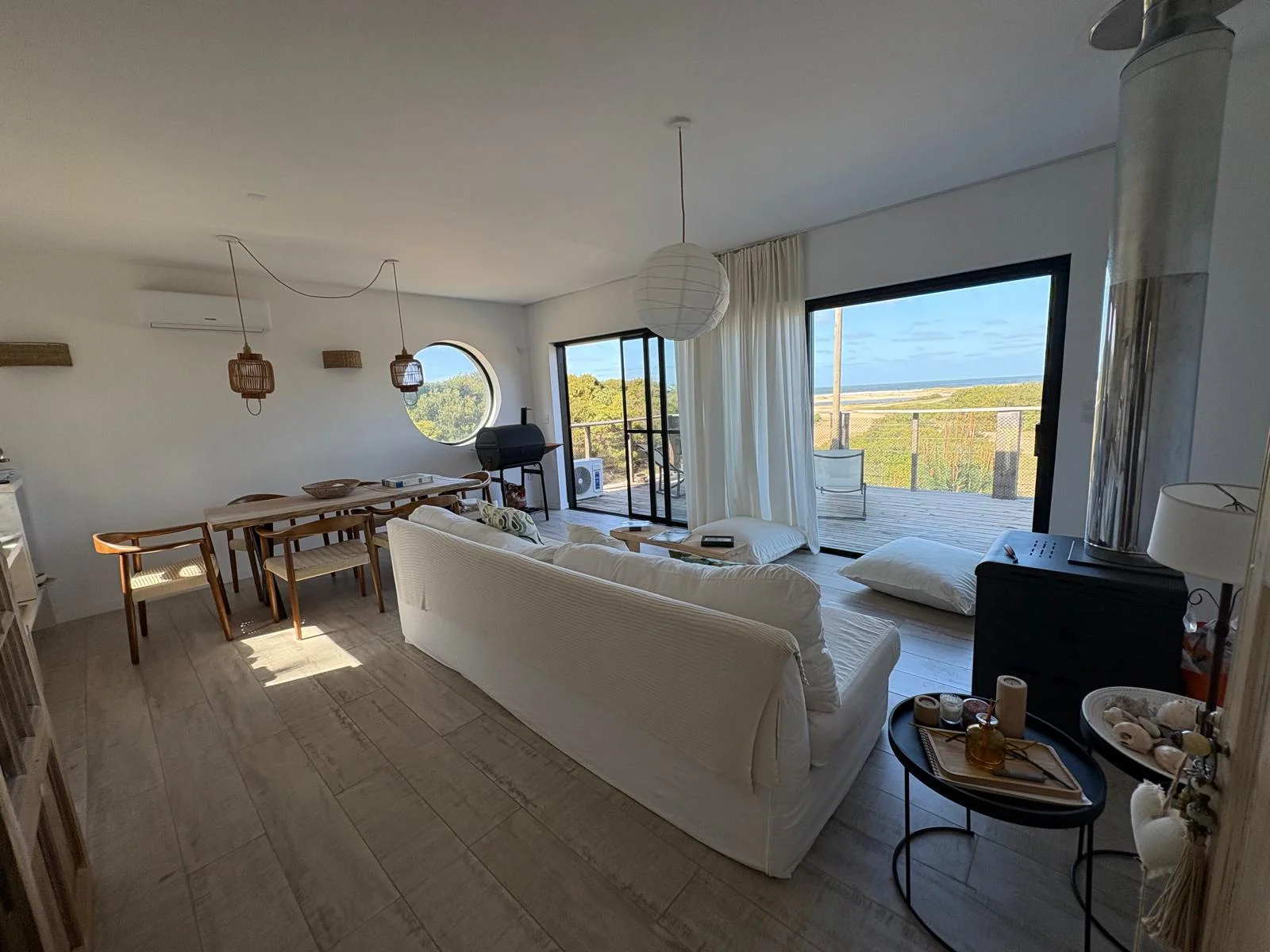 Hermosa casa en Chihuahua con vista al mar, cuenta con un estar intimo en planta baja, lavadero y dos dormitorios en suite (uno con cama Queen y el otro con dos camas individuales).