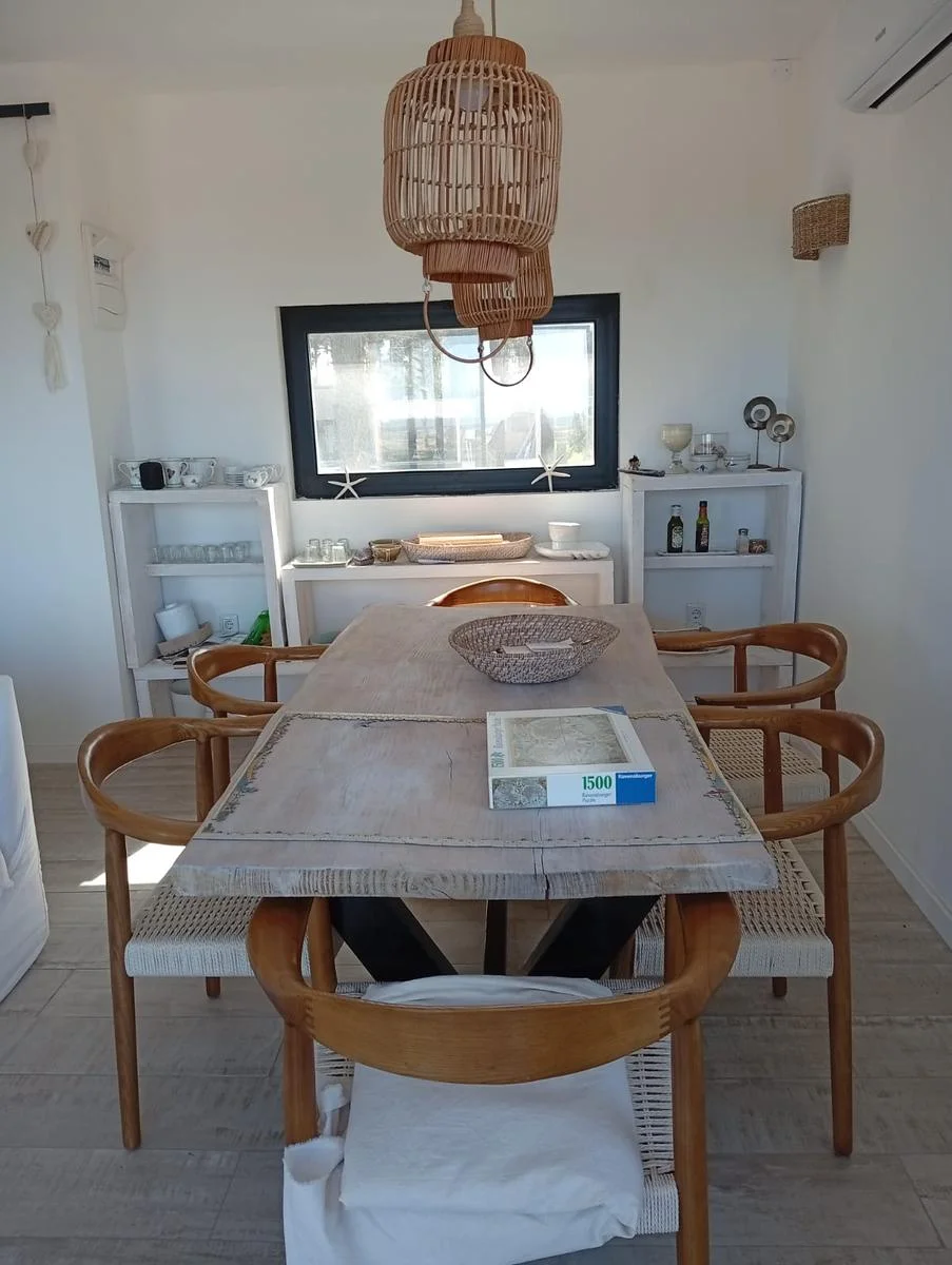 Todas las habitaciones tienen AA ,también el living, la terraza cuenta con sillón ,mesa baja y también hay dos reposeras y un parrillero móvil.