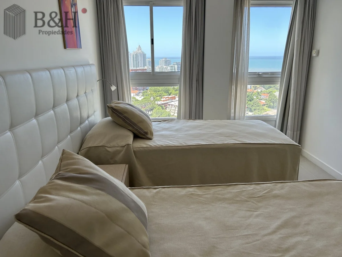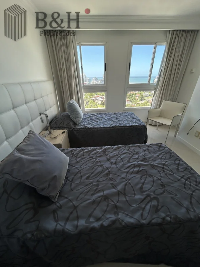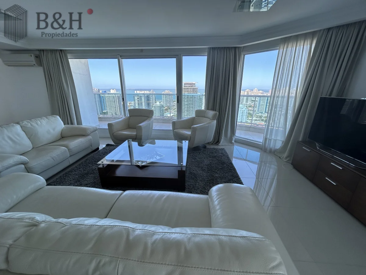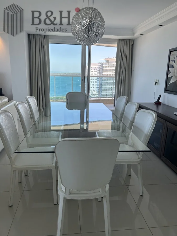 Excepcional apartamento de 3 dormitorios en suite más dependencia con vistas panorámicas impresionantes desde todos sus ambientes. Disfrute de la amplitud de la terraza con parrillero. Ubicado a solo una cuadra de la playa Mansa y a pocos pasos de la Península.