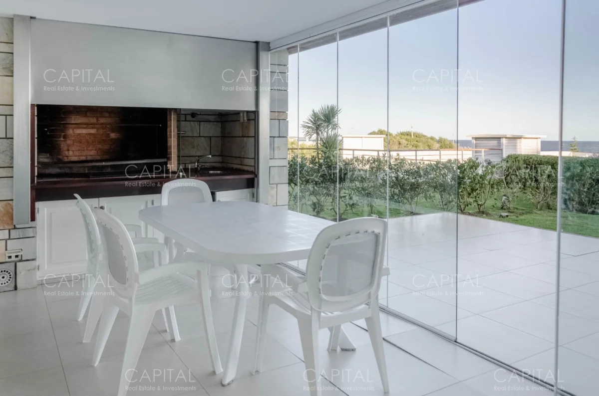 Unidad de dos dormitorios, principal en suite, cocina definida, amplio living comedor con estufa a leña, parrillero propio en la terraza y salida al jardín, vista al Mar desde living y dormitorio principal.