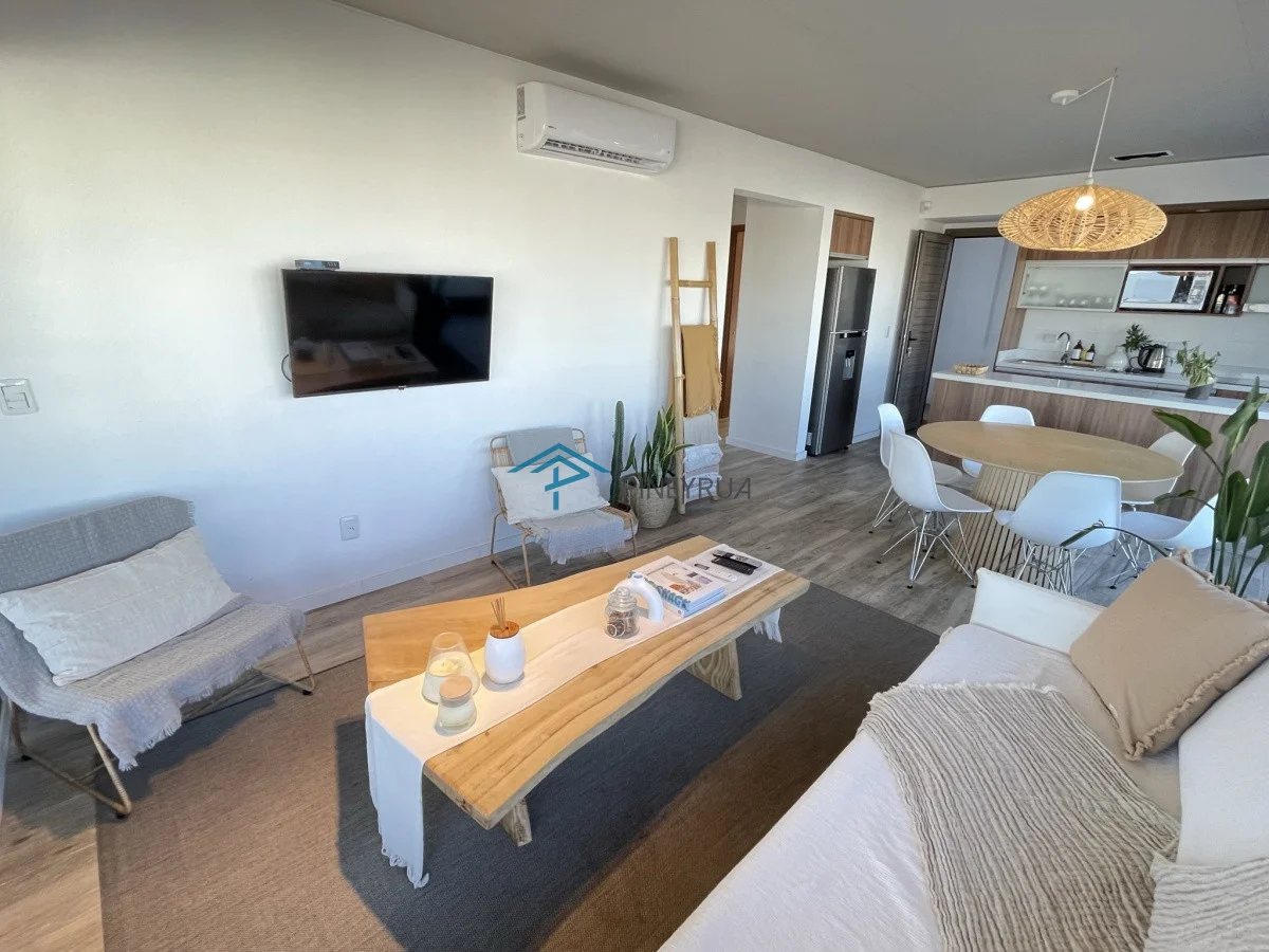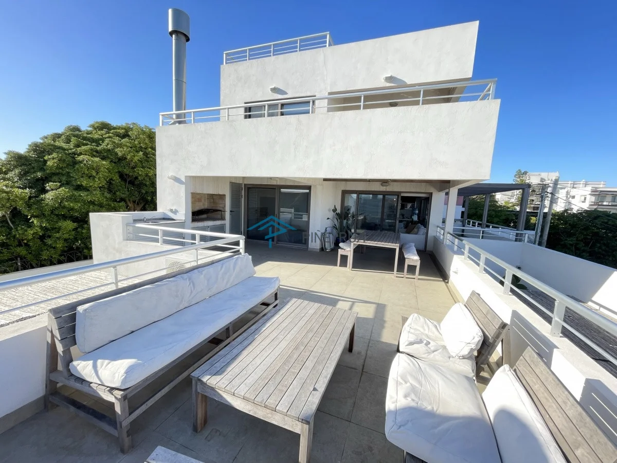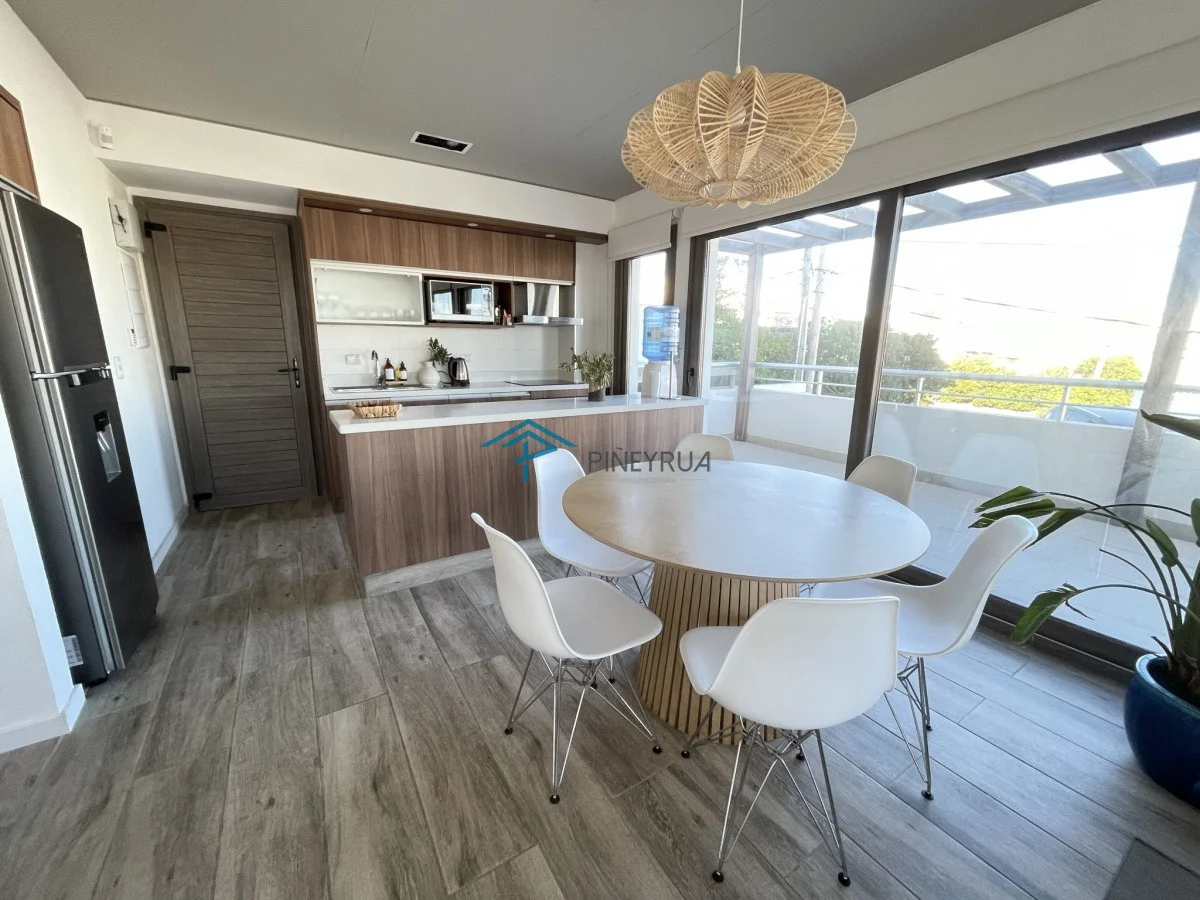 Cocina americana, living comedor, gran terraza con parrillero. Dormitorio principal en suite y otros dos que comparten un baño.