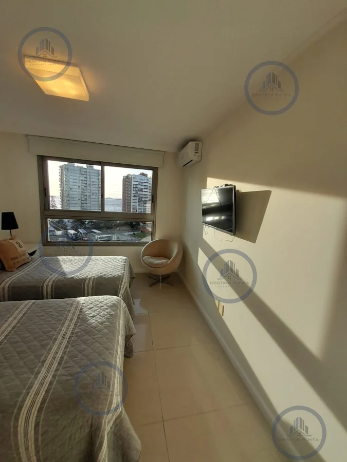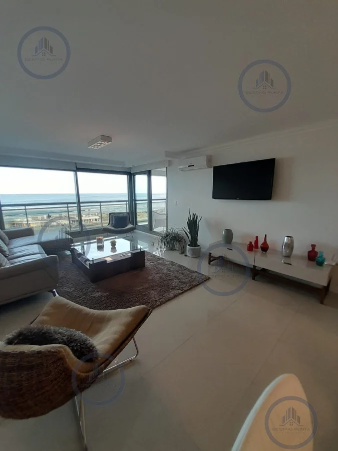 La unidad cuenta con living-comedor de amplias dimensiones, cocina definida, tres dormitorios, incluyendo suite principal, y espacios diseñados para aprovechar al máximo la luz natural y las vistas que ofrece Playa Brava. Sus ambientes brindan comodidad tanto para residencia permanente como para estadías de temporada, destacándose por su diseño funcional y elegante.