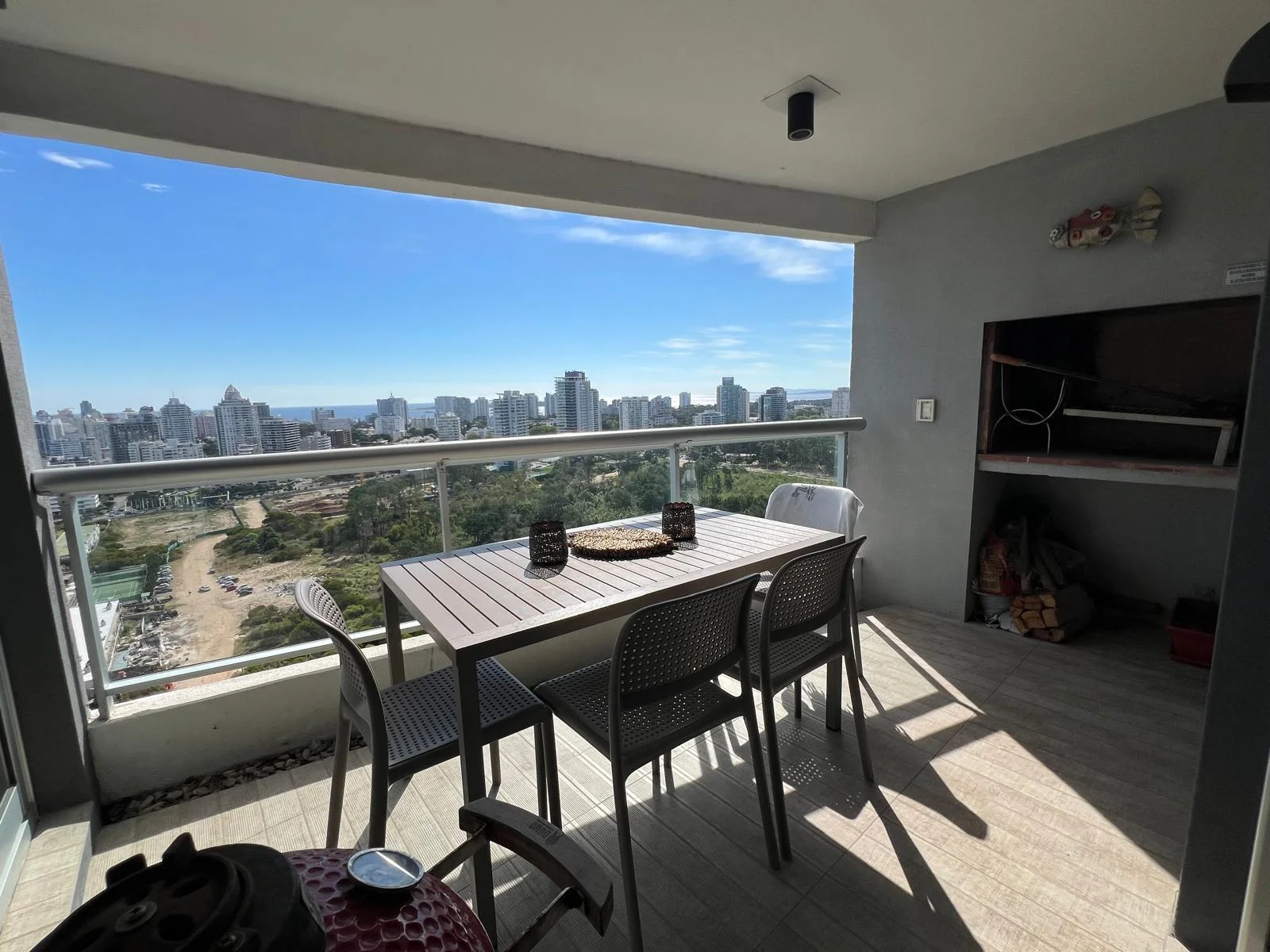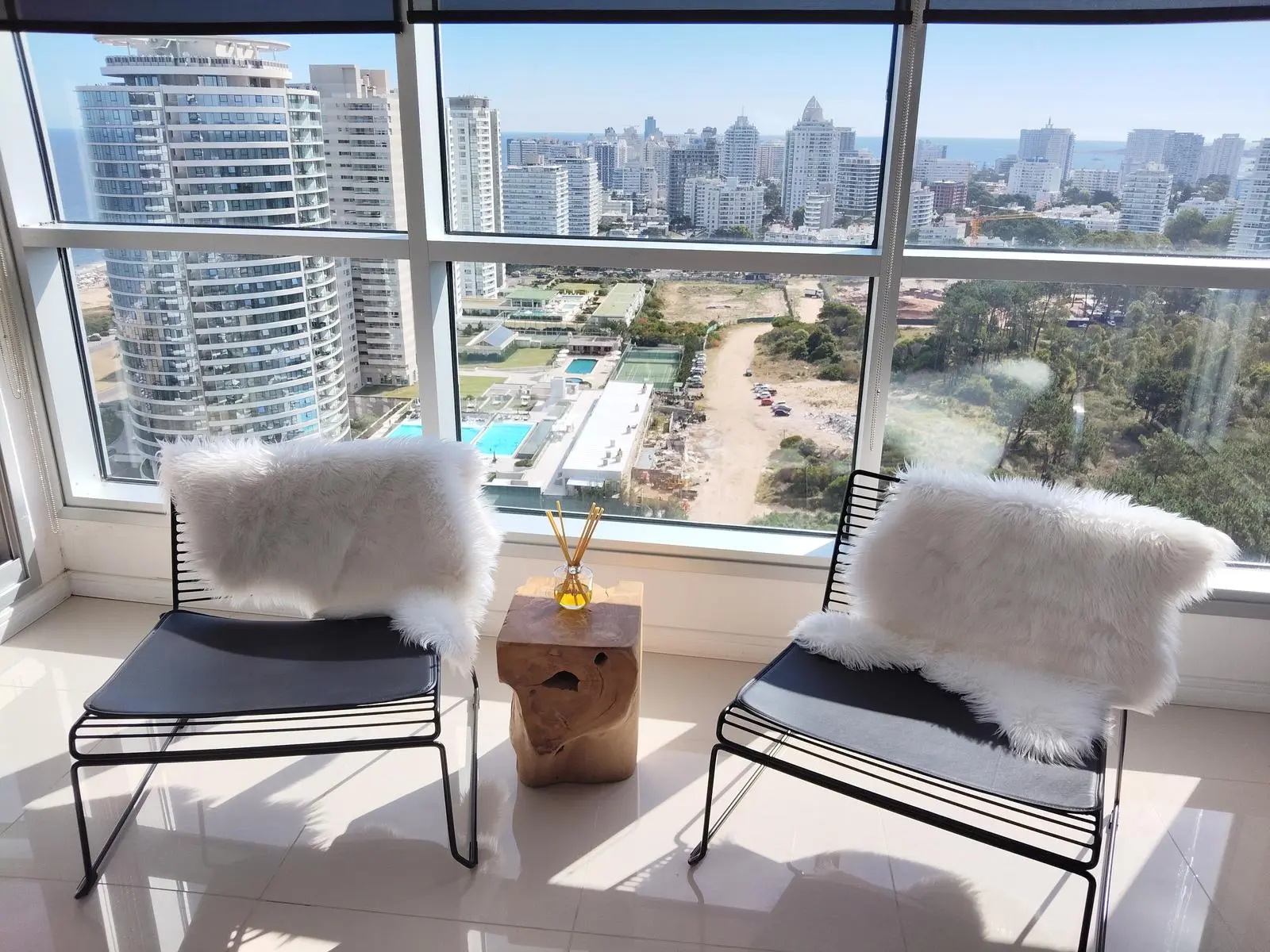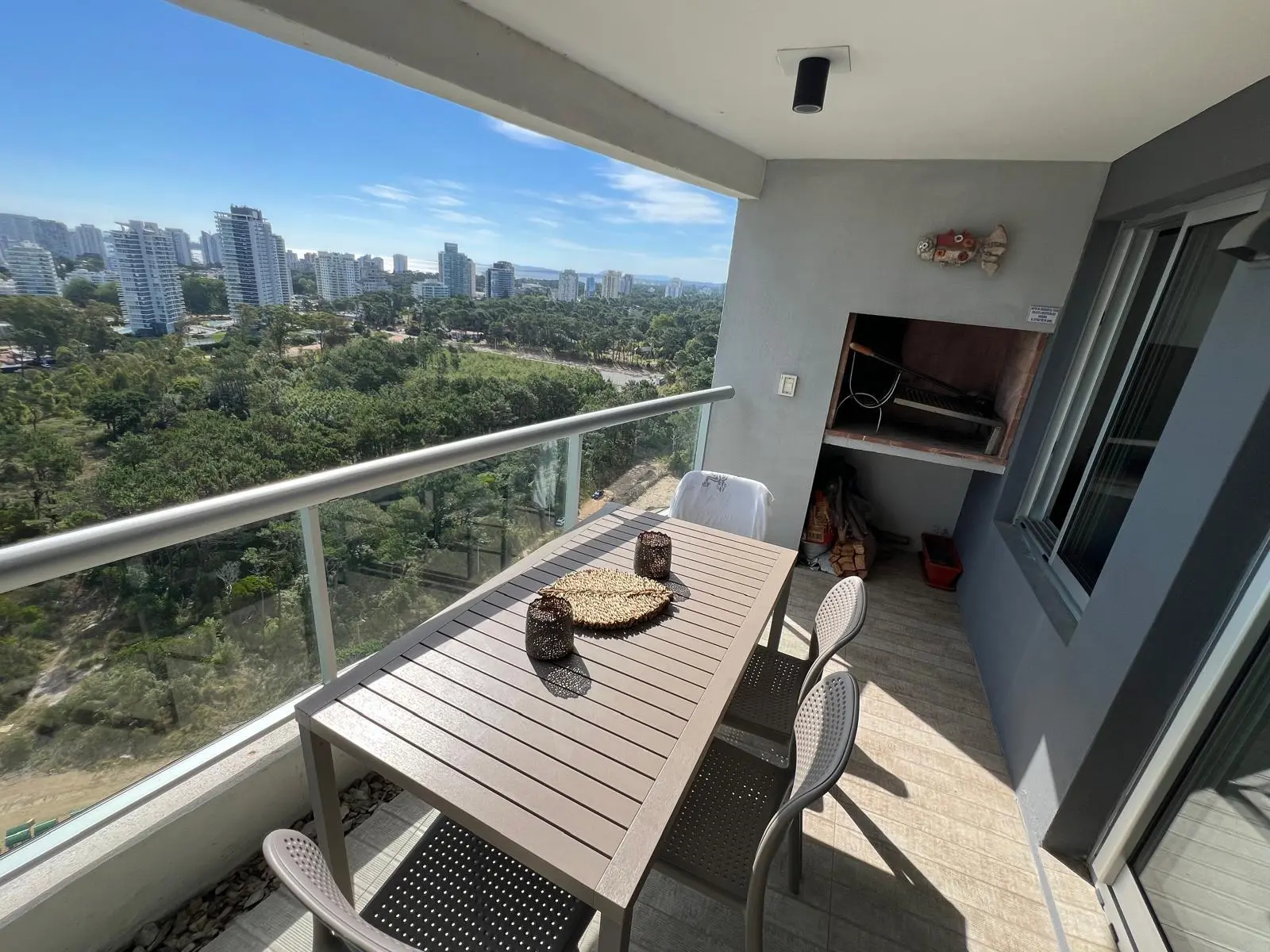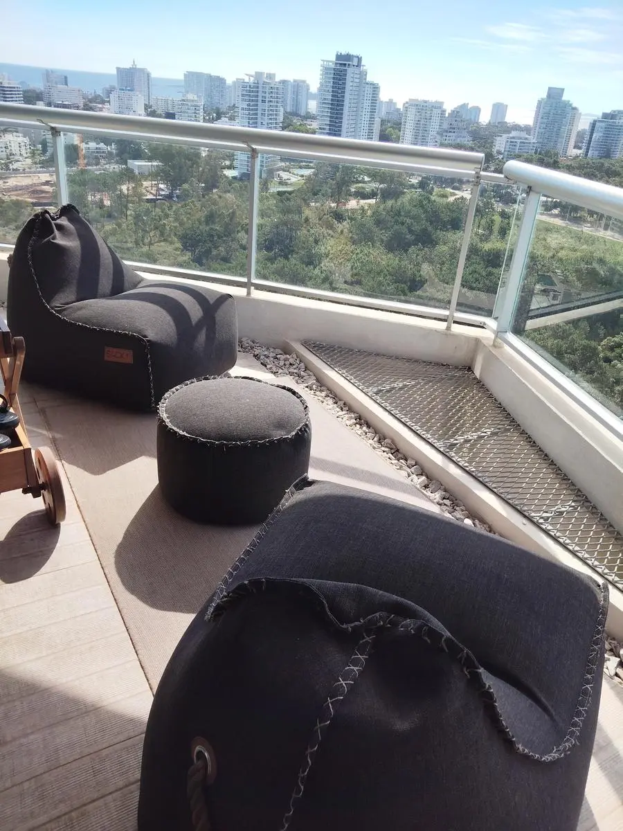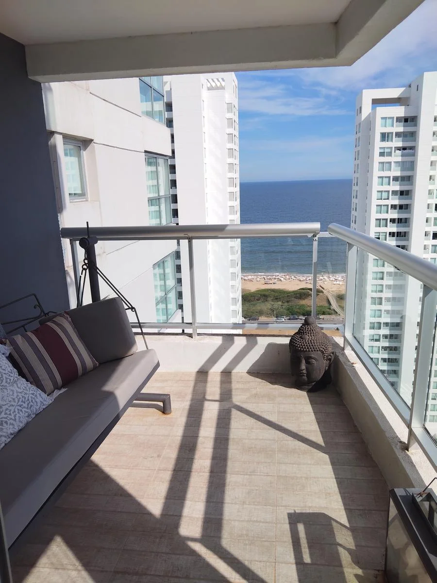 En excelente estado , consta de dos suites (una de 4 x 3,30) con vestidor y Jacuzzi y( otra de 3 x 3,30) con Jacuzzi, ambas unidas por una terraza de 12m2. Cuarto de servicio (3,20 x 2,0) , baño de servicio. Toilette .Cocina completa, ((2,80 x 2,10) totalmente equipada , comedor diario (2.50 x2,10) Living comedor (3,30 x 8,66) Terraza con parrillero propio (8m2) más otra terraza frente al mar (6m2). Tiene 3 balcones, uno con orientación sur, otro norte y uno oeste, vista al mar, a arboledas y a zona urbana. Se vende amueblado. Dos cocheras con muy buena ubicación