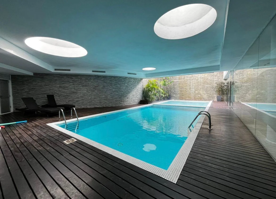 Piscinas: Una cubierta climatizada y otra al aire libre, disponibles todo el año.