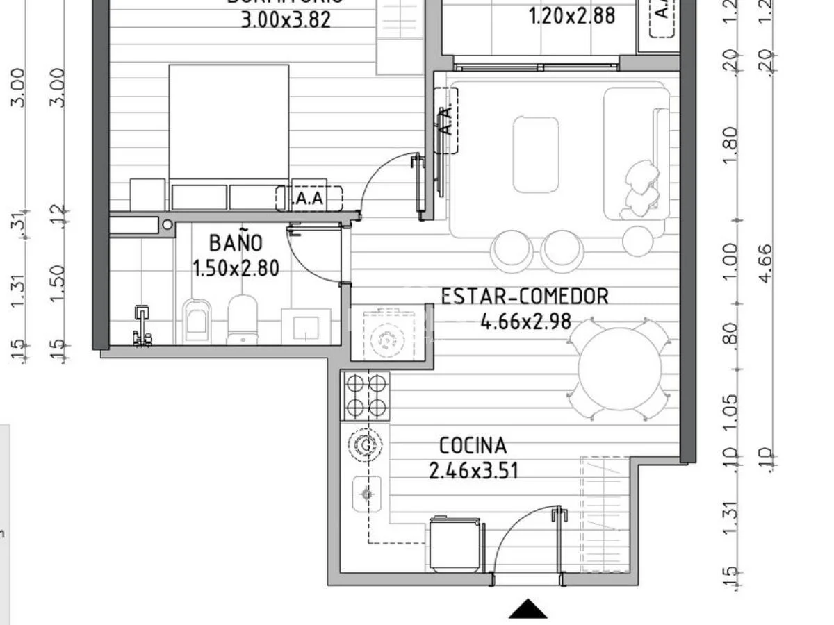 GC: estimado 4600 para apartamentos de 1 dormitorio