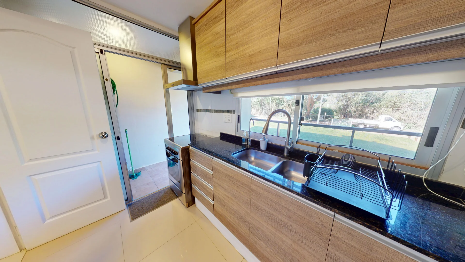 Cocina definida y terraza lavadero.