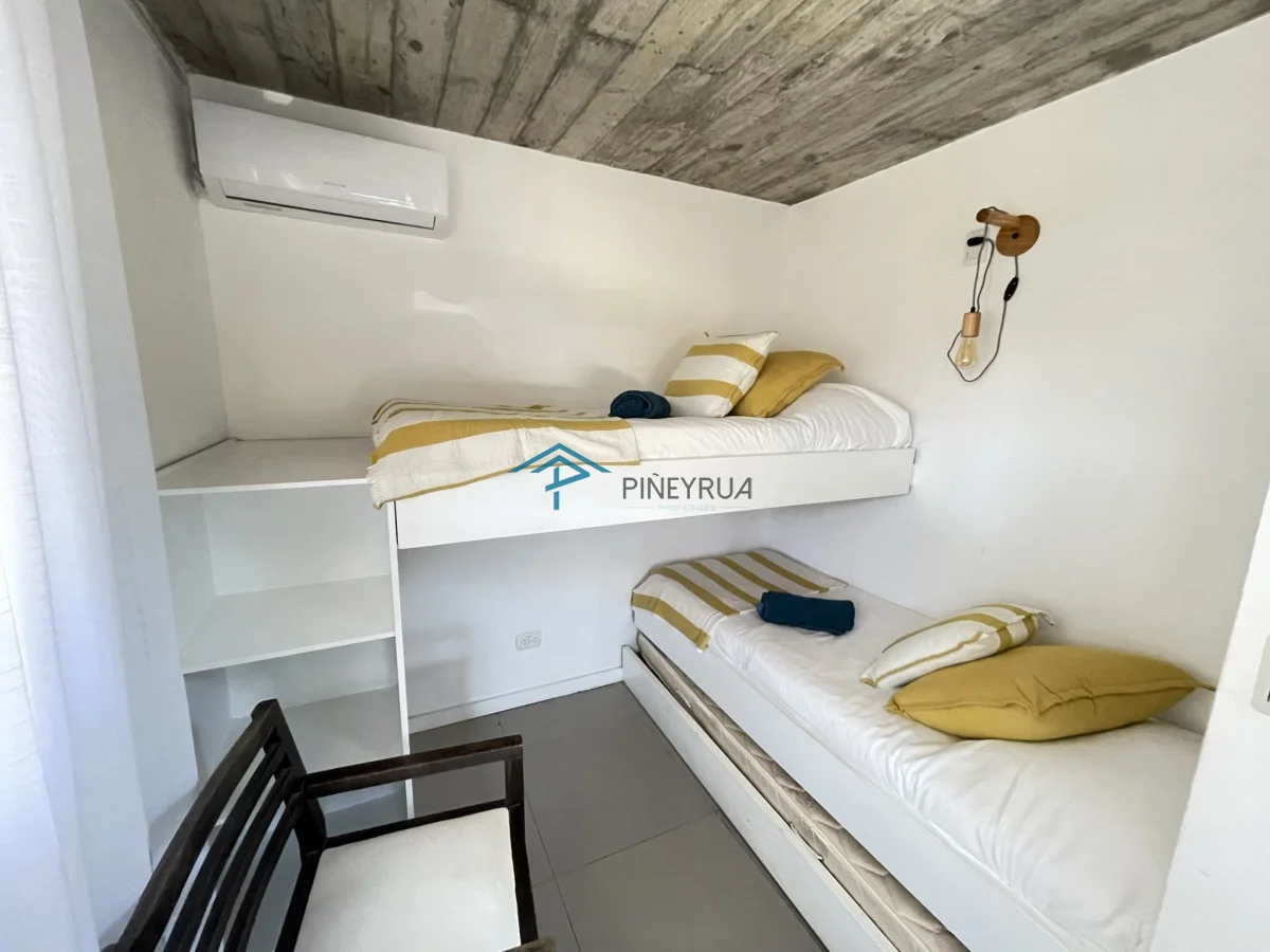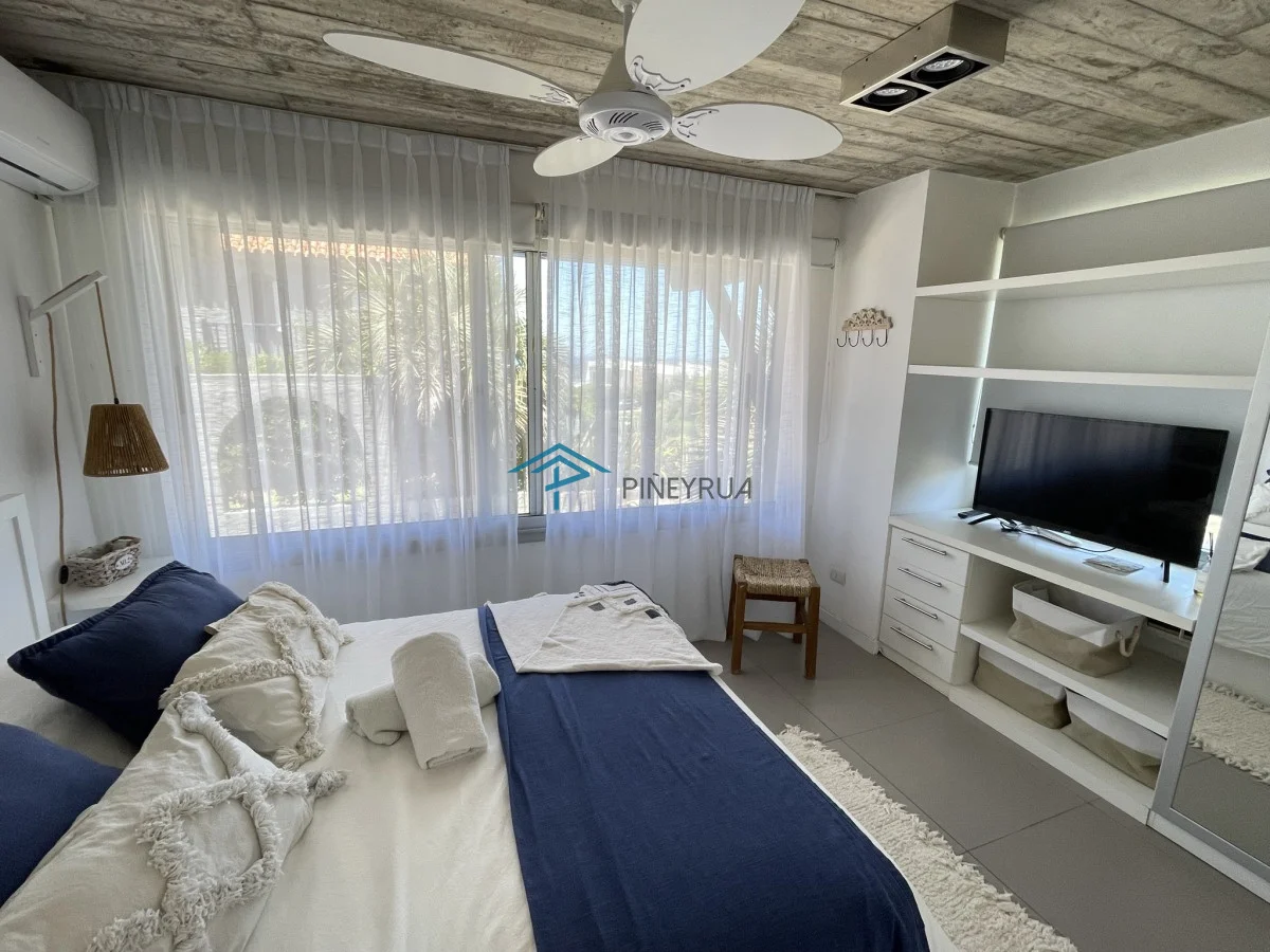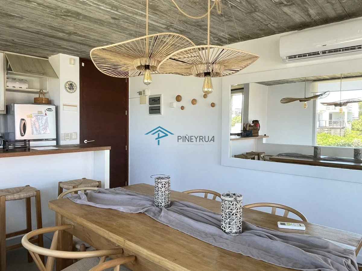 En el primer nivel, cocina integrada, parrillero y living comedor con salida a terraza con vista al mar. En segundo desnivel, dormitorio principal en suite con vistas al mar y otro con su baño. En el último, tercer dormitorio con un baño y cochera. Cuenta con servicio de mucama y piscina.