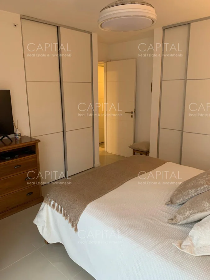 El edificio suma excelentes amenities: seguridad 24 hs, servicio de playa, piscina climatizada, piscina para niños, gimnasio, sauna, barbacoa, playroom, SUM y jardines.