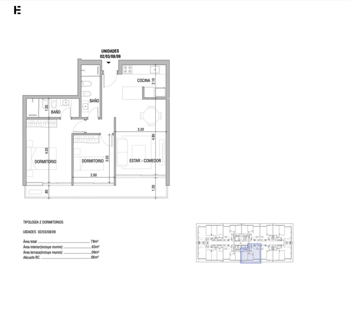 (4 x piso centrales) 02,03,08,09 área interior 63 m2 + terraza 9 m2