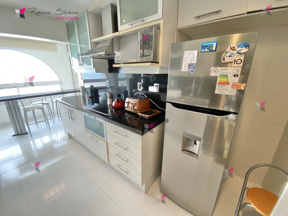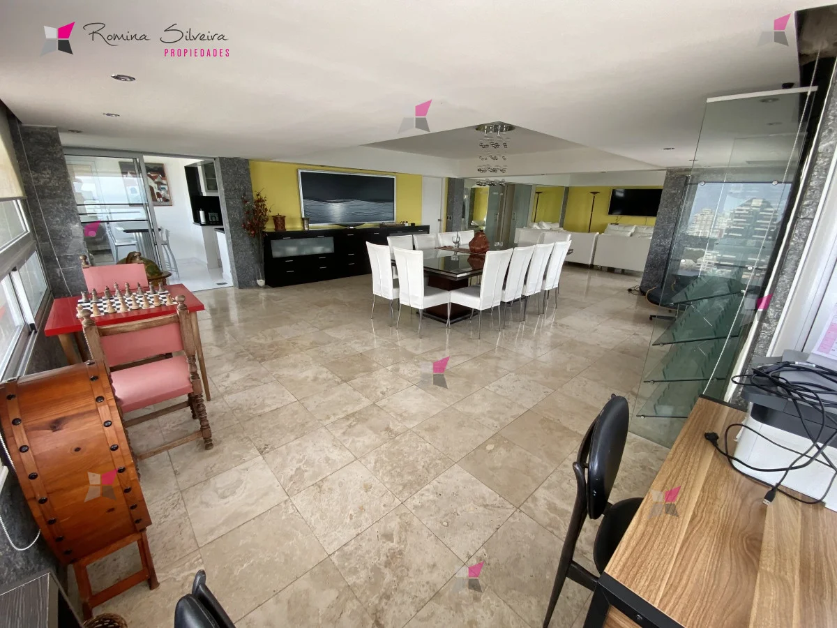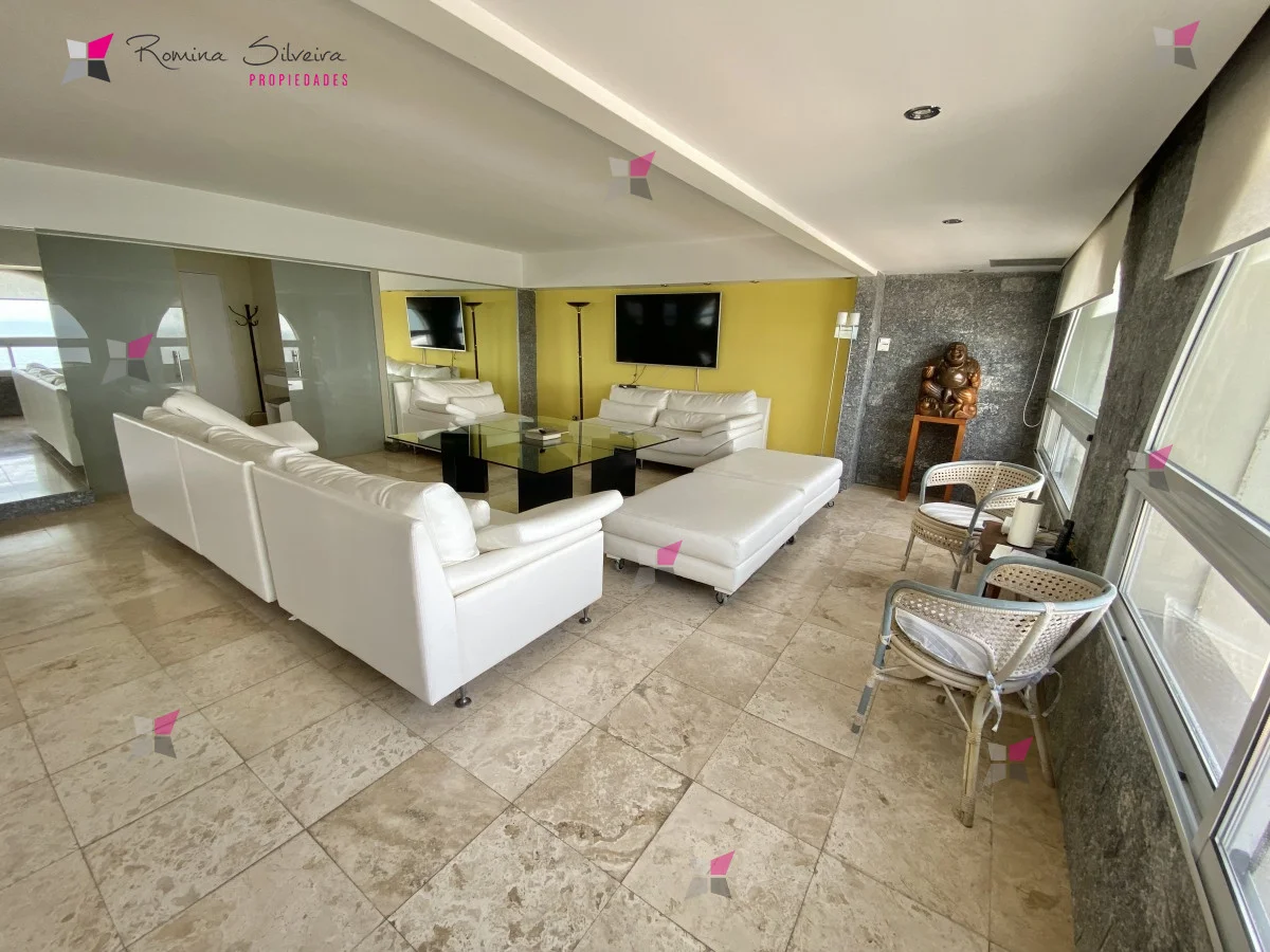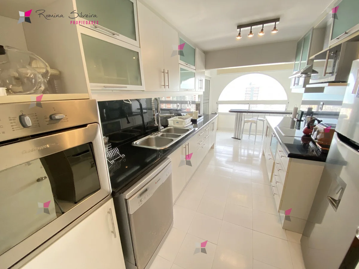 La unidad se desarrolla en piso alto y ofrece 238 m² totales, con un generoso living comedor con vista abierta a Playa Brava.