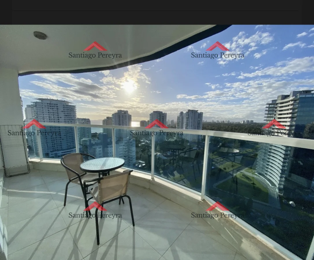 Apartamento de 2 dormitorios, 2 baños en suite, toillete, amplia terraza con parrillero y vistas hacia playa mansa. Piso alto.