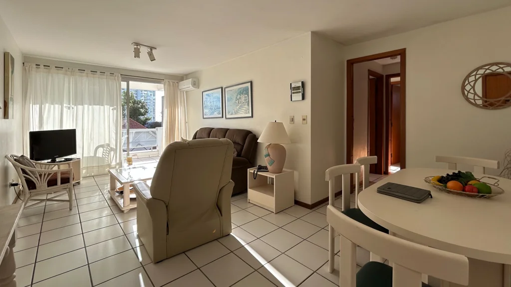 APARTAMENTO PLAYA MANSA MALDONADO CAP BRETON - PISO 2 AP502121 Muy buen apartamento en Parada 3 de Punta del Este, a solo dos cuadras de la playa Mansa y metros del Hotel-Casino Enjoy. Ubicado en el edificio Cap Breton, de sólida edificación, uno de los proyectos del estudio Atijas-Weiss, realizado en 1992. Piso dos, con orientación oeste, tiene muy buena luminosidad sobre las horas de la tarde. Cuenta con un cómodo living-comedor con salida a balcón y vista parcial al mar; cocina independiente, dos dormitorios y dos baños (uno en suite). Posee cochera propia en el subsuelo, además el edificio cuenta con portería las 24 hs, servicio de mucama, piscina exterior climatizada en temporada alta y dos parrilleros de uso común.