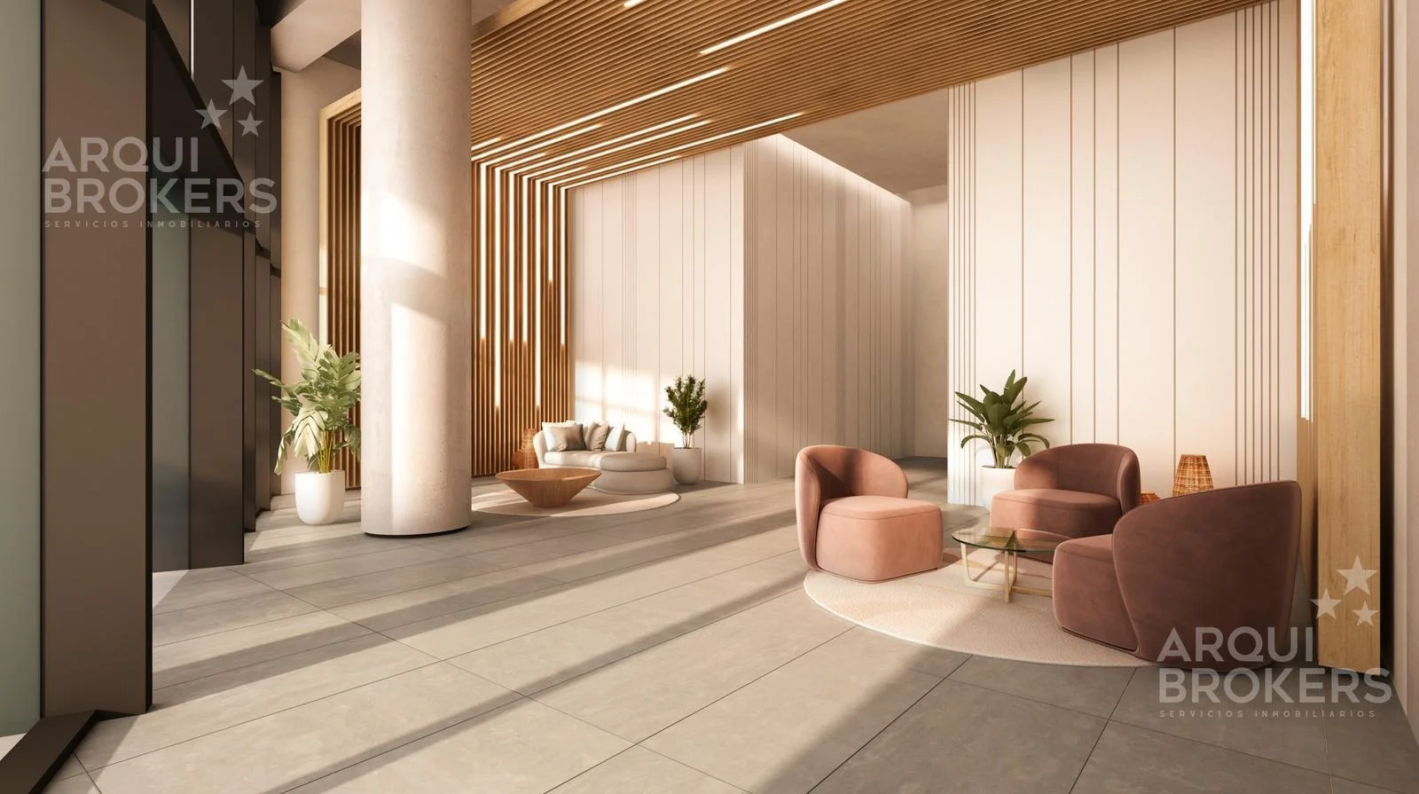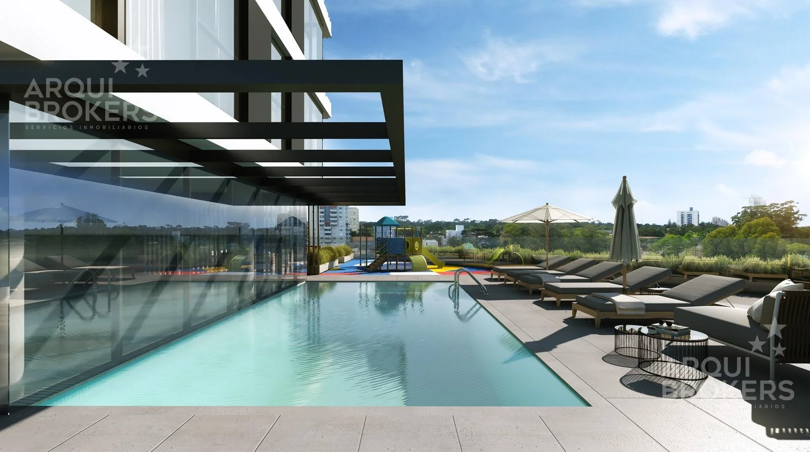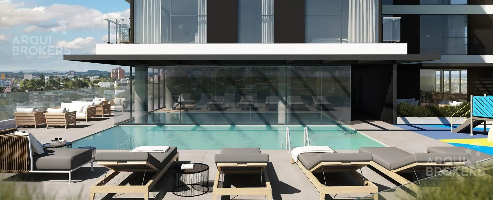 Amenities: vestuarios, solárium, piscina exterior, piscina interio, pet garden, lobby recepción, livings exteriores, kids club, juegos exteriores, gimnasio, barbacoa, salón mirador en rooftop.