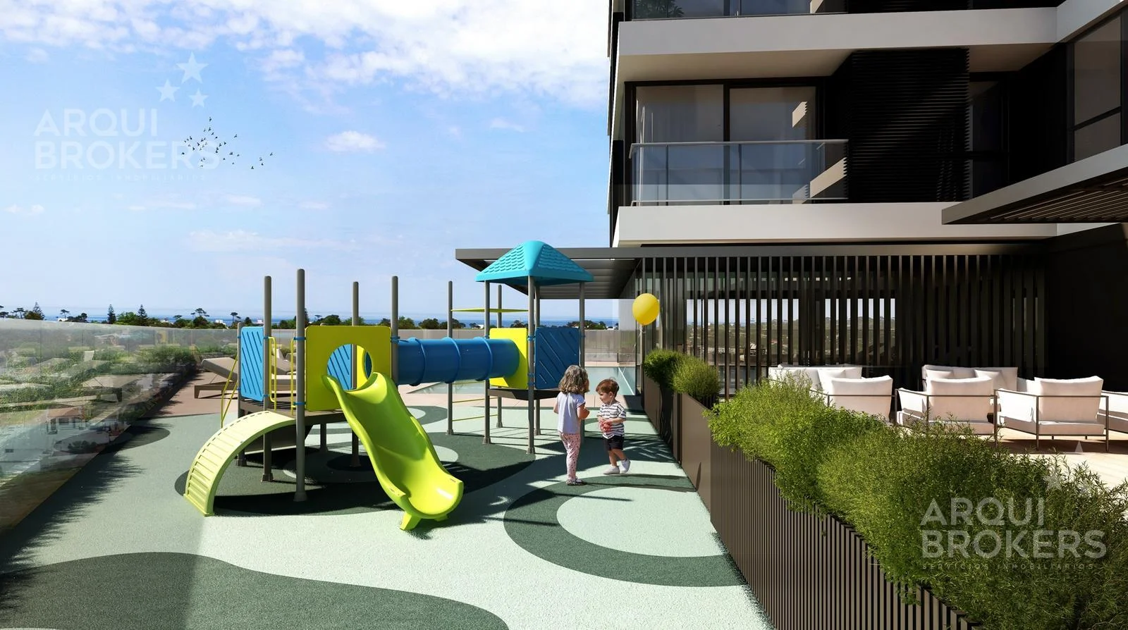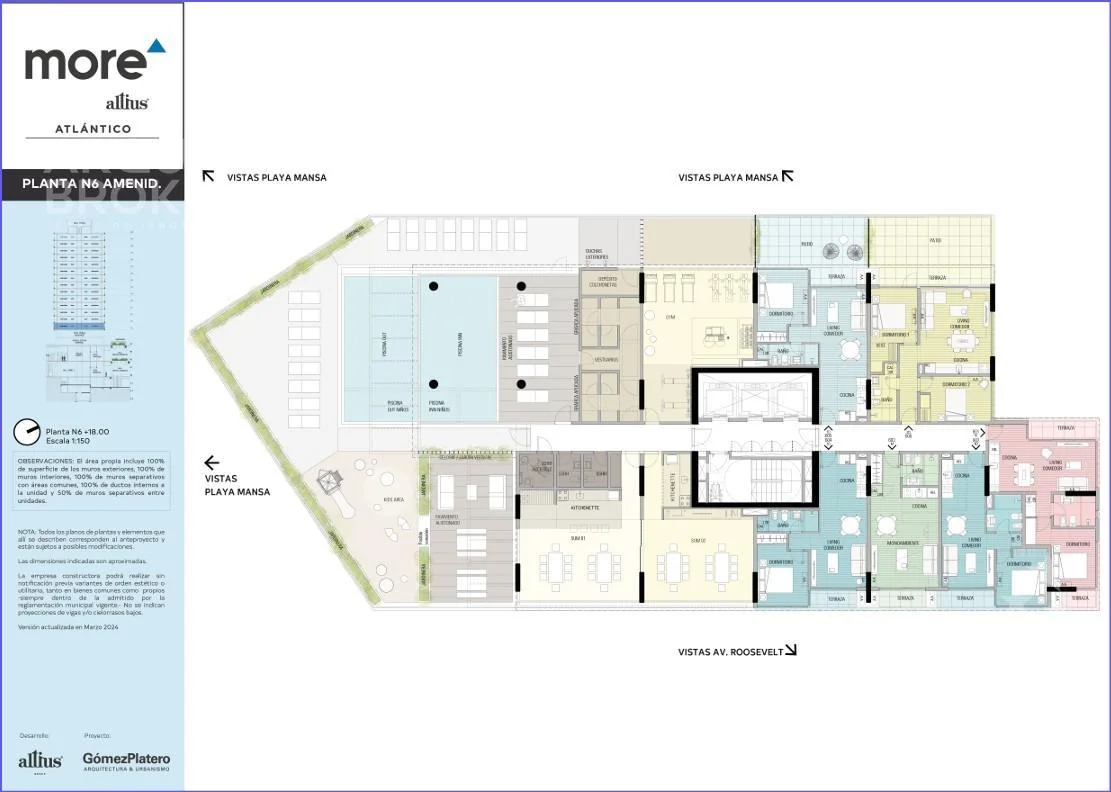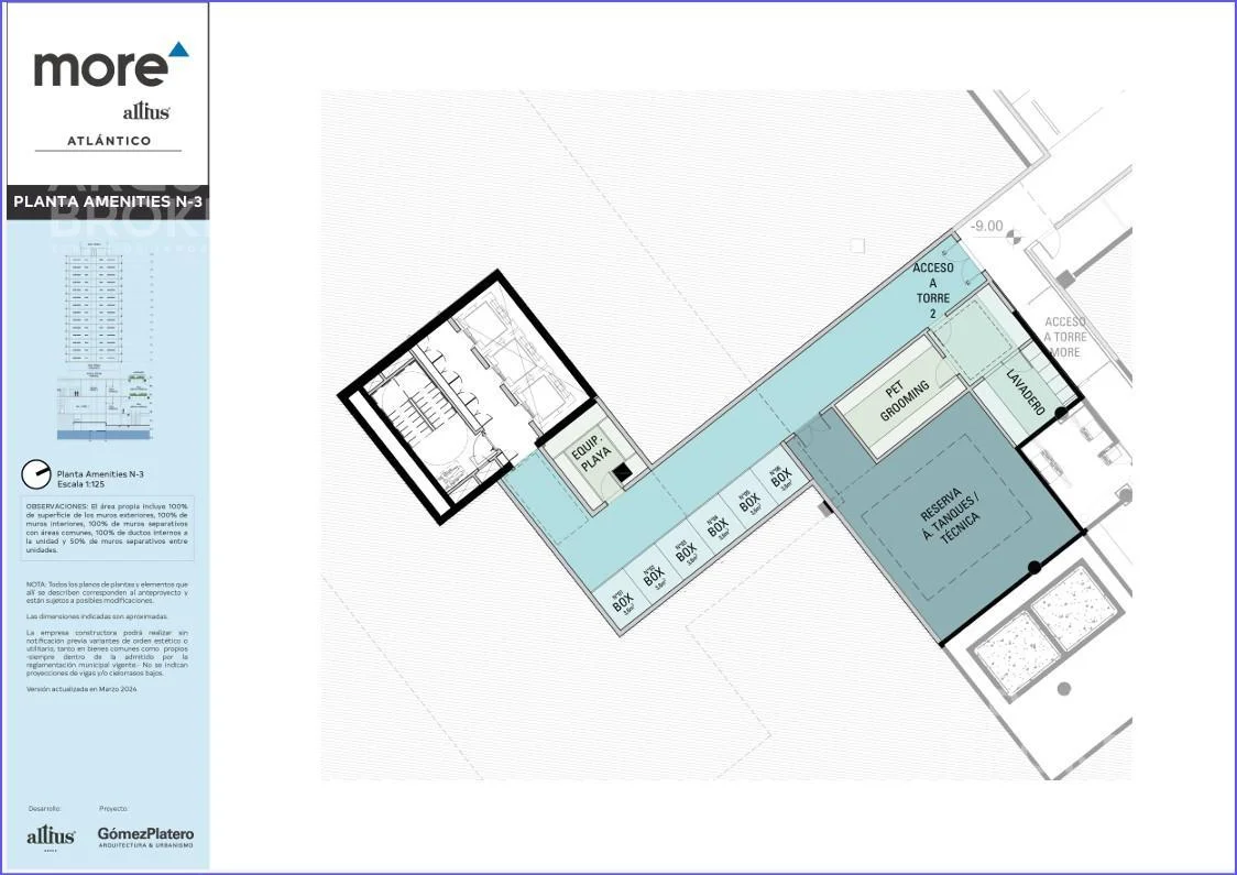 Amenities: vestuarios, solárium, piscina exterior, piscina interio, pet garden, lobby recepción, livings exteriores, kids club, juegos exteriores, gimnasio, barbacoa, salón mirador en rooftop.