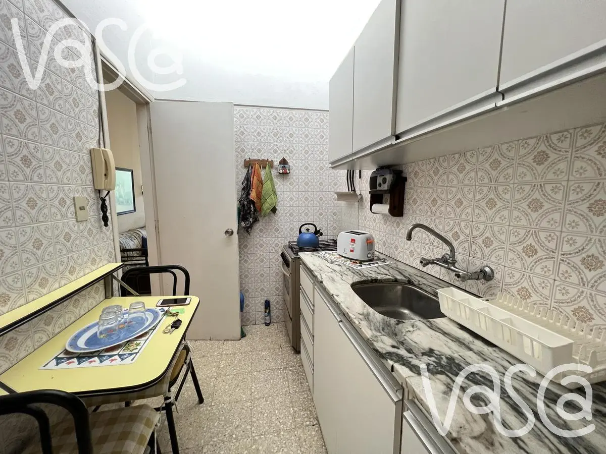 Cuenta con 2 dormitorios, un baño completo, cocina definida y living comedor con salida a la terraza. Vistas despejadas al parque. Al ser contrafrente y con vista al parque es muy silencioso y tranquilo. Cuenta con cochera techada fija.