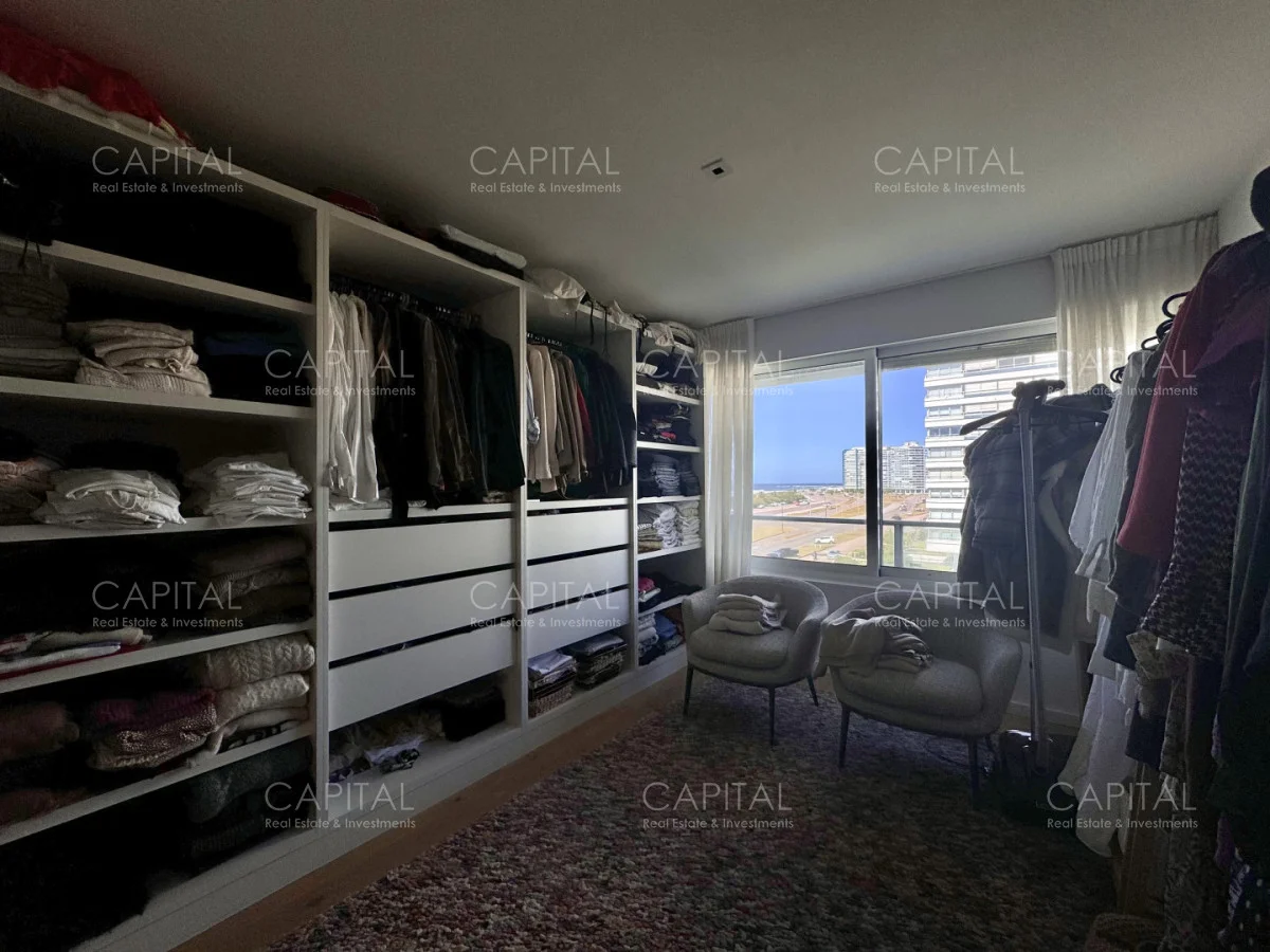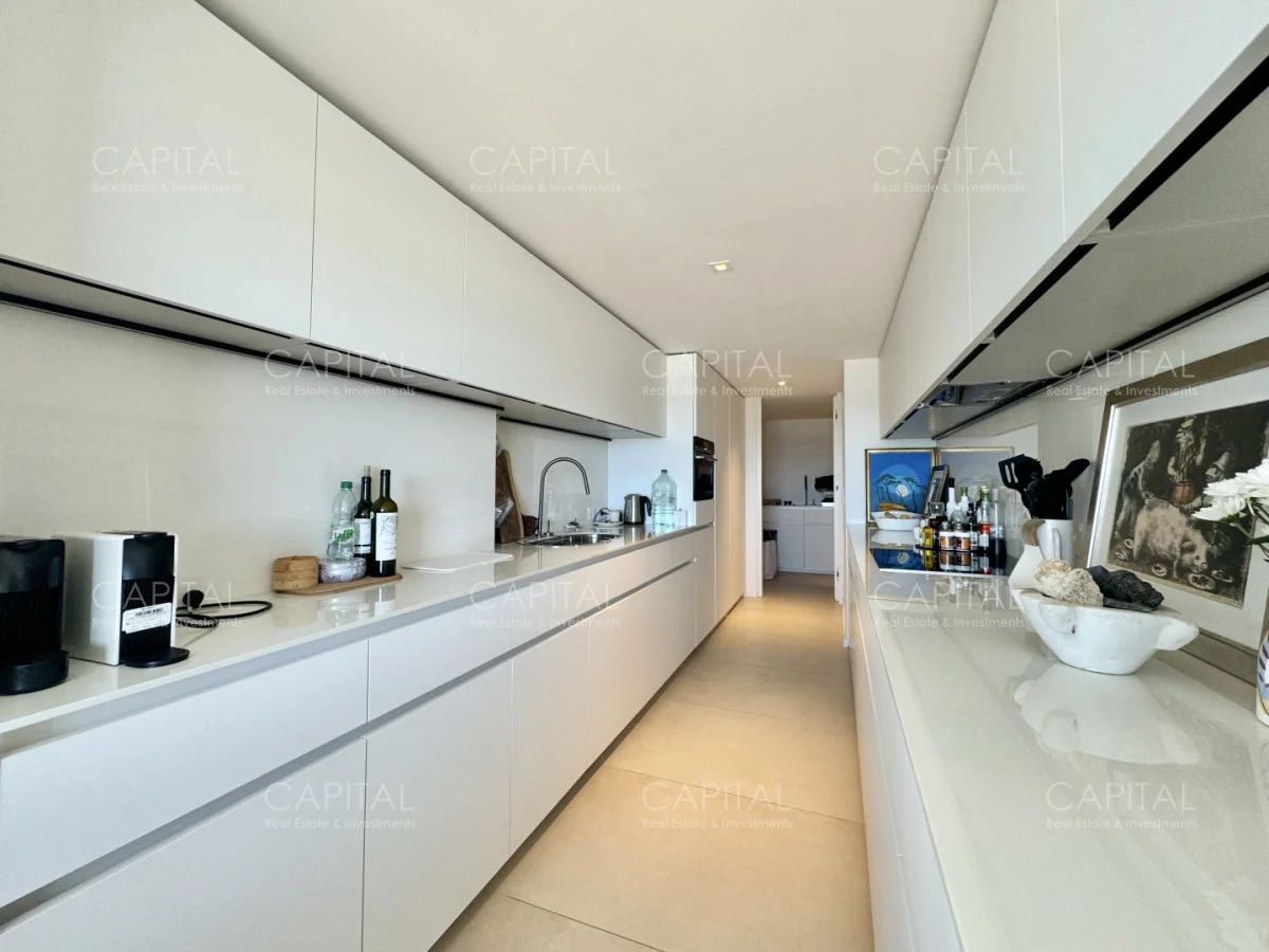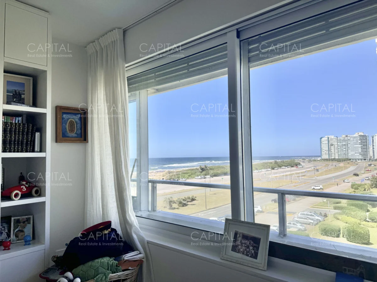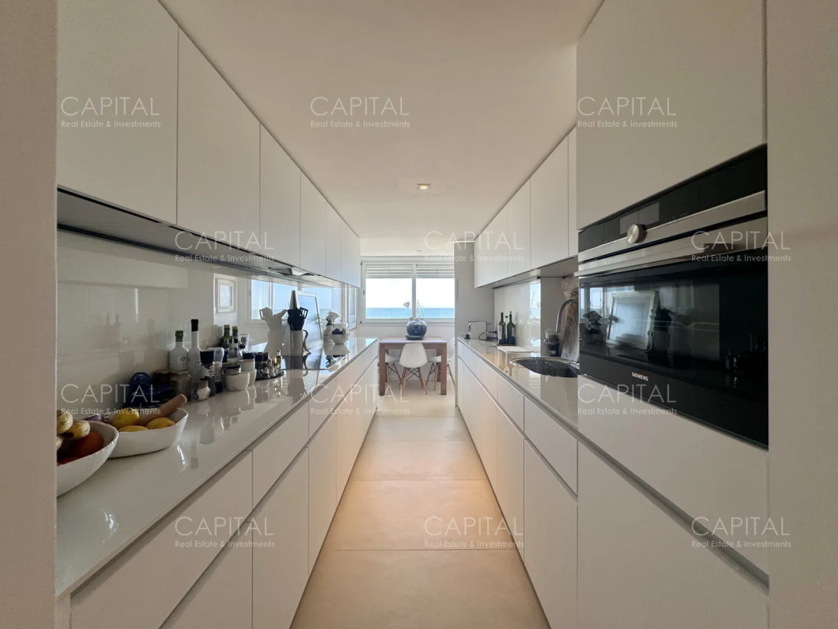 Unidad de tres dormitorios y dependencia de servicio totalmente reciclada, tercer dormitorio acondicionado como vestidor, amplio living comedor, cocina definida con desayunador diario con vista al mar y dependencia acondicionada como escritorio.