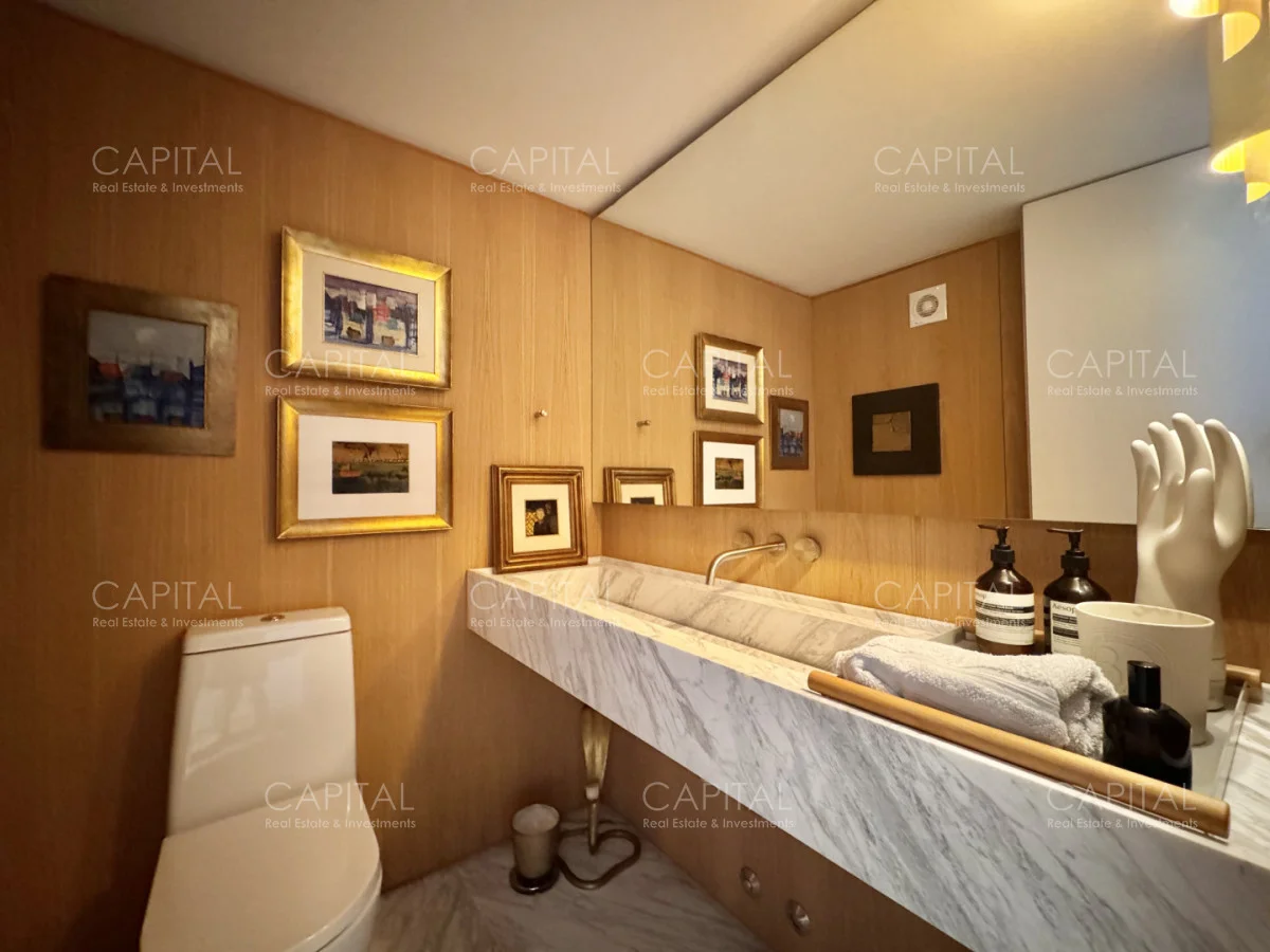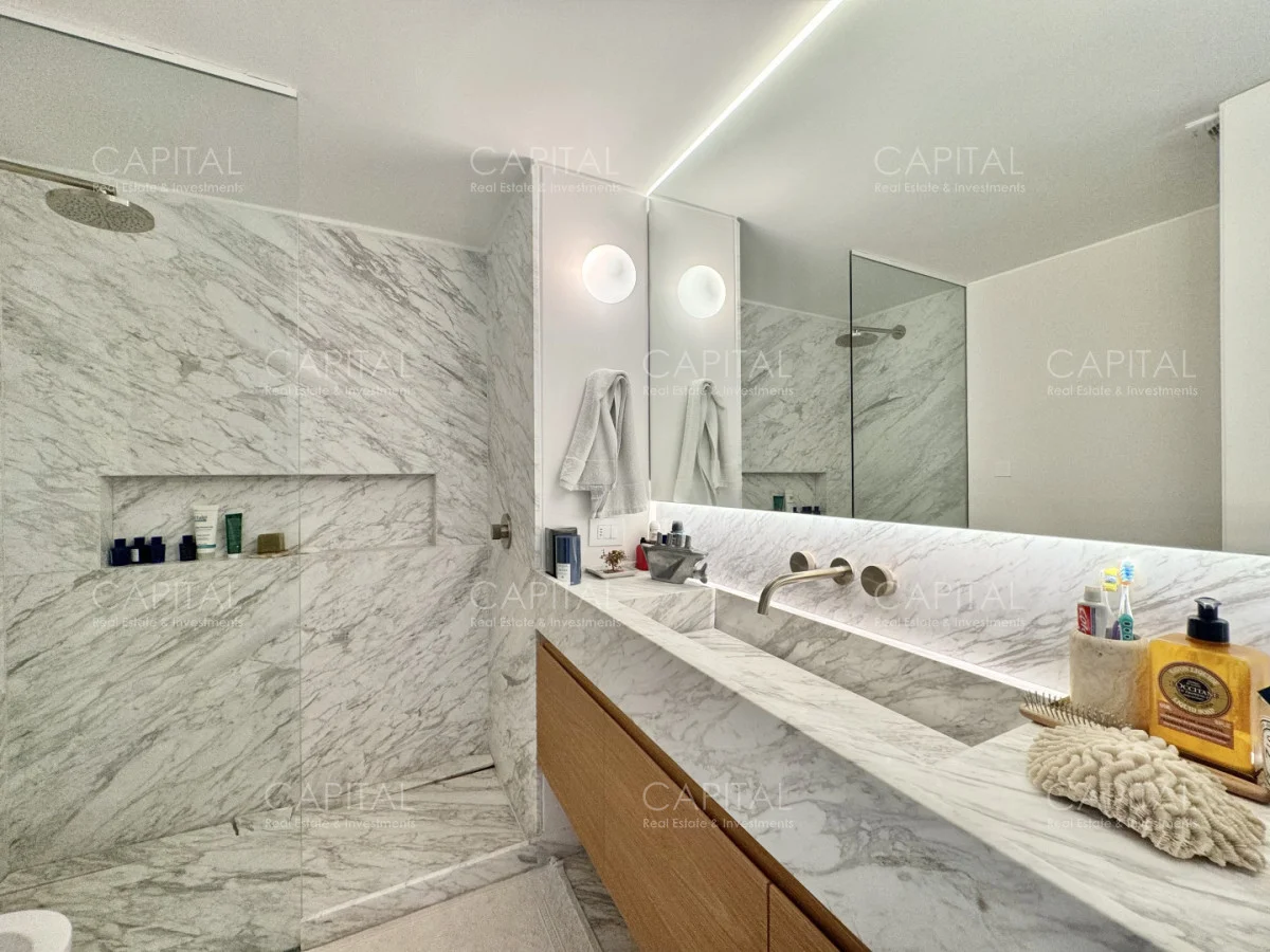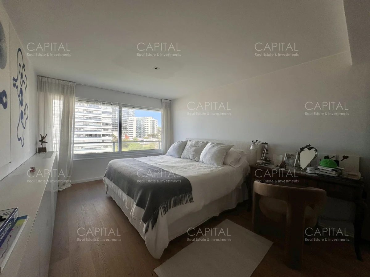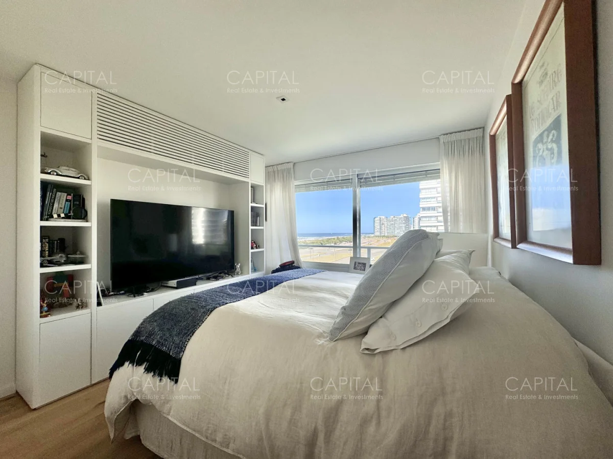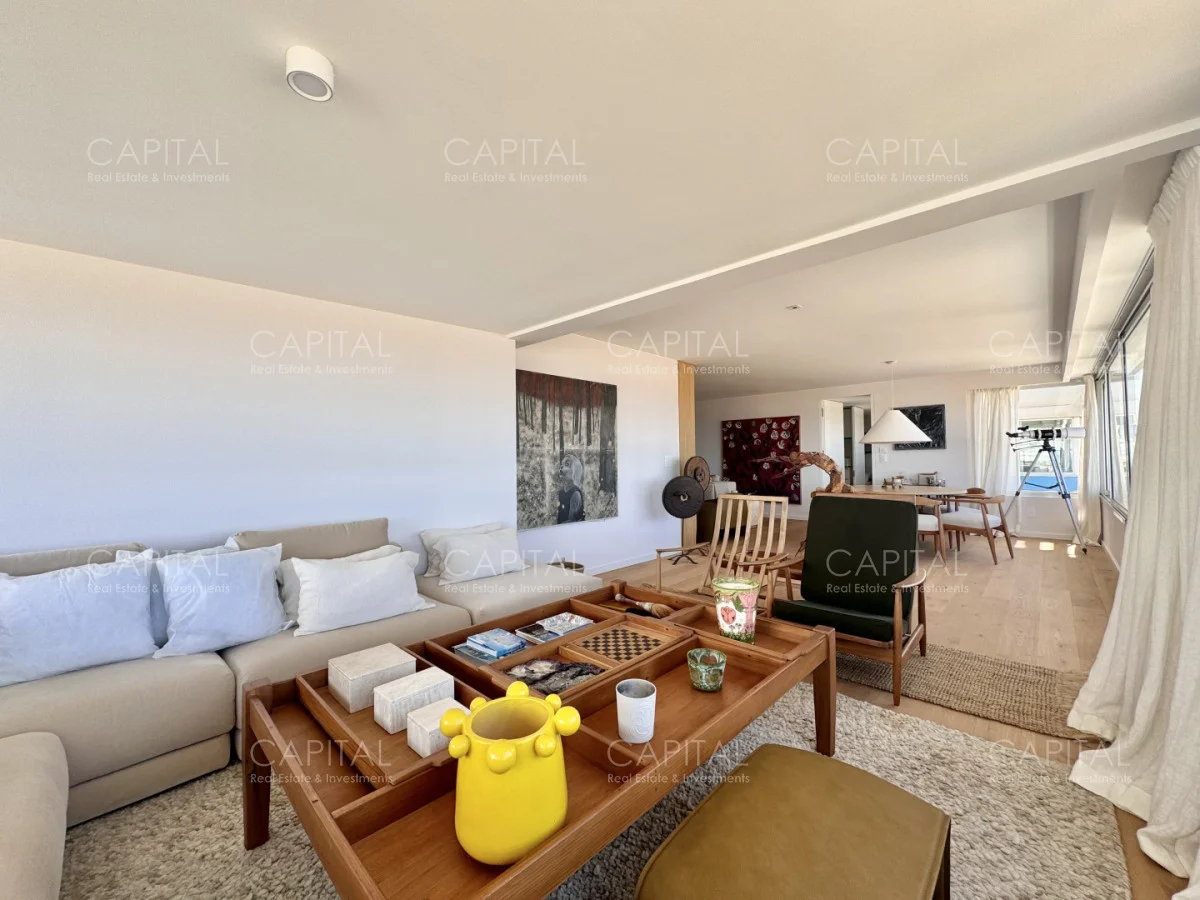 Unidad de tres dormitorios y dependencia de servicio totalmente reciclada, tercer dormitorio acondicionado como vestidor, amplio living comedor, cocina definida con desayunador diario con vista al mar y dependencia acondicionada como escritorio.