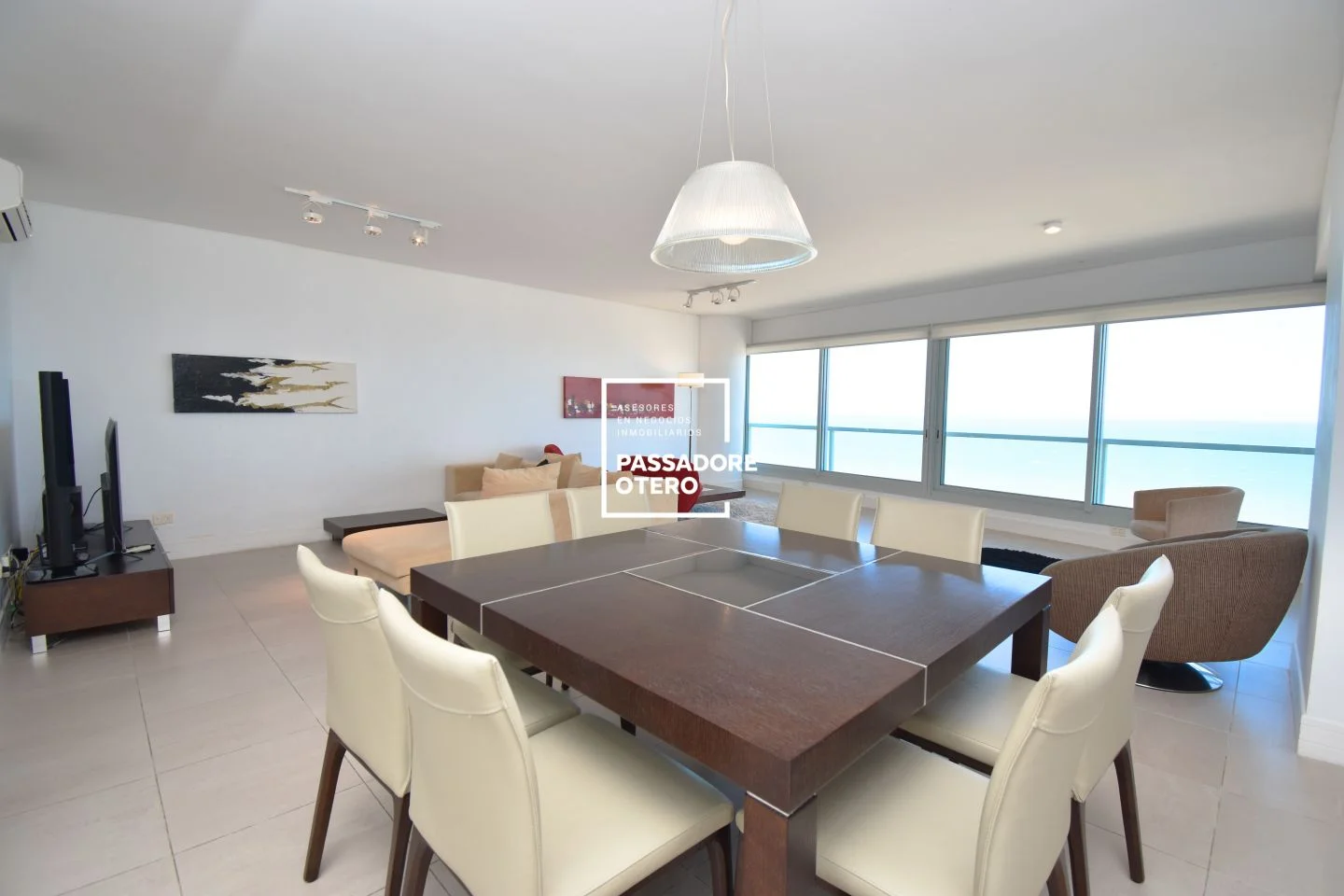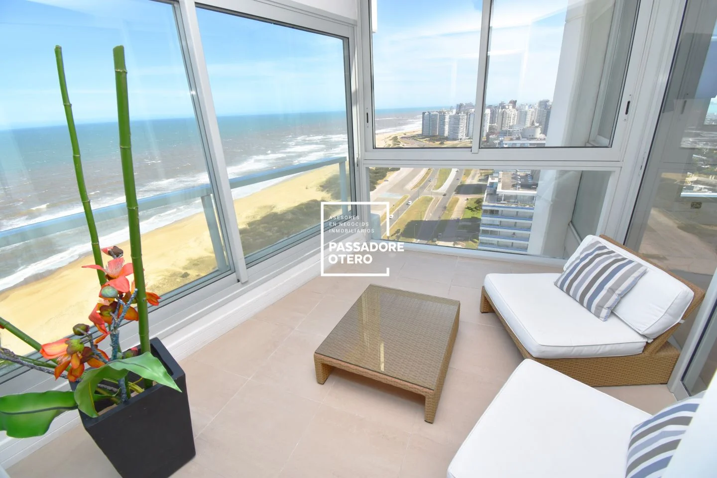 EXCELENTE DEPARTAMENTO UBICADO EN EMBLEMATICA TORRE DENOMINADA Le Parc I, UBICADA EN Parada 8 de la Brava frente al mar Apartamento esquinero ubicado en piso alto con una inmejorable vista a la playa brava, la planta cuenta con 232 mts totales, donde se distribuyen en: 3 dormitorios en suite mas dependencia de servicio con baño. Balcón cerrado de doble circulación, cocina con comedor diario, lavadero. Totalmente Equipado.- Dentro de los amenities del edificio se destacan: Cancha de tenis, jaula de golf, piscina cubierta, gimnasio, spa, solarium, salones con parrilleros, business center, micro-cine, servicio de mucama y conserjería, lavandería, lavadero de autos, sistema de seguridad y control de acceso, circuito cerrado de TV, cocheras fijas y bauleras. Consúltenos!!! www.passadore-otero.uy . Caracteristicas: PLAYROOM, SALA DE JUEGOS, SOLARIUM, APTO PARA FAMILIAS/NI?OS, CANCHA DE TENIS, CERRAMIENTO, ESTACIONAMIENTO, SEGURIDAD, PORTERO ELECTRICO, VIGILANCIA, VISTA AL MAR, BAULERA XINTEL (PSD-PSD-7269)