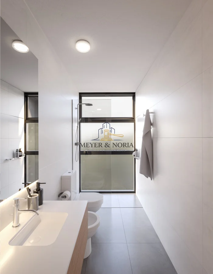 Los baños cuentan con espejos, muebles con lavamanos incorporados, pavimento y ducha de porcelanato, revestimiento de muros de porcelanato, extractores de vapor, grifería de alta calidad e inodoros con doble descarga.