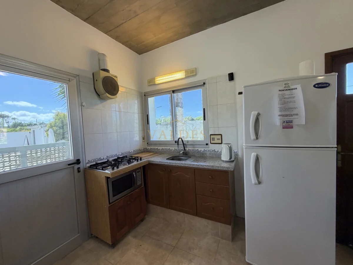 Casa de 2 dormitorios y 2 baños, cocina integrada, lavadero, jardín con riego automático.