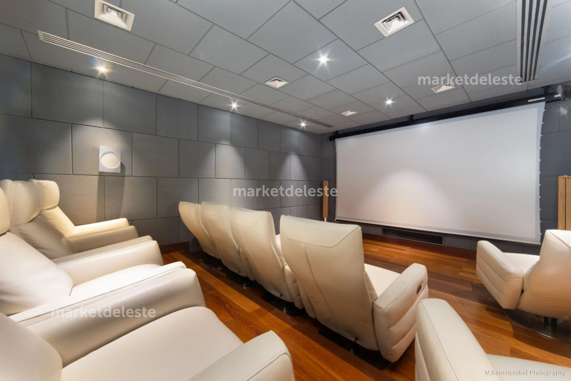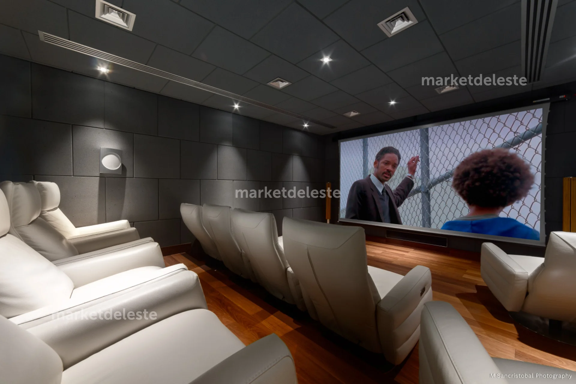 El hometheater cuenta con un proyector de 8K y el audio es BangOlufsen.