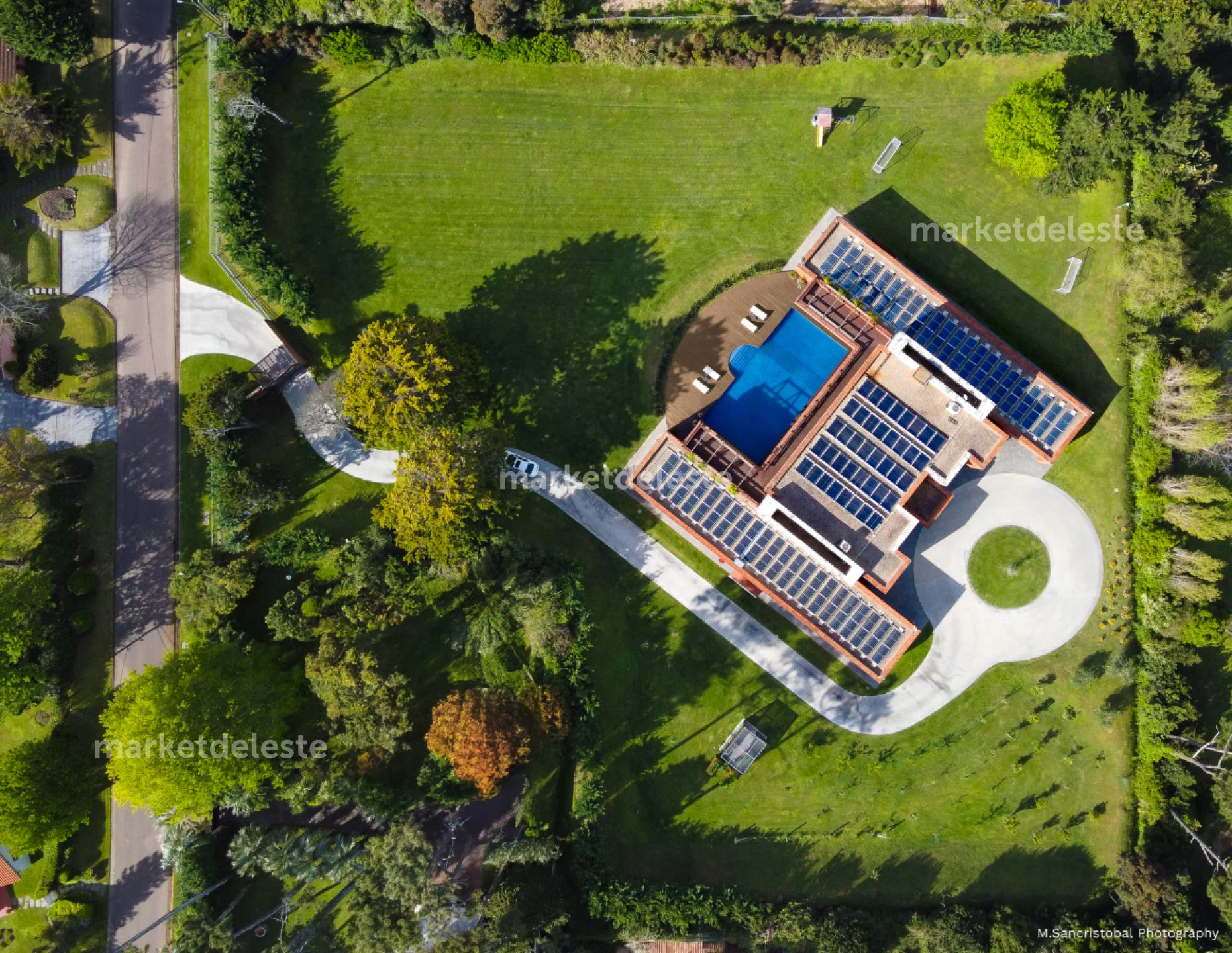 Le detallamos algunos puntos, pisos en lapacho, calefacción por losa radiante por agua con bomba de calor, aire acondicionado central, carpintería marca Schüco, persianas eléctricas exteriores en aluminio, cortinas internas eléctricas, cocina industrial, más de 70 puntos de red para internet distribuidos en cada ambiente, sistema de domótica en la cual el propietario domina hasta la ultima función desde la iluminación interior y exterior del jardín en la cual crea escenas, maneja sonido y sobre todo la eficiencia energética de cada artefacto con una base de control que es el corazón de esta gran propiedad manejando cada ítem a la perfección y expresan en la app rendimientos logrados en vivo del estado y el consumo de los mismos.