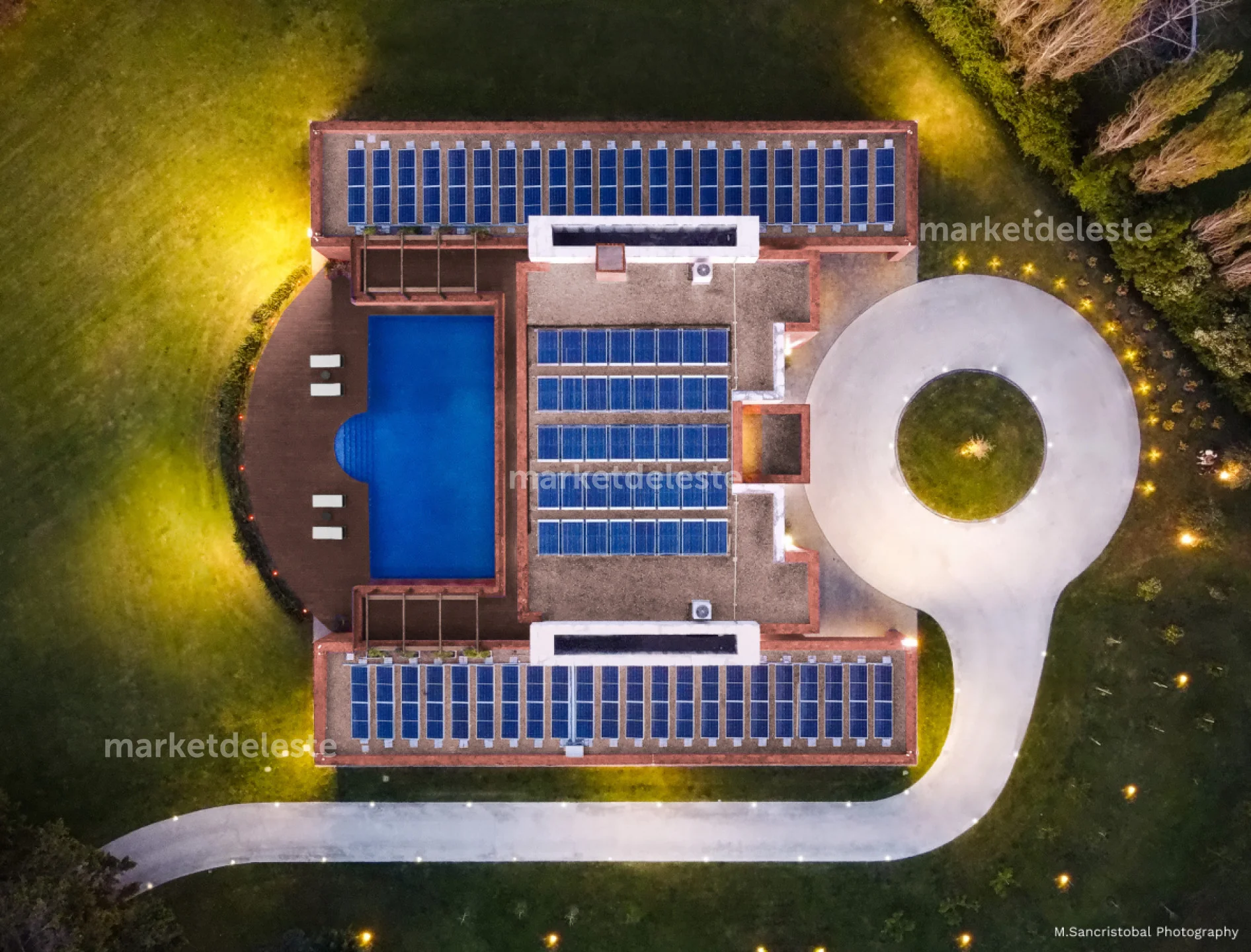 Here are some details: lapacho floors, radiant floor heating with a heat pump, central air conditioning, Schüco carpentry, electric aluminum exterior blinds, electric interior curtains, an industrial kitchen, more than 70 internet access points distributed throughout each room,a home automation system in which the owner controls every function, from the interiorexterior garden lighting, creating scenes, managing sound, and, above all, the energy efficiency of each appliance. A control system is the heart of this large property, managing each item perfectlydisplaying live performances of their statusconsumption on the app.