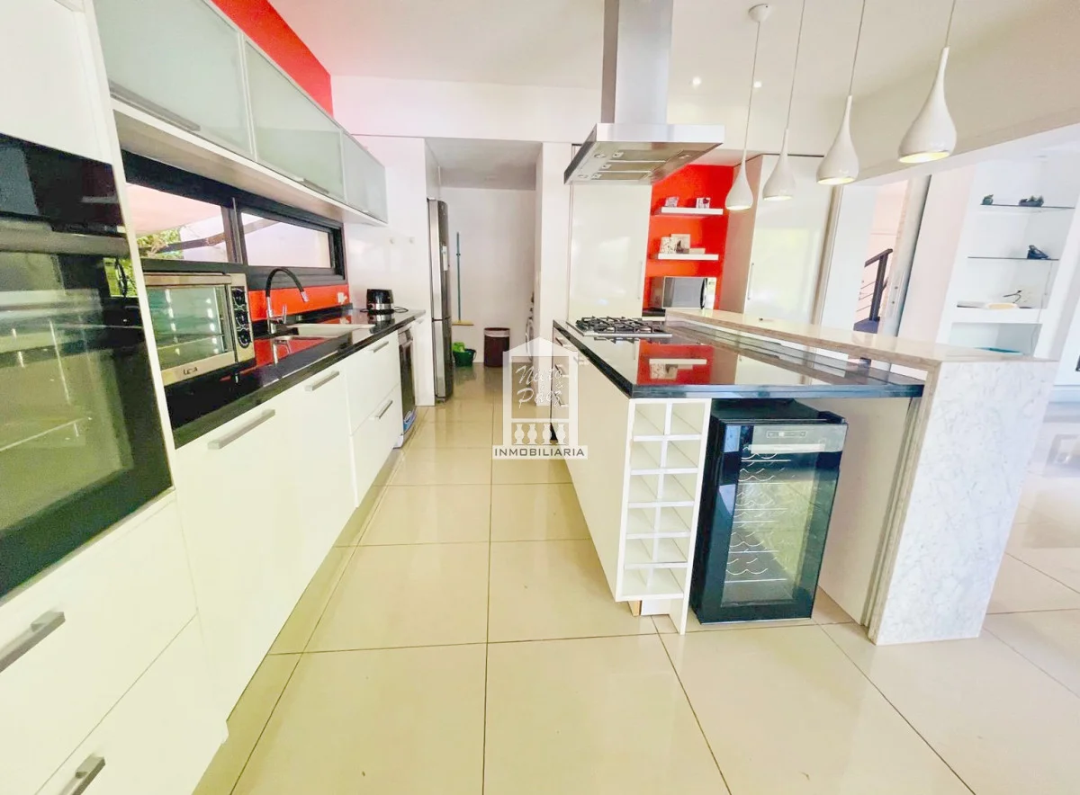 2 garajes con acceso directo a la casa, cocina completa con barra y estar,