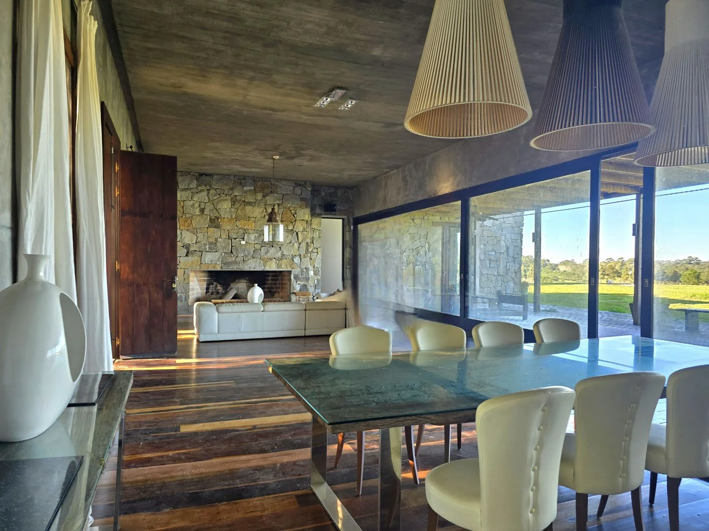 Chacra en venta en La Barra Ubicada a 4.4 kilómetros del mar, sobre Camino de los Flamencos, en un prestigioso entorno con importantes construcciones, facilidad para acceder a los servicios y lo primordial, un encantador entorno fresco y arbolado Sobre una chacra de poco más de cinco hectáreas de forma rectangular y con un suelo regular, encontramos una excelente construcción principal de +450m² que se distribuye de la siguiente forma, living comedor, cocina y dos suites principales, además cuatro suites en exterior de a pares de forma hacia ambos lados. Detrás de la casa encontramos un playroom, lavadero, dos parrilleros y una casa de caseros con dos dormitorios, además encontramos cancha de Tennis y piscina que constituyen la totalidad de la construcción. Construída con materiales tradicionales y rústicos, piedra y madera, con gran altura de piso a techo y ambientes extensos. Farm for sale in La Barra Located 4.4 kilometers from the sea, on Camino de los Flamencos, in a prestigious environment with important buildings, easy access to services and, most importantly, a charming fresh and wooded environment. On a farm of just over five hectares of rectangular shape and with a regular floor, we find an excellent main construction of +450m² that is distributed as follows, living room, kitchen and two main suites, in addition to four exterior suites of a shape pairs to both sides. Behind the house we find a playroom, laundry room, two barbecue pits and the caretakers house with two bedrooms. We also find a tennis court and swimming pool that make up the entire construction. Built with traditional and rustic materials, stone and wood, with great height from floor to ceiling and extensive rooms. . Caracteristicas: DORMITORIO EN SUITE, PLAYROOM, DEPENDENCIA DE SERVICIO, DEPOSITO, GARAJE, LAVADERO, LIVING, SALA DE JUEGOS, TOILETTE, APTO PARA FAMILIAS/NI?OS, CANCHA DE TENIS, ESTUFA A LE?A, LOSA RADIANTE, TELEFONO XINTEL (BPV-BPV-9652)