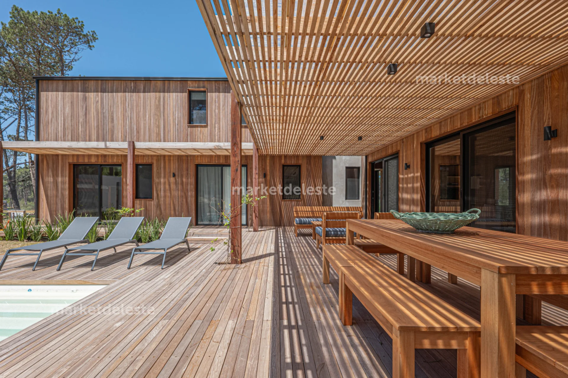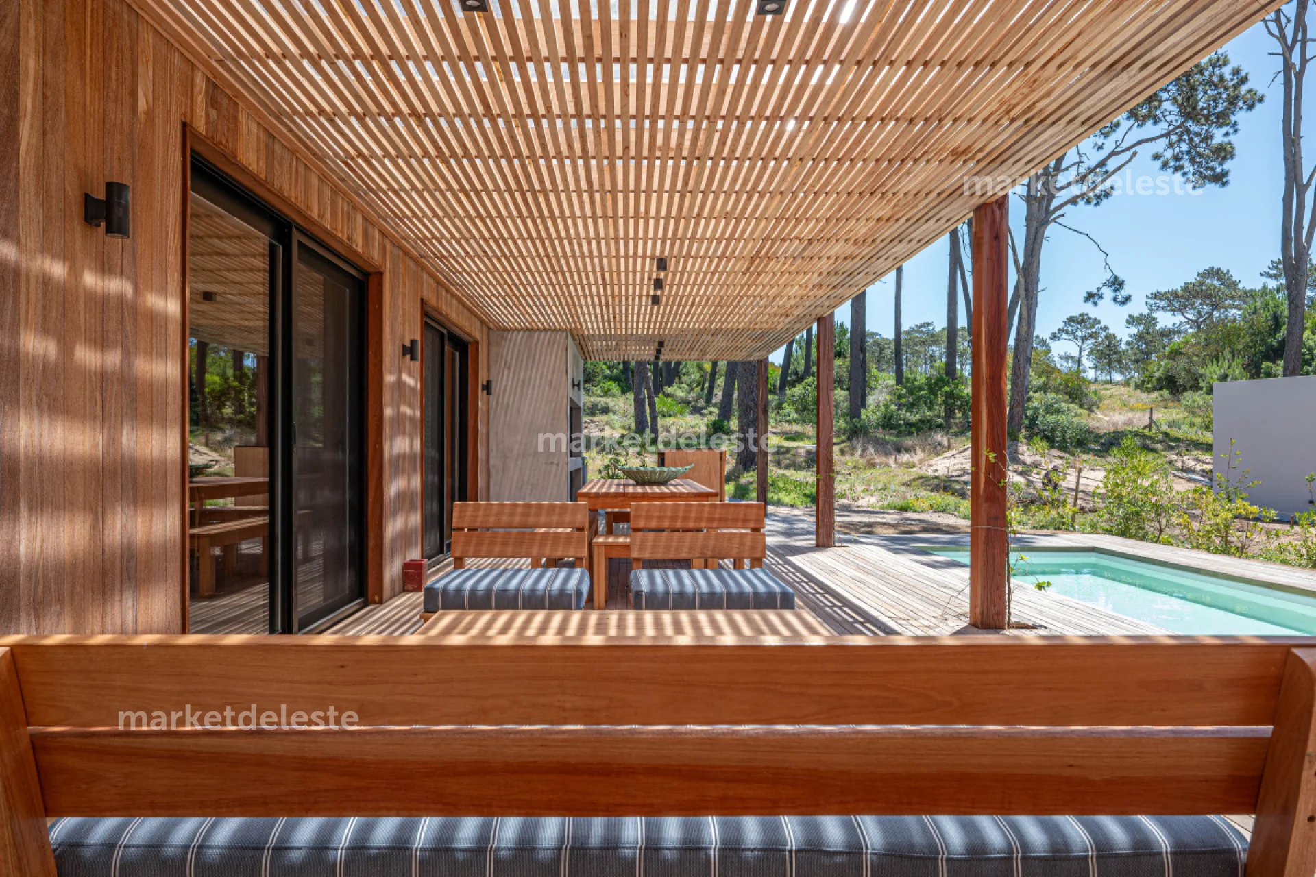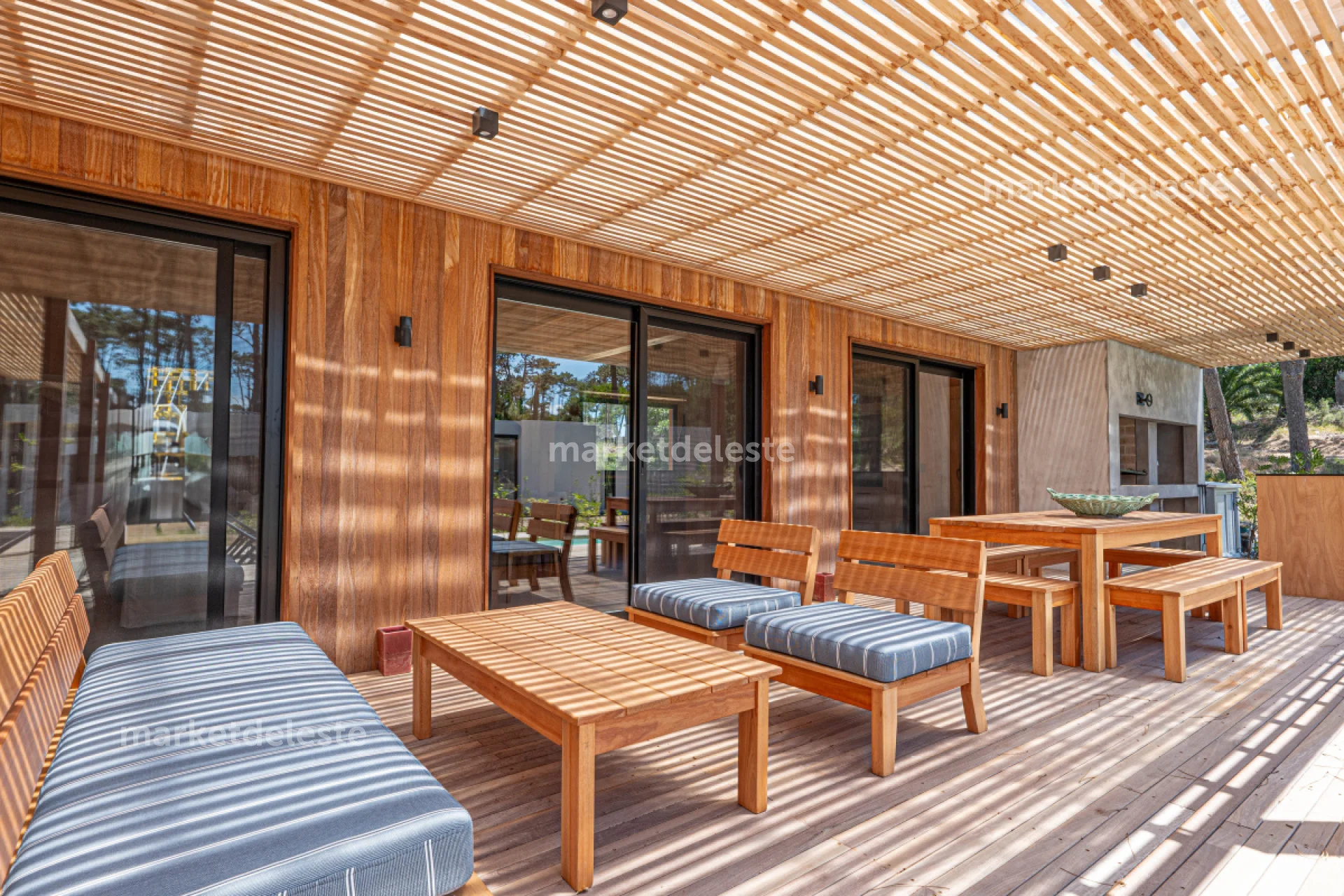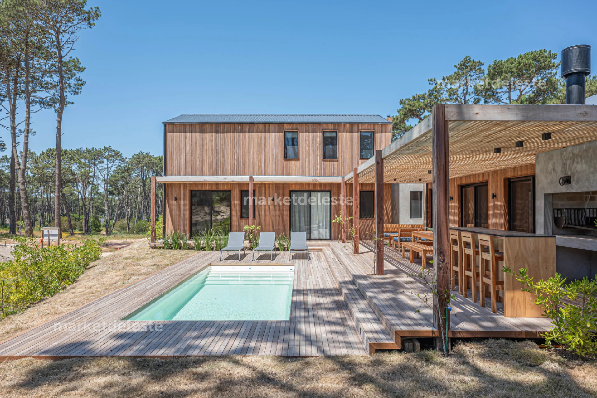 Residencia en Reserva Montoya de diseño nórdico, revestida en lapacho con amplios espacios exteriores al norte. Referencia Interna : Tera-7112