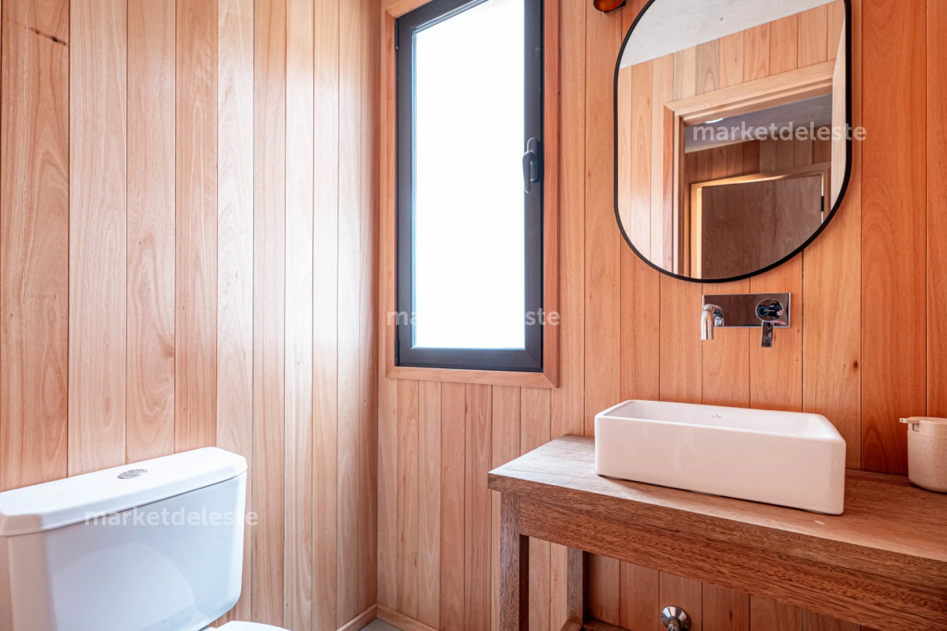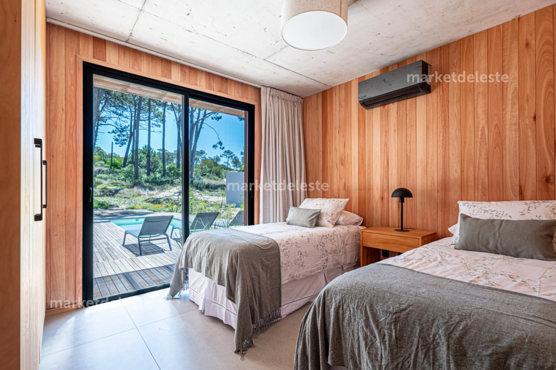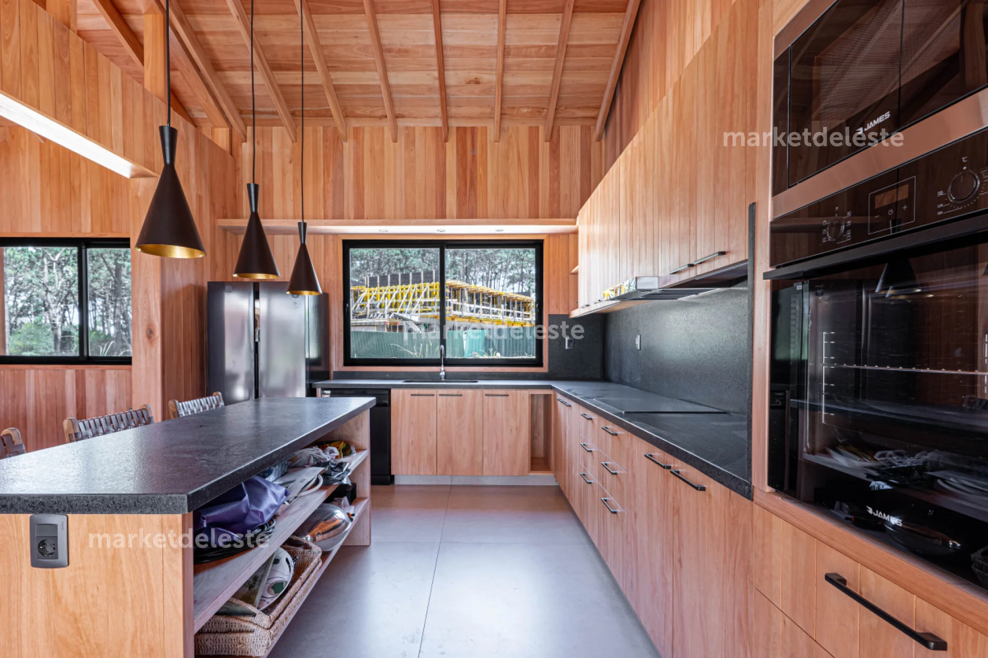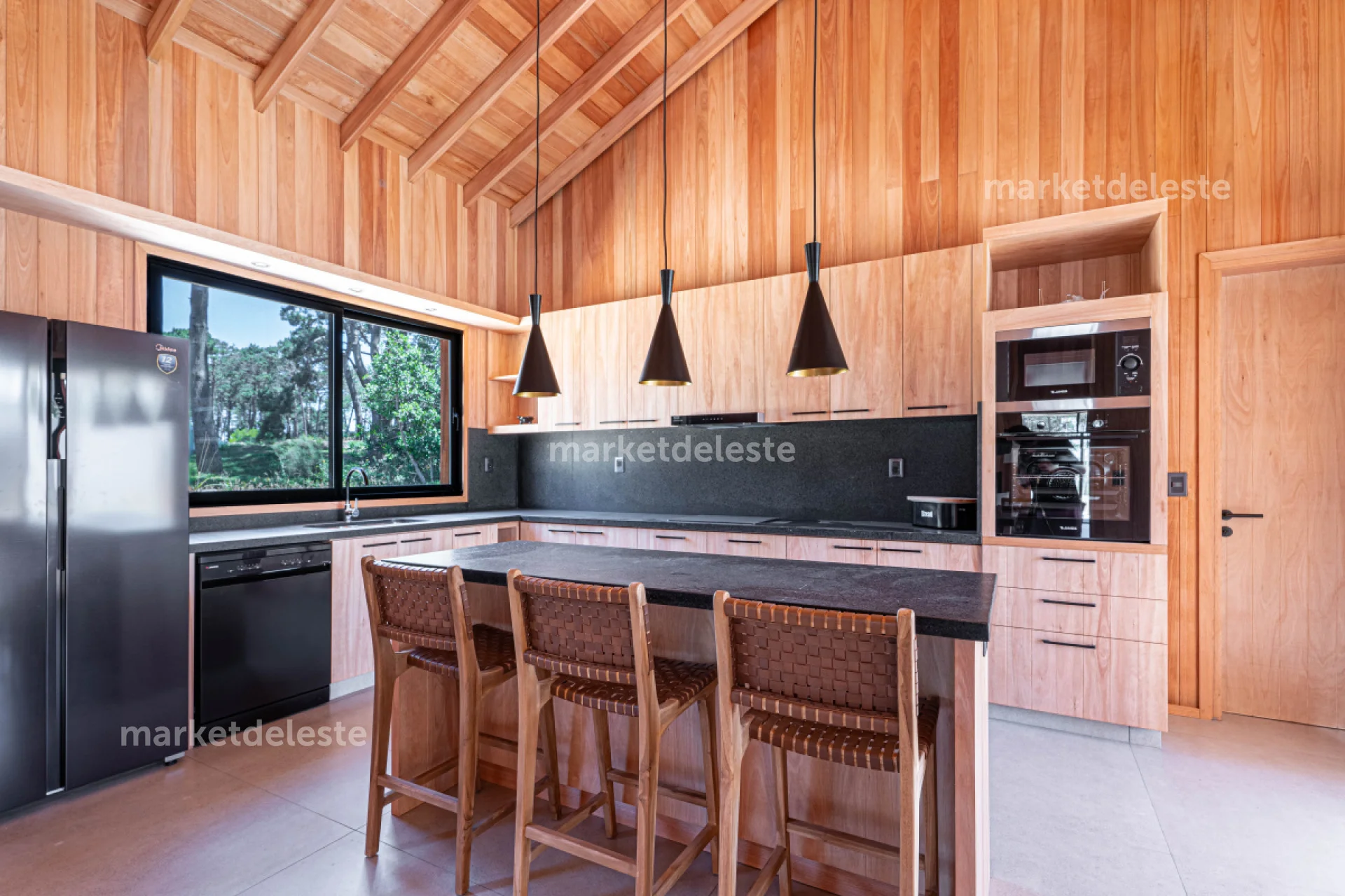Residencia en Reserva Montoya de diseño nórdico, revestida en lapacho con amplios espacios exteriores al norte. Referencia Interna : Tera-7112