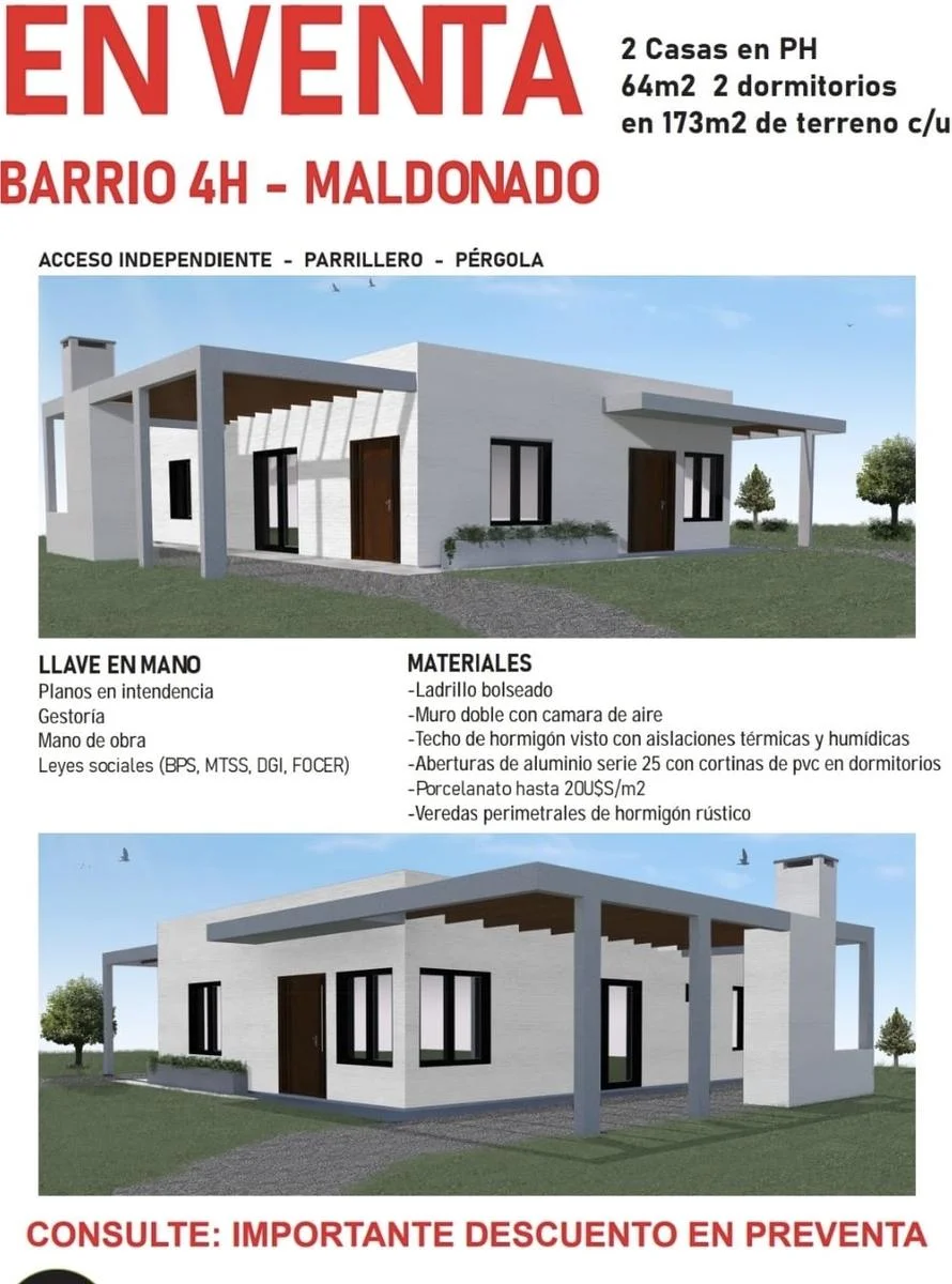 OPORTUNIDAD PRECIO DE PREVENTA! La casa ya se encuentra en construcción, a estrenar! Hermosa casa en PH, moderna y funcional, ubicada en una zona de gran crecimiento en Maldonado. Construida con materiales de primera calidad y un diseño pensado para brindar confort y eficiencia.