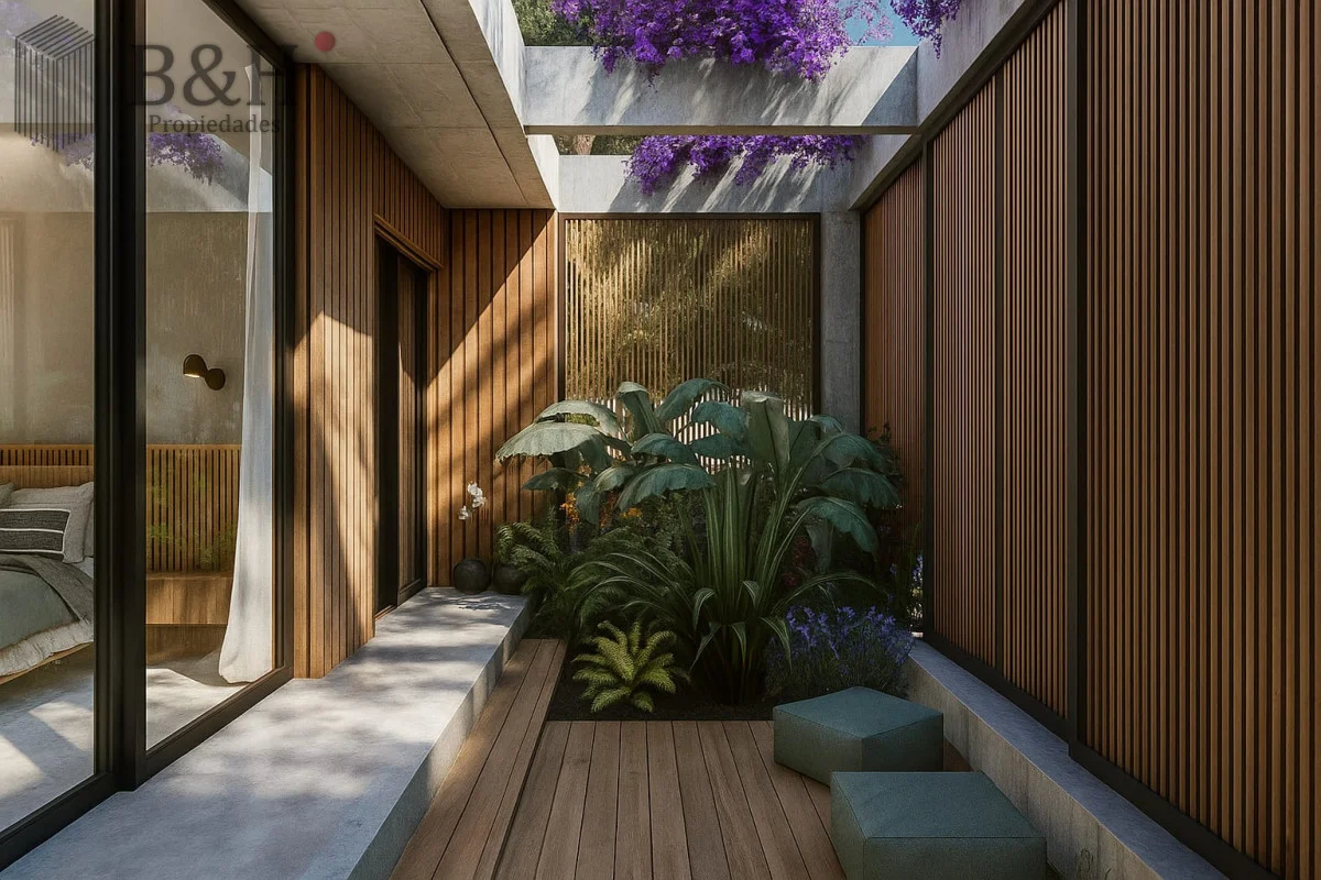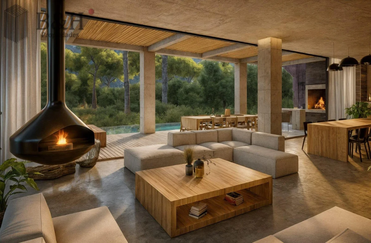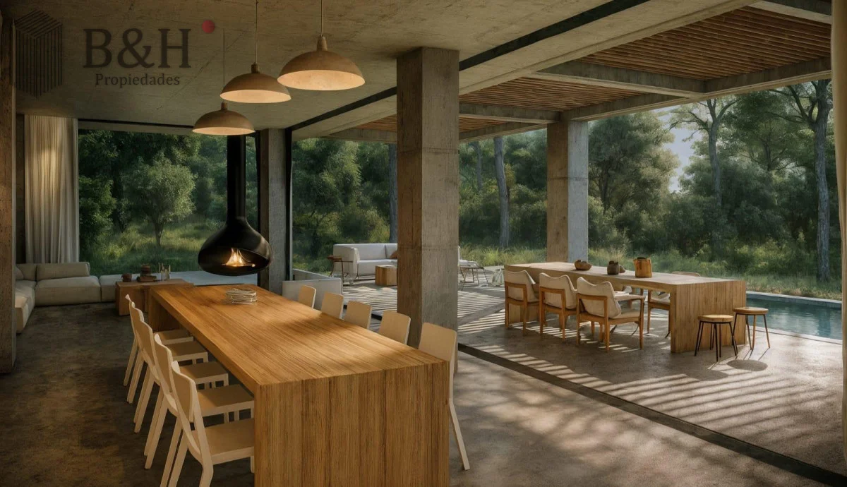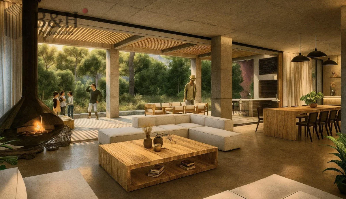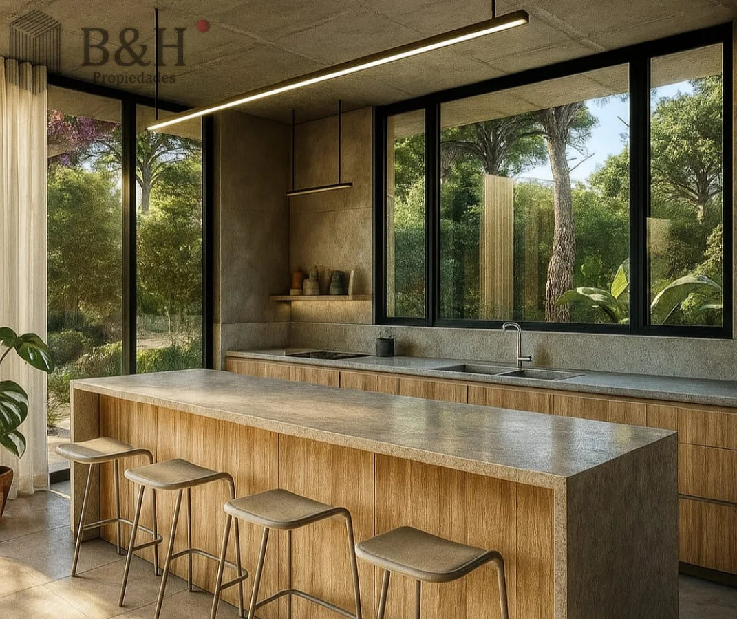Diseñada para integrarse armónicamente con la naturaleza, prioriza la entrada de luz natural, las visuales abiertas y la conexión fluida entre interior y entorno. Cada ambiente fue pensado para ofrecer amplitud, calidez y confort, en un marco de tranquilidad ideal para el descanso y la vida diaria.
