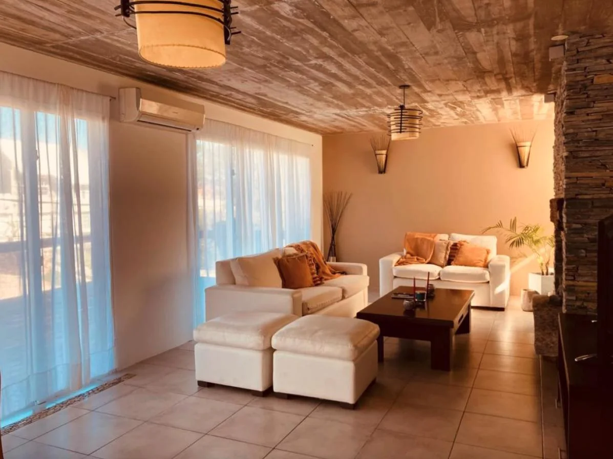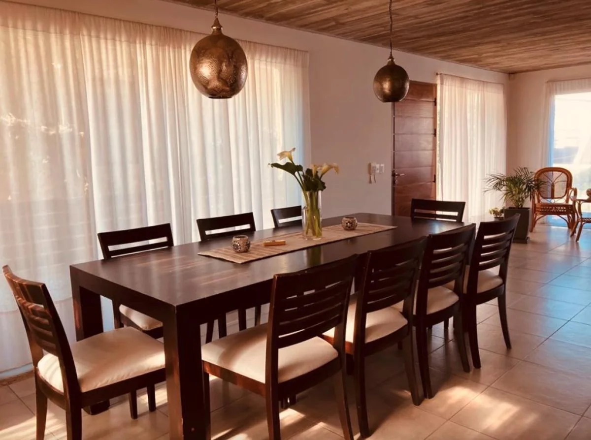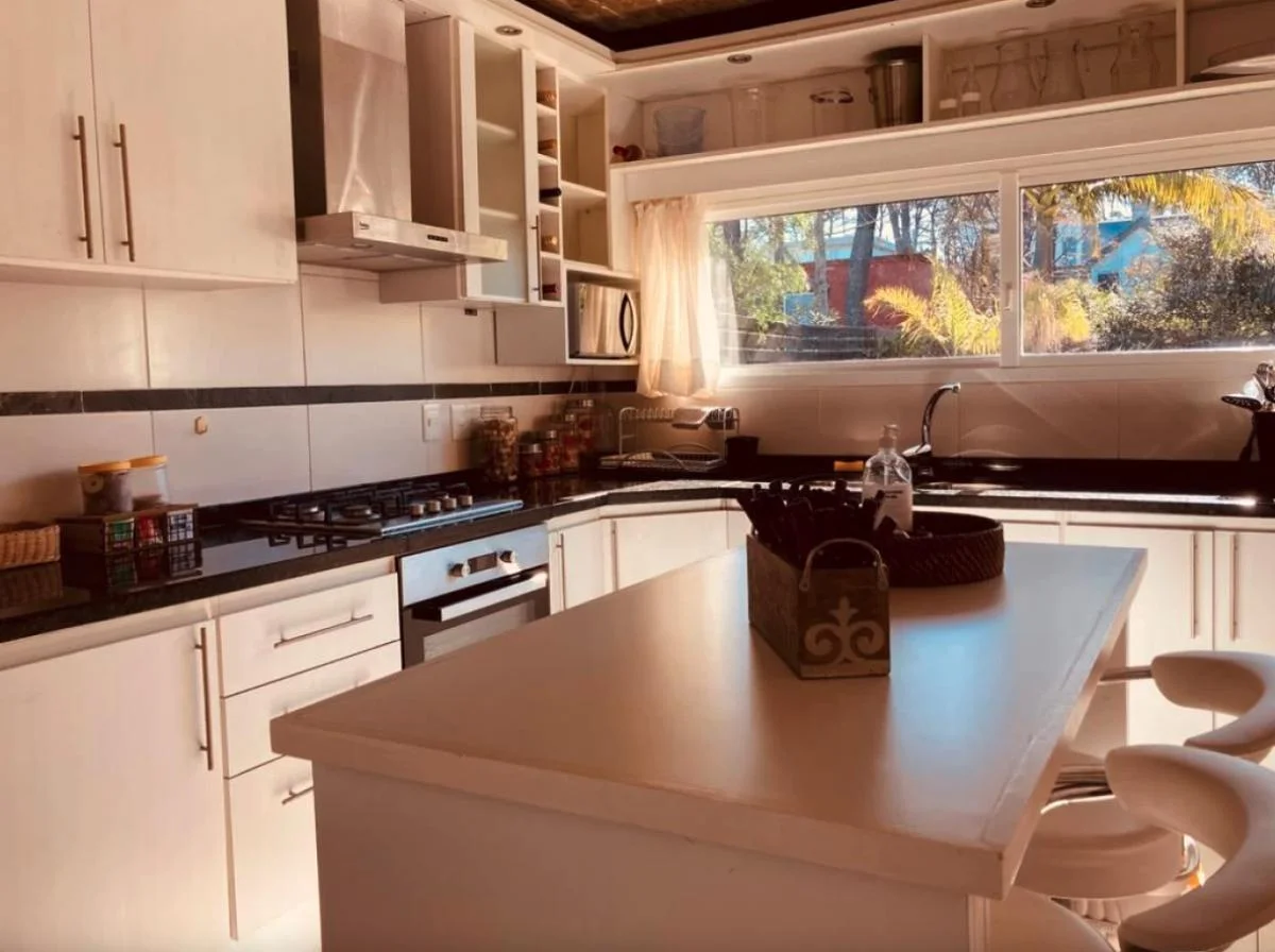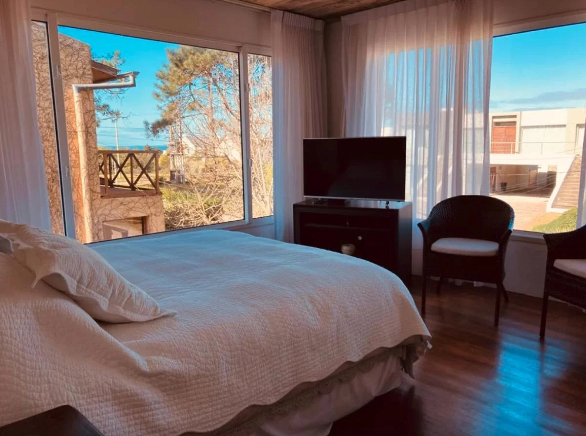 En planta alta: 3 dormitorios (1 suite con vista al mar) y 2 baños.