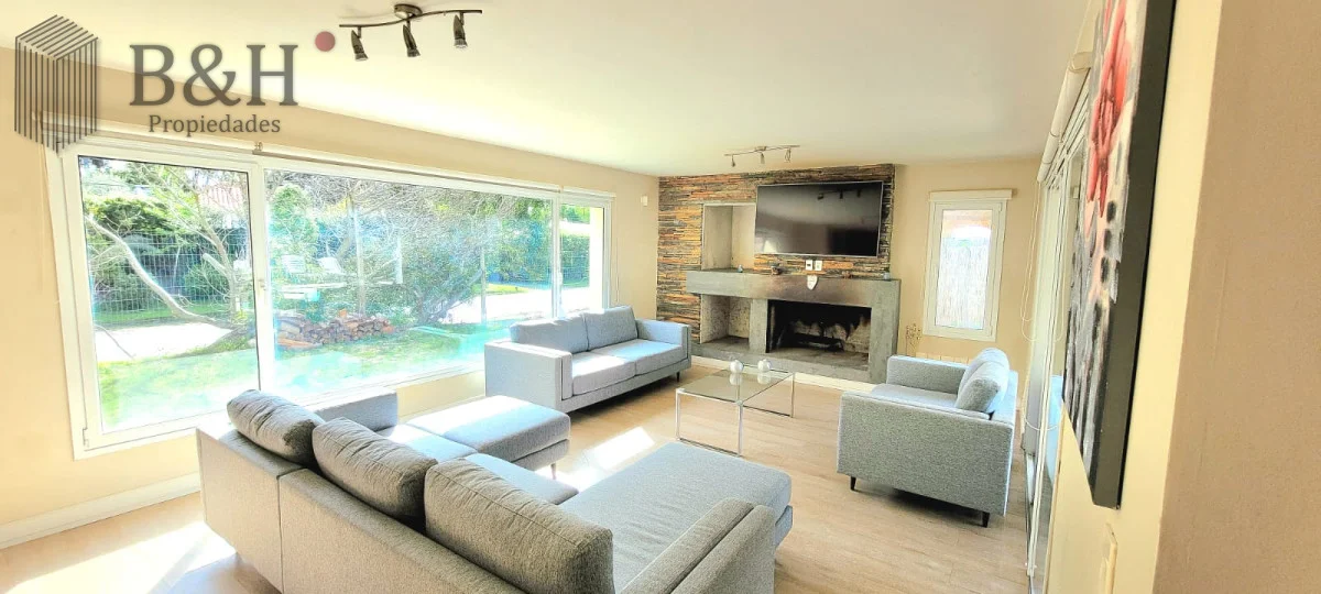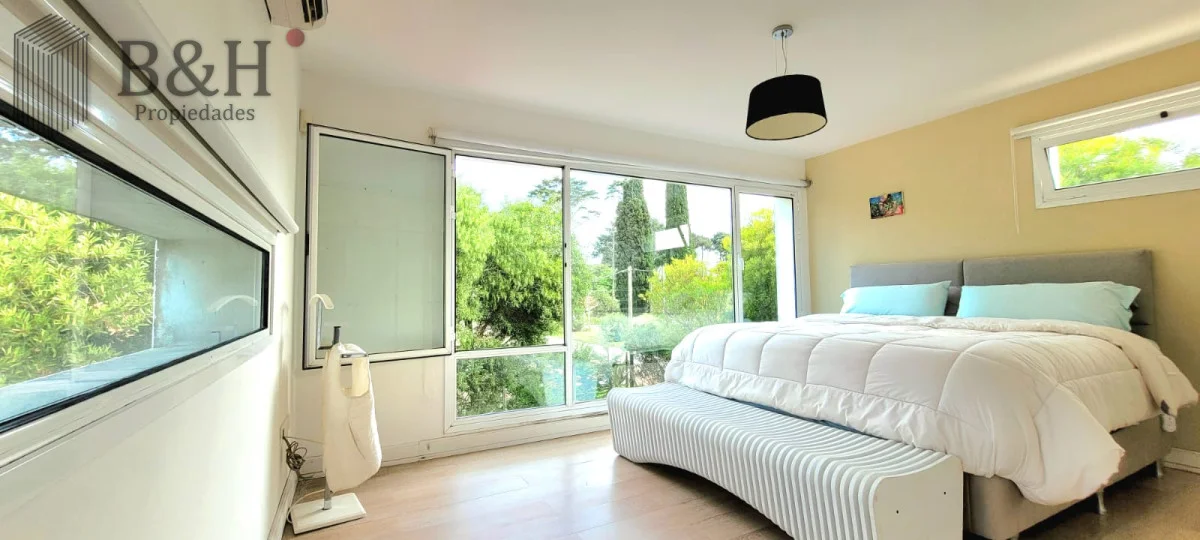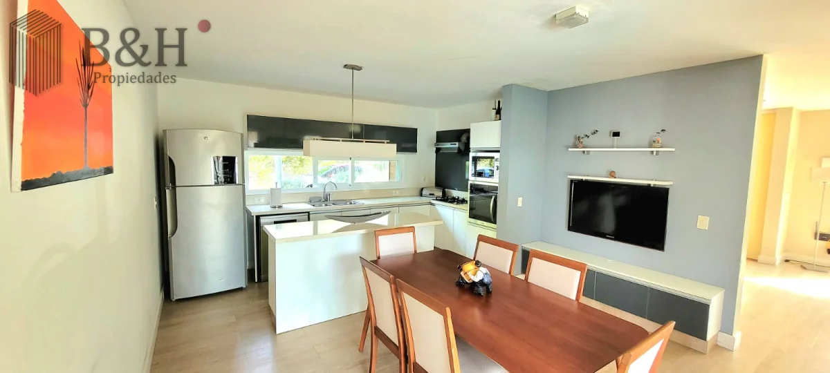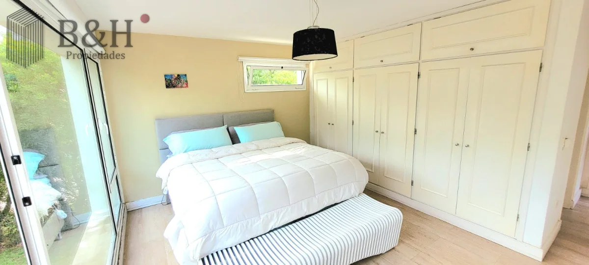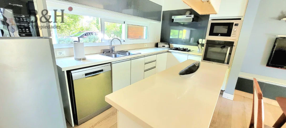 En planta baja cuenta con amplio y luminoso living comedor con importante estufa a leña y grandes ventanales. Cocina integrada con isla y muy bien equipada. Toilette, dependencia de servicio completa (o cuarto dormitorio) y zona de lavadero.