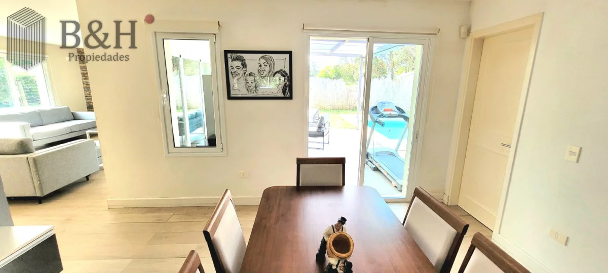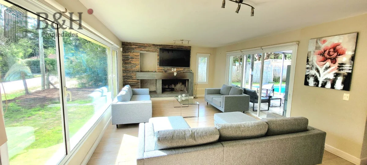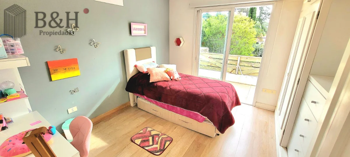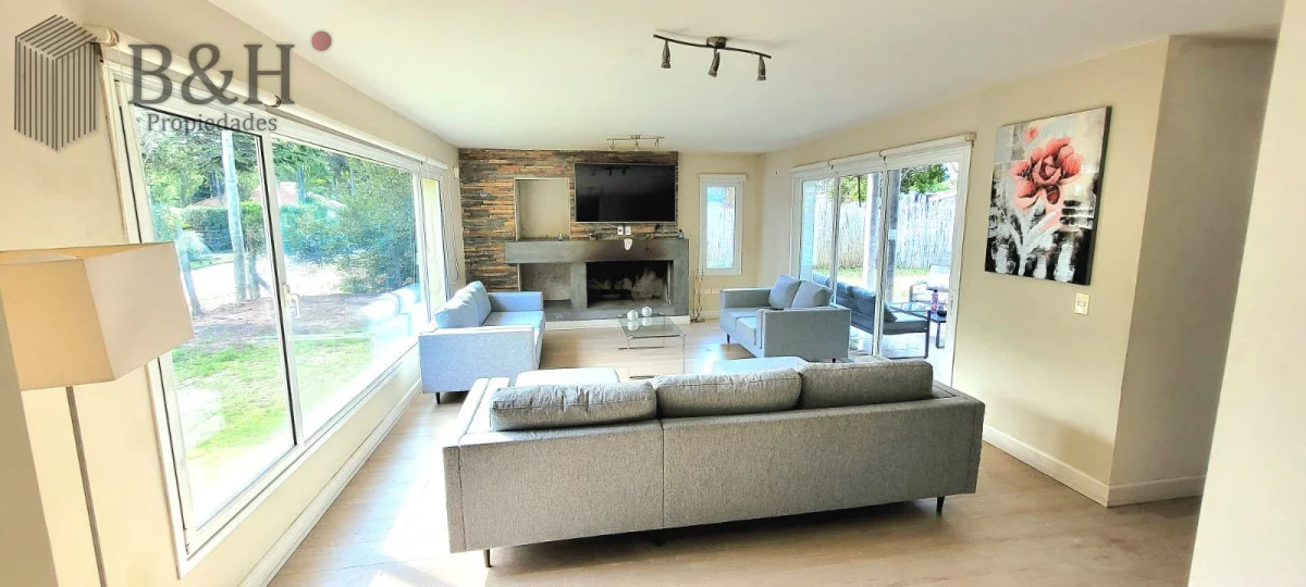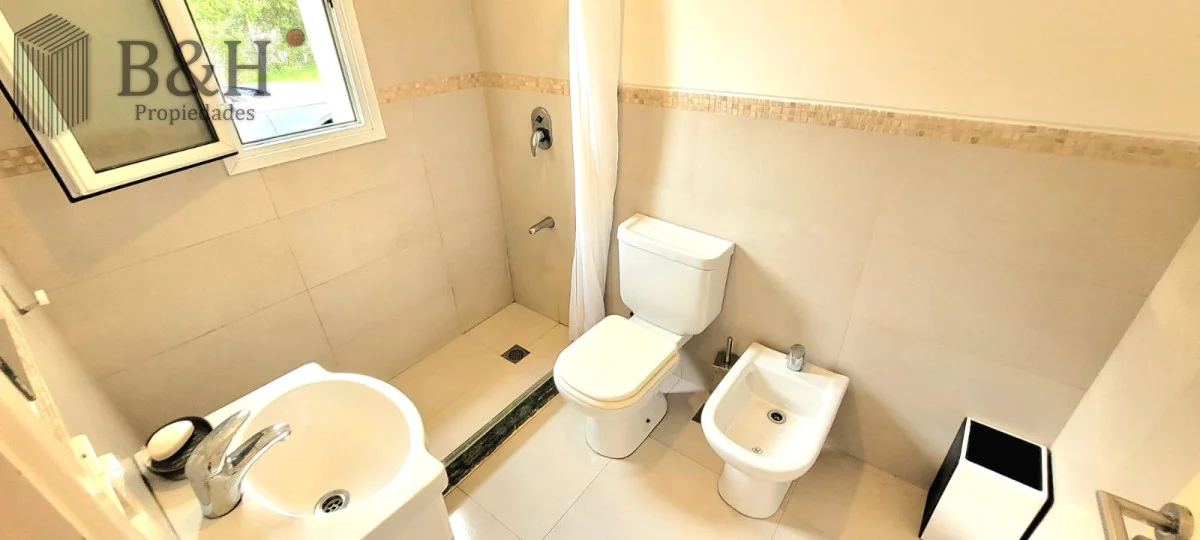 En planta baja cuenta con amplio y luminoso living comedor con importante estufa a leña y grandes ventanales. Cocina integrada con isla y muy bien equipada. Toilette, dependencia de servicio completa (o cuarto dormitorio) y zona de lavadero.