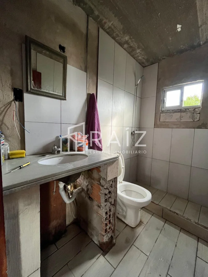 A la casa le faltan las terminaciones como colocar las cerámicas de baños, cocina, revoques, etc. Muchos de los materiales se venden junto con la casa.