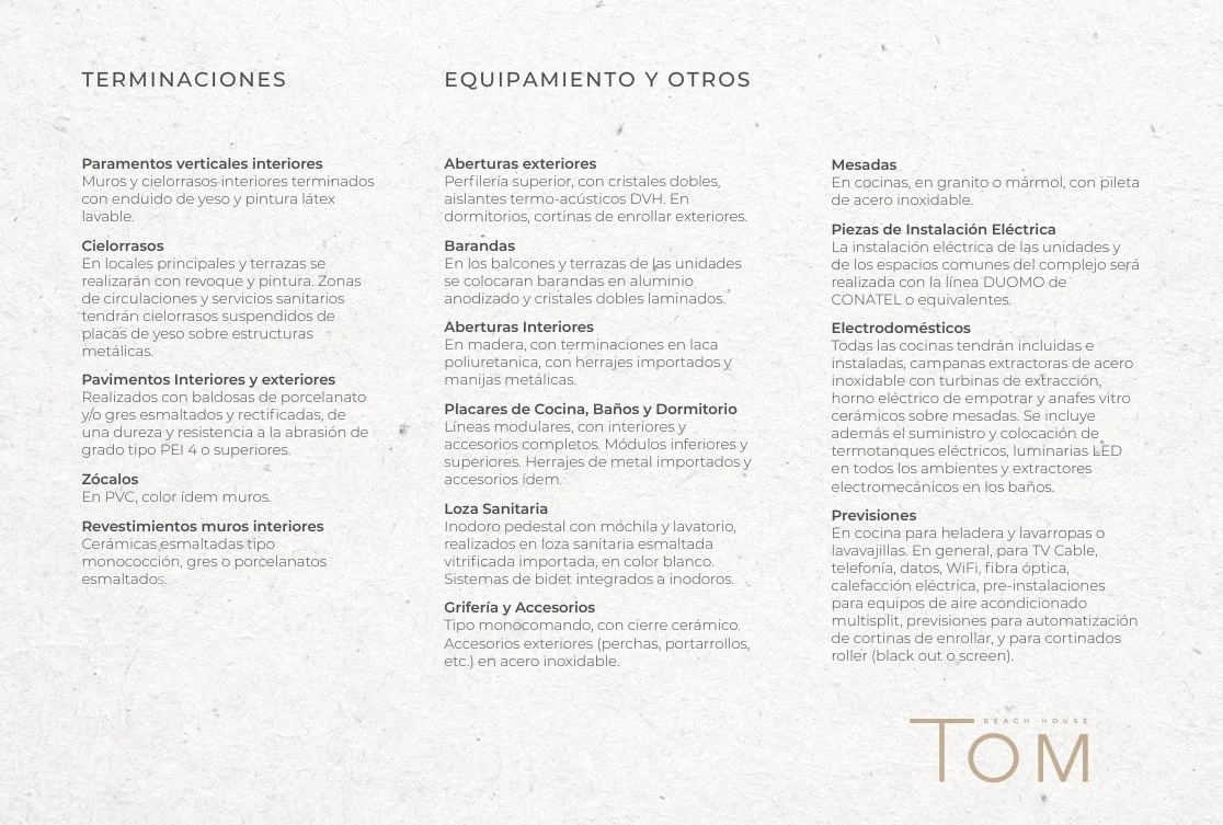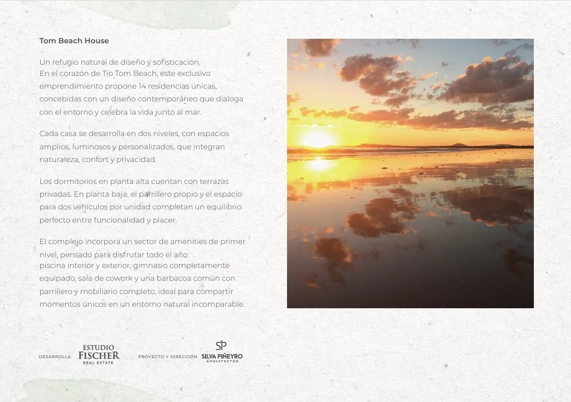 Descubra esta impresionante casa en venta, parte de un exclusivo resort residencial moderno " Tom Beach House" situado en Calle 7 & El Mástil, Punta Ballena, Departamento de Maldonado, Uruguay. Esta propiedad de dos plantas con 3 dormitorios y 3 baños, ofrece un diseño elegante y está idealmente ubicada para disfrutar de un estilo de vida sofisticado y relajado, cerca de la playa, la Laguna, y con fácil acceso a la Ruta 10 y el aeropuerto. Es la combinación perfecta de lujo, confort y seguridad en un entorno natural privilegiado . Cada unidad está diseñada para su máximo confort, ofreciendo ambientes luminosos y bien ventilados. Las amplias áreas comunes incluyen hermosas áreas parquizadas, piscina interior y exterior climatizadas, gimnasio, área de cowork y Barbacoa ideales para el esparcimiento y el disfrute en familia o con amigos. Los amplios jardines privados complementan la experiencia de vida al aire libre, ofreciendo privacidad y tranquilidad. La propiedad cuenta un área construida de 130 mts que se compone de : PLANTA BAJA: - Amplio Living Comedor con salida al jardín - Amplia cocina con barra hacia el living, la misma viene se entrega con horno empotrado, anafe doble, campana y calefón. - Un baño completo PLANTA ALTA - Cuenta con tres dormitorios, el principal al frente con vestidor y baño en suite. Luego al fondo dos amplios dormitorios con placares. - El dormitorios principal cuenta con terraza al frente y vista al jardín - Dos baños completos: uno en suite y otro junto a los dormitorios Esta casa cuenta con un jardín de uso exclusivo y parrillero propio, cuenta con cochera para dos vehículos. El Complejo Tom Beach House ofrece una gran cantidad de Amenities: - Piscina Exterior climatizada - Piscina interior - climatizada - Gimnasio - Cowork - Barbacoa con parrillero y mobiliario Este desarrollo cuenta con unidades desde 340.000 dependiendo de la ubicación y la forma de pago se realiza durante la obra o contado con beneficios importantes. No dude en consultar ya que es una gran oportunidad.