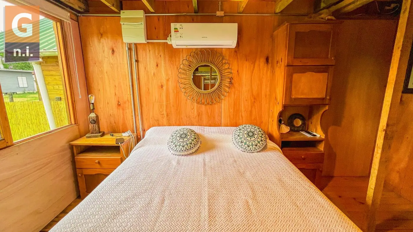 Cabaña ubicada en Bella Vista, a aproximadamente 500 metros de la playa, en una zona tranquila e ideal para el descanso. La propiedad se desarrolla en un cómodo monoambiente que integra living comedor con cocina, contando con cama matrimonial y un sofá cama para dos personas en el área de estar. Al costado de la cabaña se dispone de un parrillero techado con mesa y bancos de madera, perfecto para disfrutar al aire libre, mientras que al frente se destaca un agradable espacio verde. La propiedad se encuentra totalmente cercada, brindando mayor privacidad y seguridad.