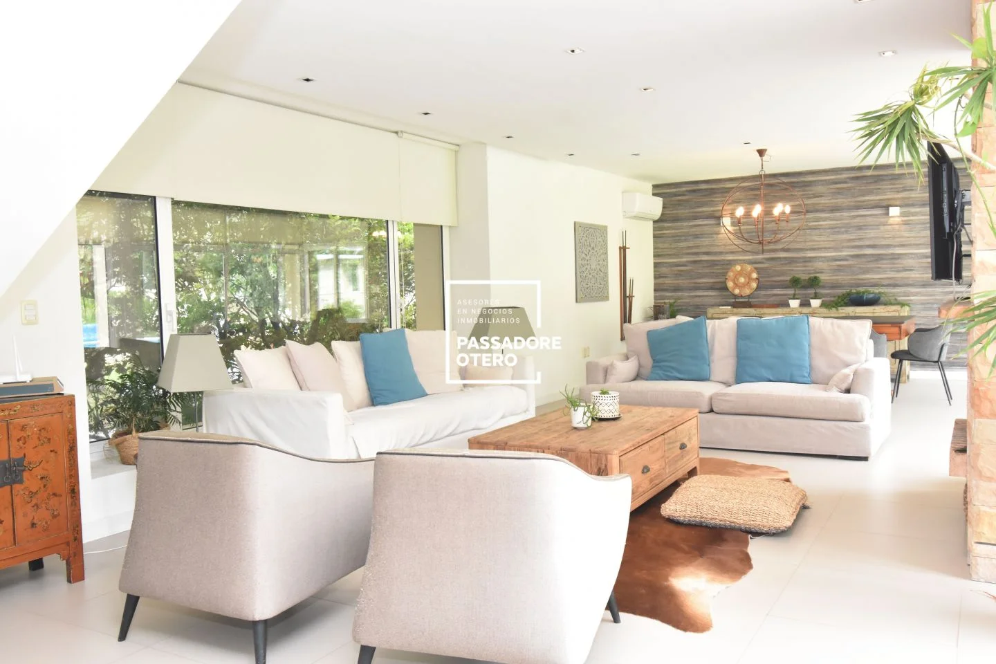 Excelente propiedad en La Residence, uno de los mejores barrios privados de Punta del Este, ideal para vivir todo el año. Espectacular casa de excelente construcción, en 2 plantas, cuenta recibidor, escritorio, toilette, Amplio living comedor con grandes ventanales que van de piso a techo en la doble altura, Aire acondicionado en todos los ambientes, mesa de pool, cocina de excelentes dimensiones y de estilo moderno. Dormitorio de servicio con baño, lavadero integrado. Planta alta cuenta con 3 dormitorios en suite y terraza en dormitorio principal. Se destaca el area de jardin con piscina climatizada, y un amplio espacio verde con casita de juegos para chicos, arco de futbol entre otros, Arboles frutales, y barbacoa con integracion a la piscina y deck. Riego automatizado. Completando el area de confort cuenta con cochera totalmente cerrada para 2 autos y con integracion directa a la casa. . Caracteristicas: ESCRITORIO, GARAJE, APTO PARA FAMILIAS/NI?OS, CANCHAS DEPORTIVAS, PERMITE MASCOTAS, PORTERIA, SEGURIDAD, AGUA CORRIENTE, LUZ ELECTRICA, SANEAMIENTO, VIGILANCIA, ESTACIONAMIENTO PARA VISITAS, BARRIO CERRADO XINTEL (PSD-PSD-8208)