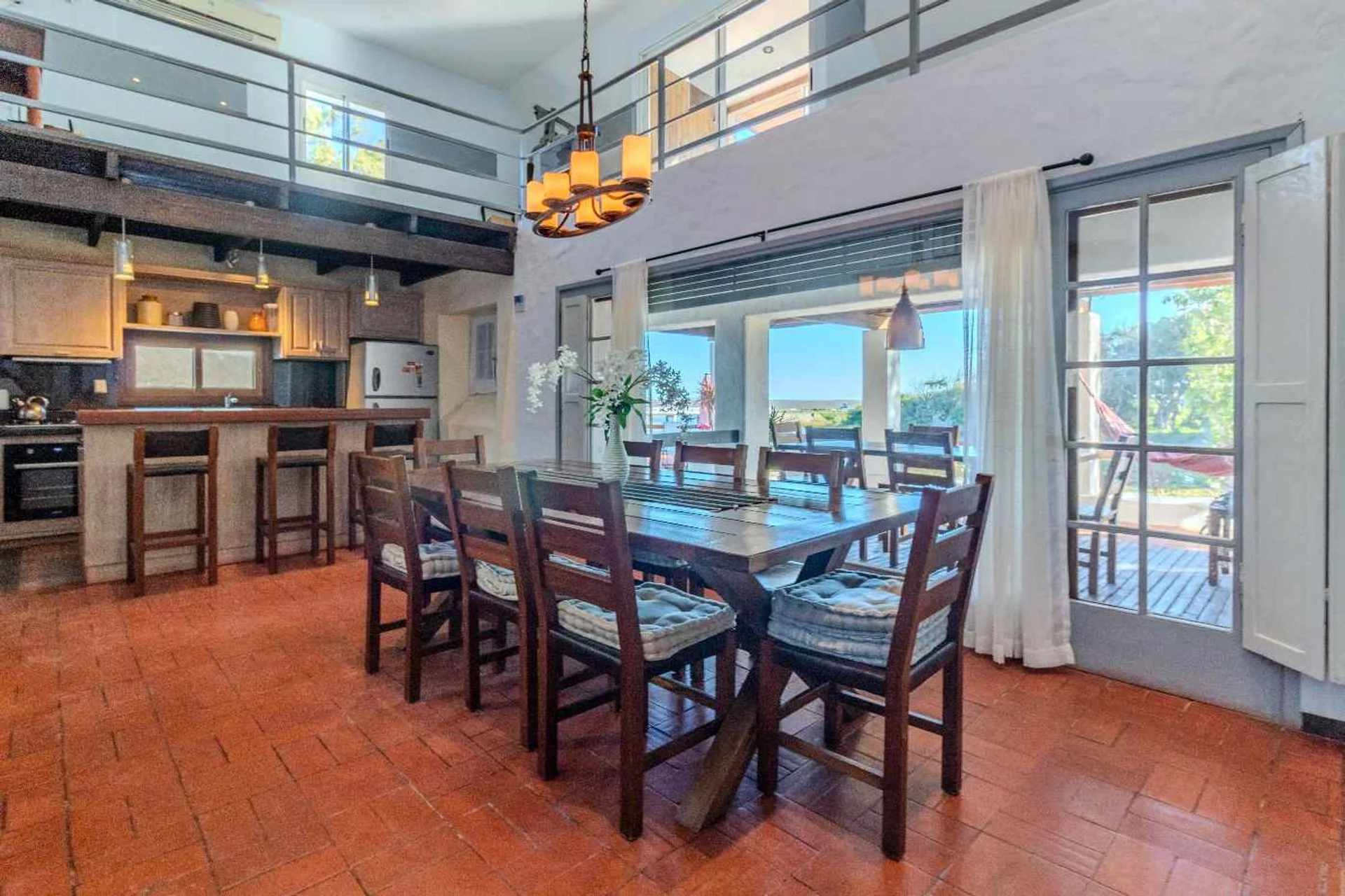 Corredor Responsable: - Contacto: Gabriela Ortiz Ubicada en el balneario Bella Vista, es un destino turístico ubicado en Uruguay, específicamente en el departamento de Maldonado, en la región sureste del país. Se caracteriza por sus hermosas playas, aguas tranquilas y entorno natural pintoresco rodeado de eucaliptos y pinos, es ideal para los que prefieren paz y descanso lejos de las multitudes con caminos perfectos para recorrer en bici. Puedes despertar cada mañana con el sonido de las olas y disfrutar de paseos inolvidables por la orilla del mar. Es la perfecta escapada para aquellos que sueñan con disfrutar de la brisa marina y las impresionantes vistas panorámicas del mar. Su ubicación a solo 50 metros del mar y el uso exclusivo del arroyo lo convierten en un oasis costero. Con una construcción de alta calidad en un amplio terreno de 4777 m2 y 662 m2 construidos, esta casa ofrece una combinación perfecta de lujo y comodidad. Distribuida en dos plantas, la planta baja cuenta con un espacioso hall de entrada, un luminoso living con un entrepiso que alberga un gimnasio y una terraza con vistas panorámicas. También cuenta con un comedor con vistas a la cañada, una cocina equipada con desayunador diario y vista a la piscina. Además, dispone de tres dormitorios en suite y un toilette, todo ello decorado para ofrecer espacios cálidos y acogedores. La terraza en esta planta ofrece una piscina con un área de parrilla, una galería perfecta para disfrutar del clima y las vistas al aire libre. En la planta alta, se encuentran dos suites adicionales con acceso a una balcón privado, lo que eleva el total a 5 suites más un dormitorio de servicio completo o habitación de huéspedes. La propiedad también incluye una cochera para dos autos con portón eléctrico, lo que garantiza la seguridad y comodidad de los residentes. Además de la impresionante propiedad, se ofrece la opción de adquirir el terreno lindero de 5043 metros cuadrados frente al mar y uso exclusivo del arroyo, junto con una vivienda para huéspedes de 174 metros cuadrados. Esta casa para huéspedes ofrece acceso exclusivo a la playa, proporcionando una experiencia costera aún más exclusiva y privada. Cada Oficina es de propiedad, gestión y desarrollo independiente La presente publicación describe las características esenciales del inmueble, debiéndose consultar al responsable de la operación por la eventual actualización de las medidas, descripciones arquitectónicas y funcionales, servicios, impuestos, precios y demás información, cuyos valores son aproximados.